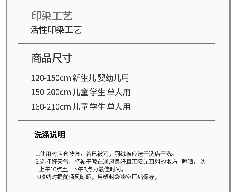 160-210cm 300克绒 春夏 | ¥279.00 |