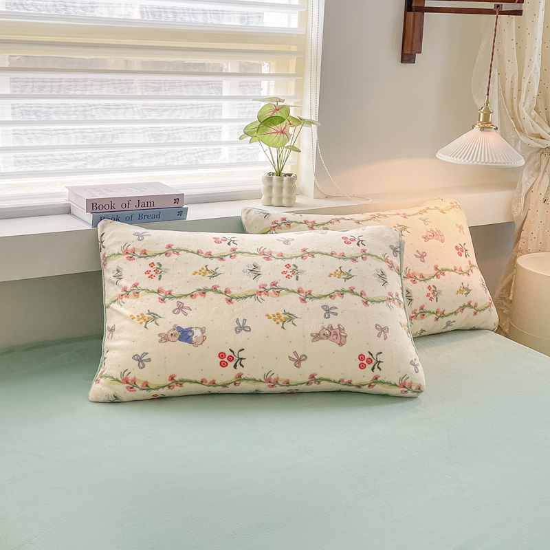雅居纺家纺 2025新款高克重牛奶绒印花单枕套 宇航熊