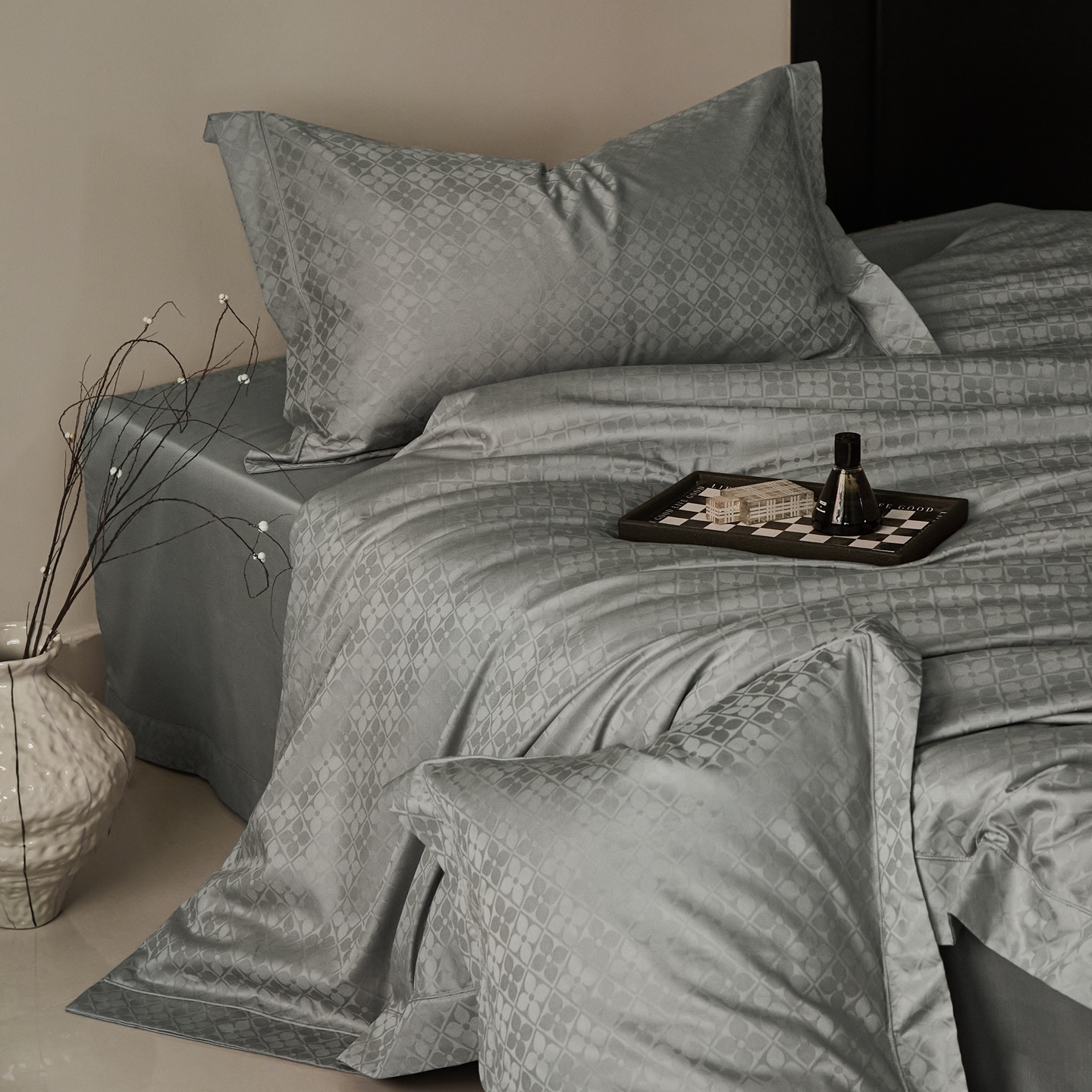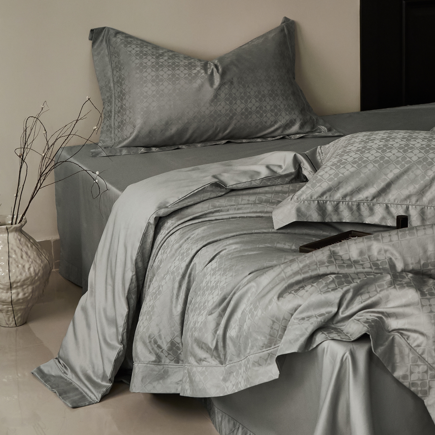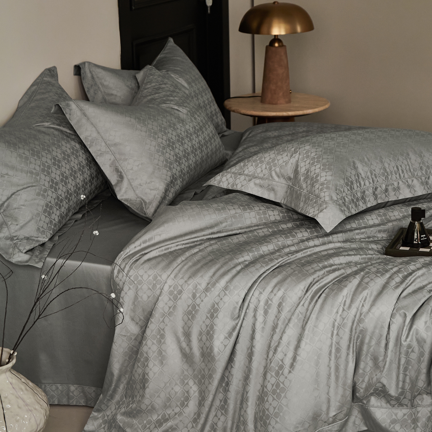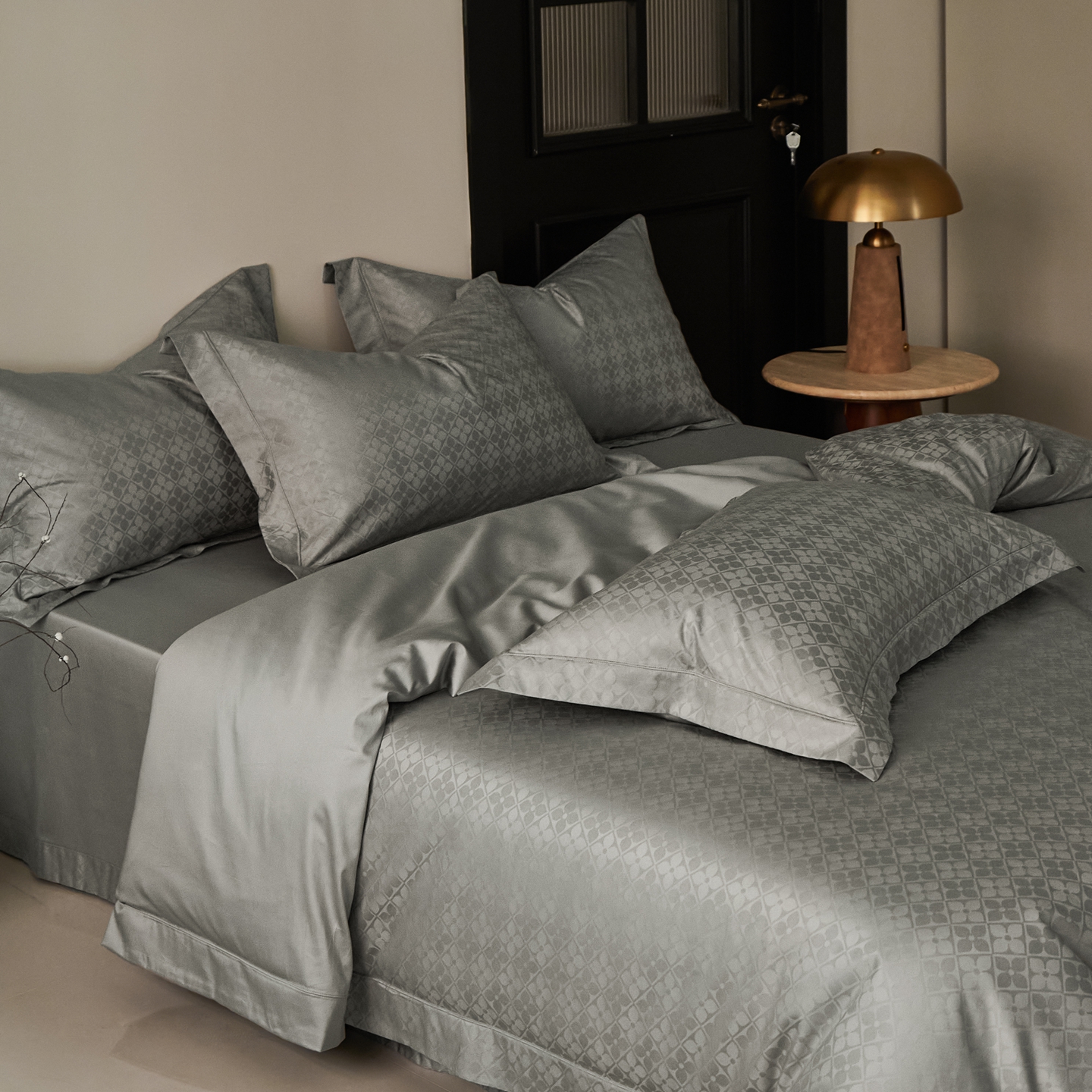 商品名称:顾家家居 2025新款亲肤舒适全棉纯棉提花四件套 洛斯汀--极地灰