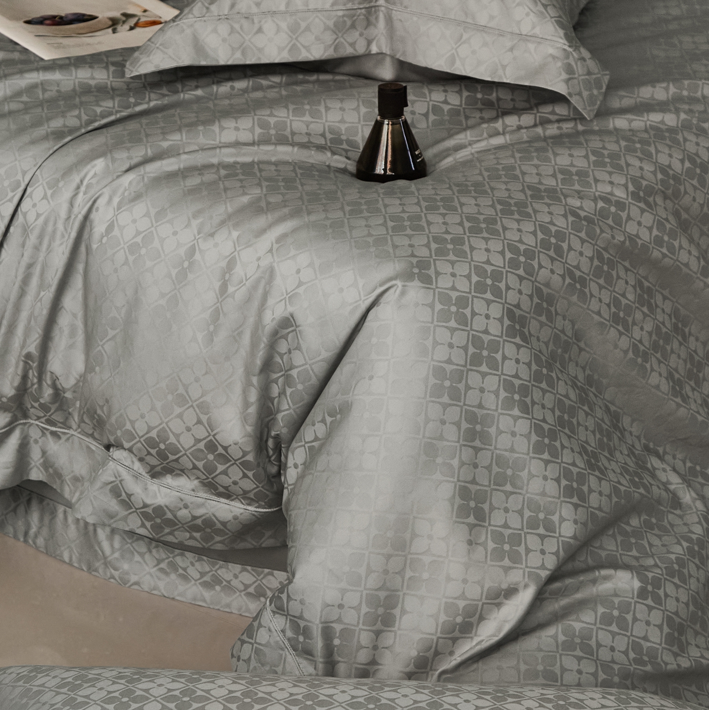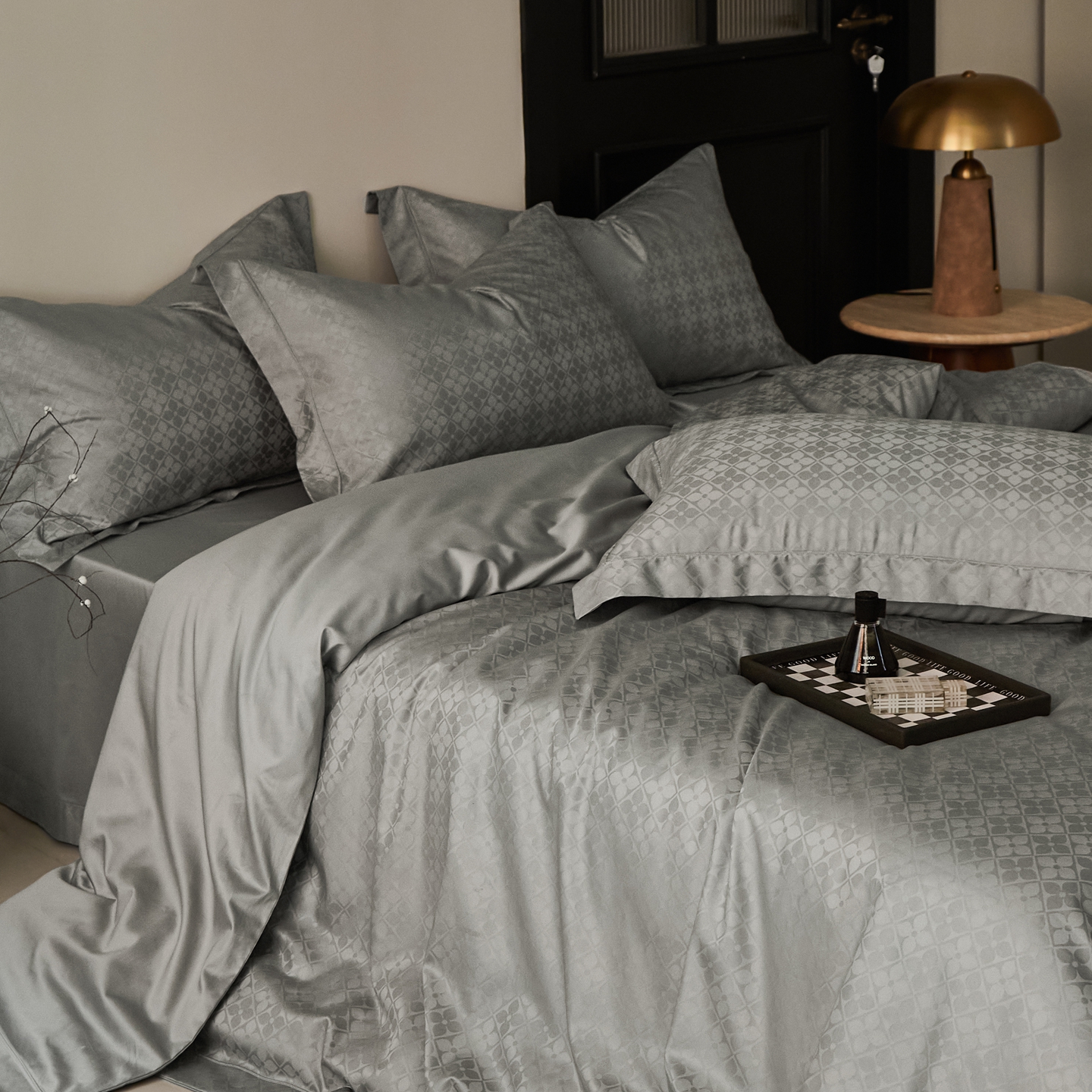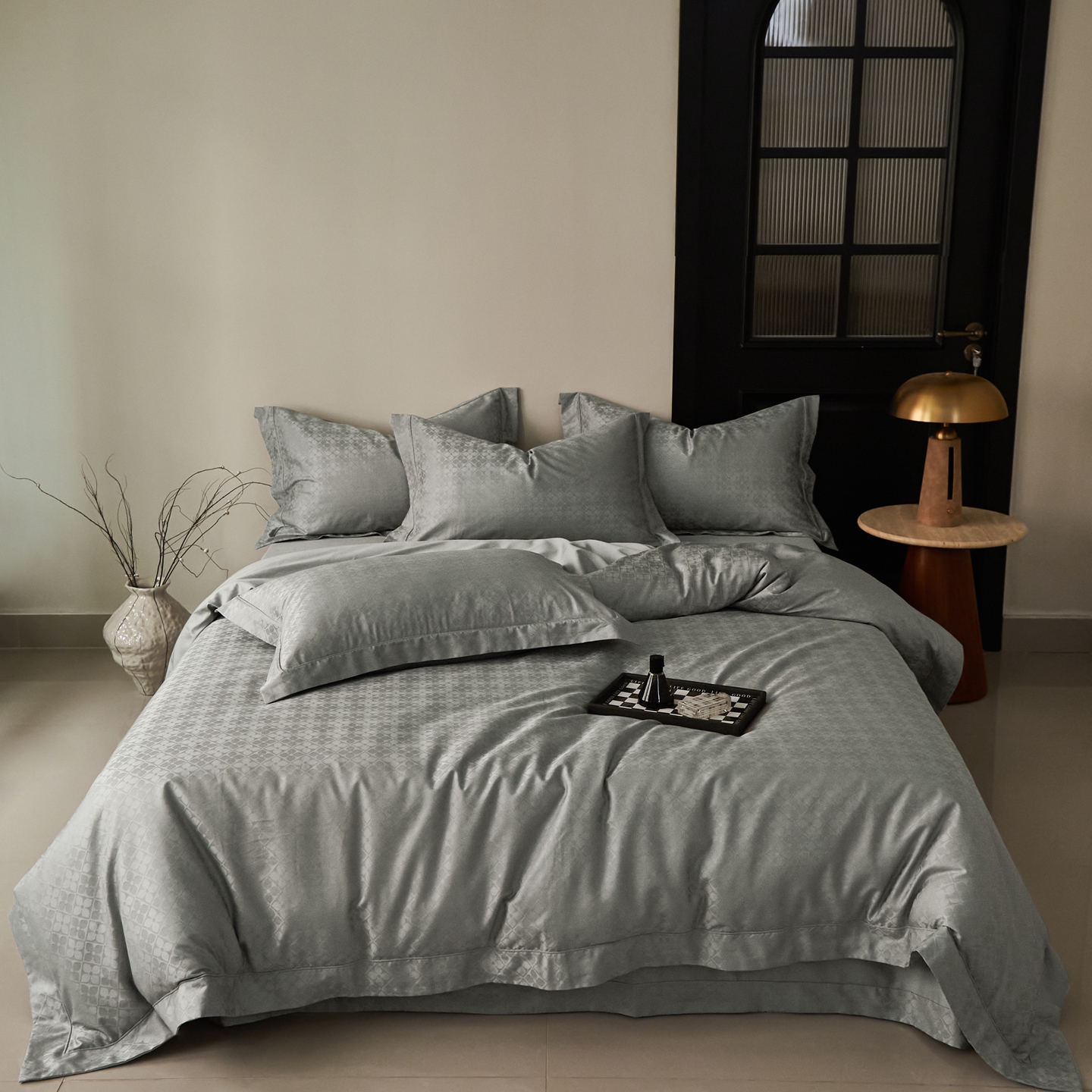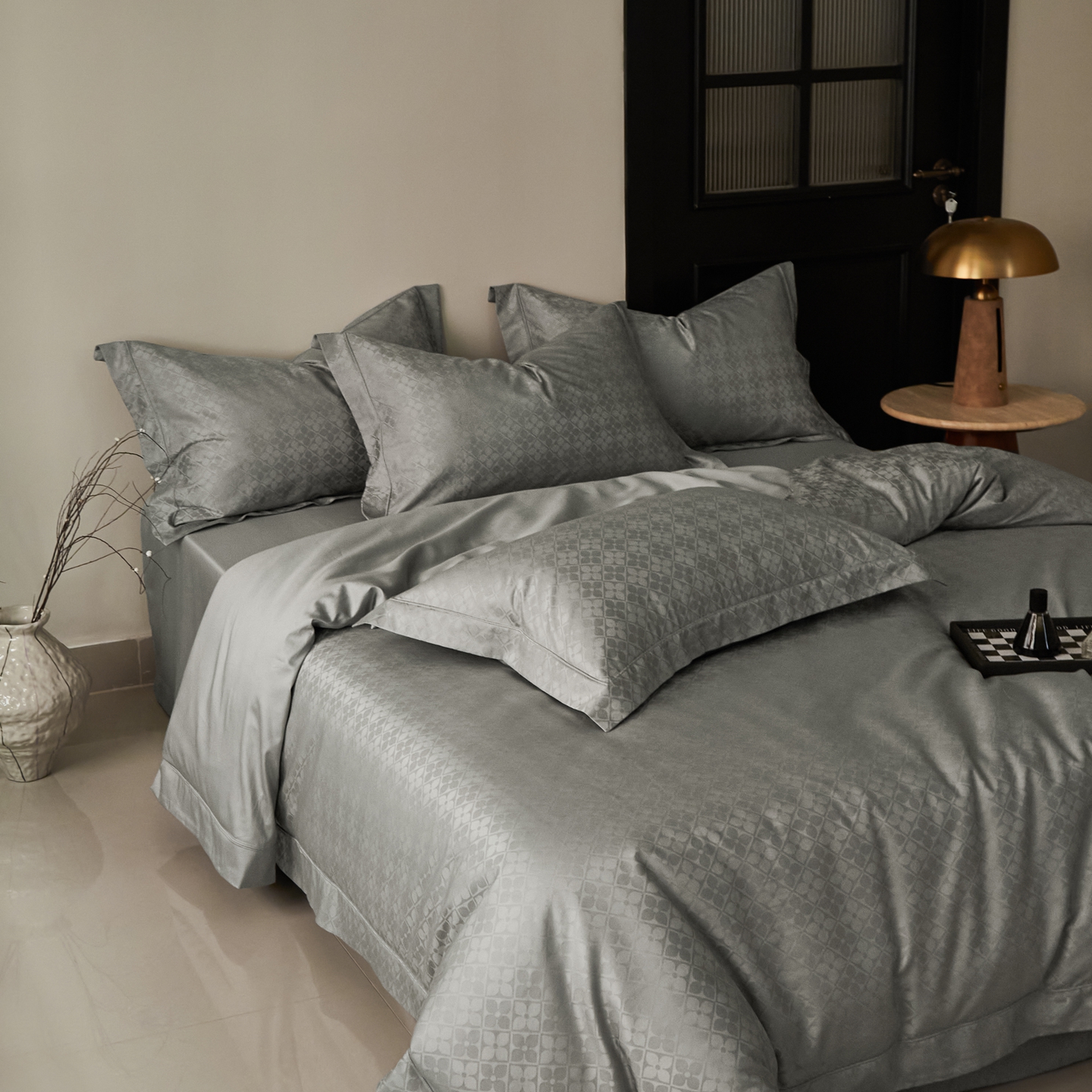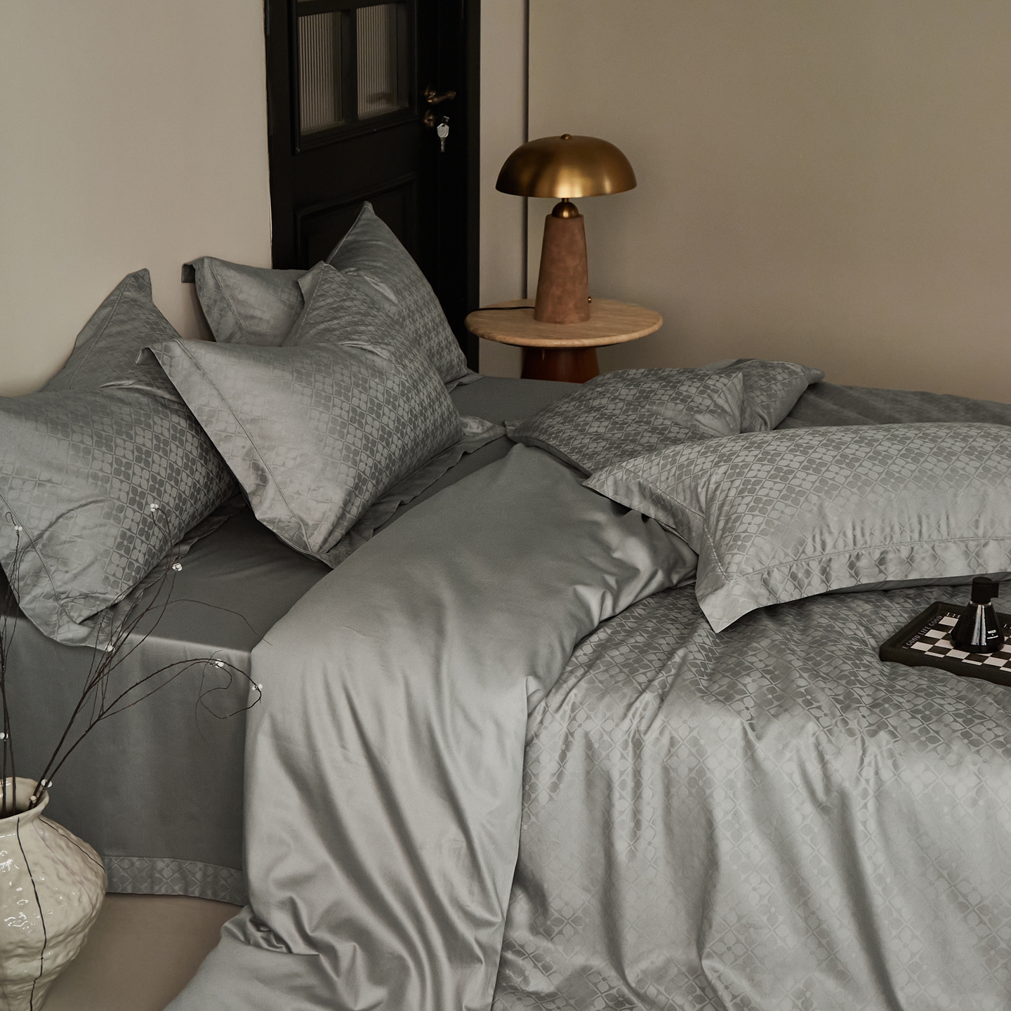 商品名称:顾家家居 2025新款亲肤舒适全棉纯棉提花四件套 洛斯汀--极地灰