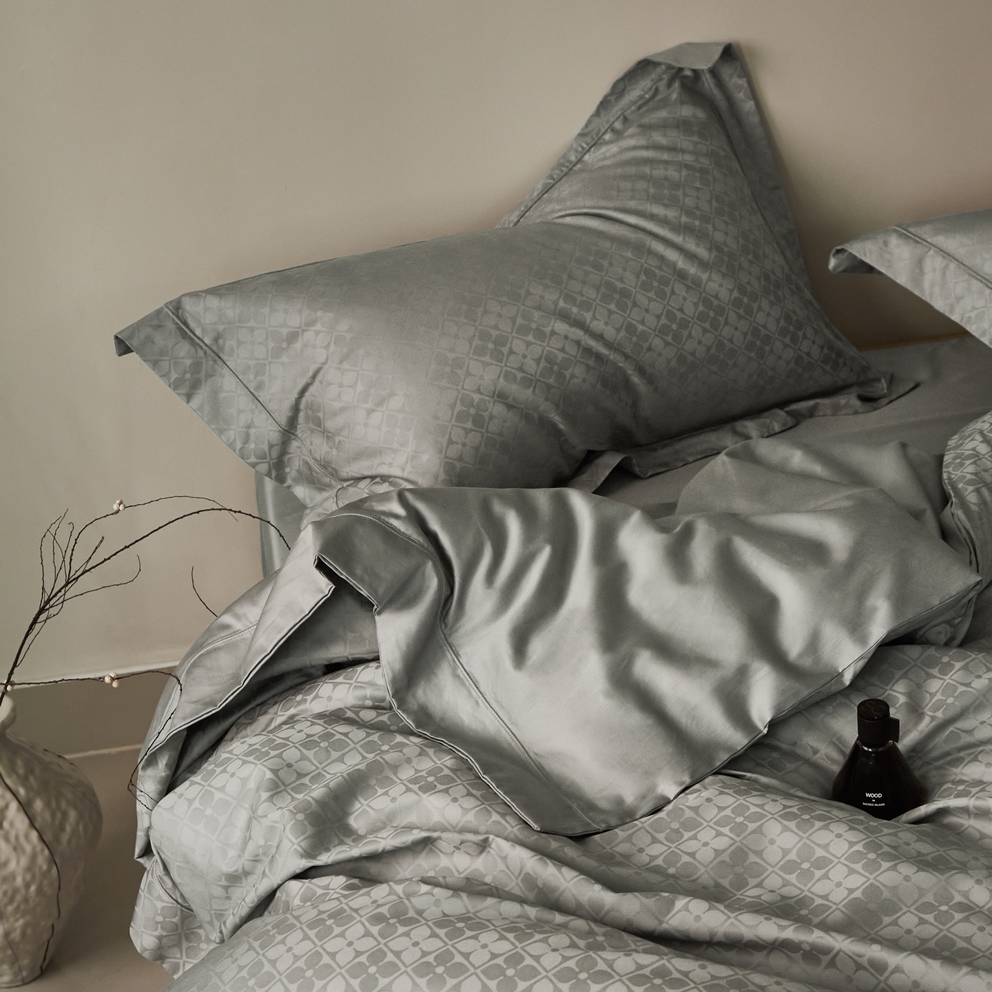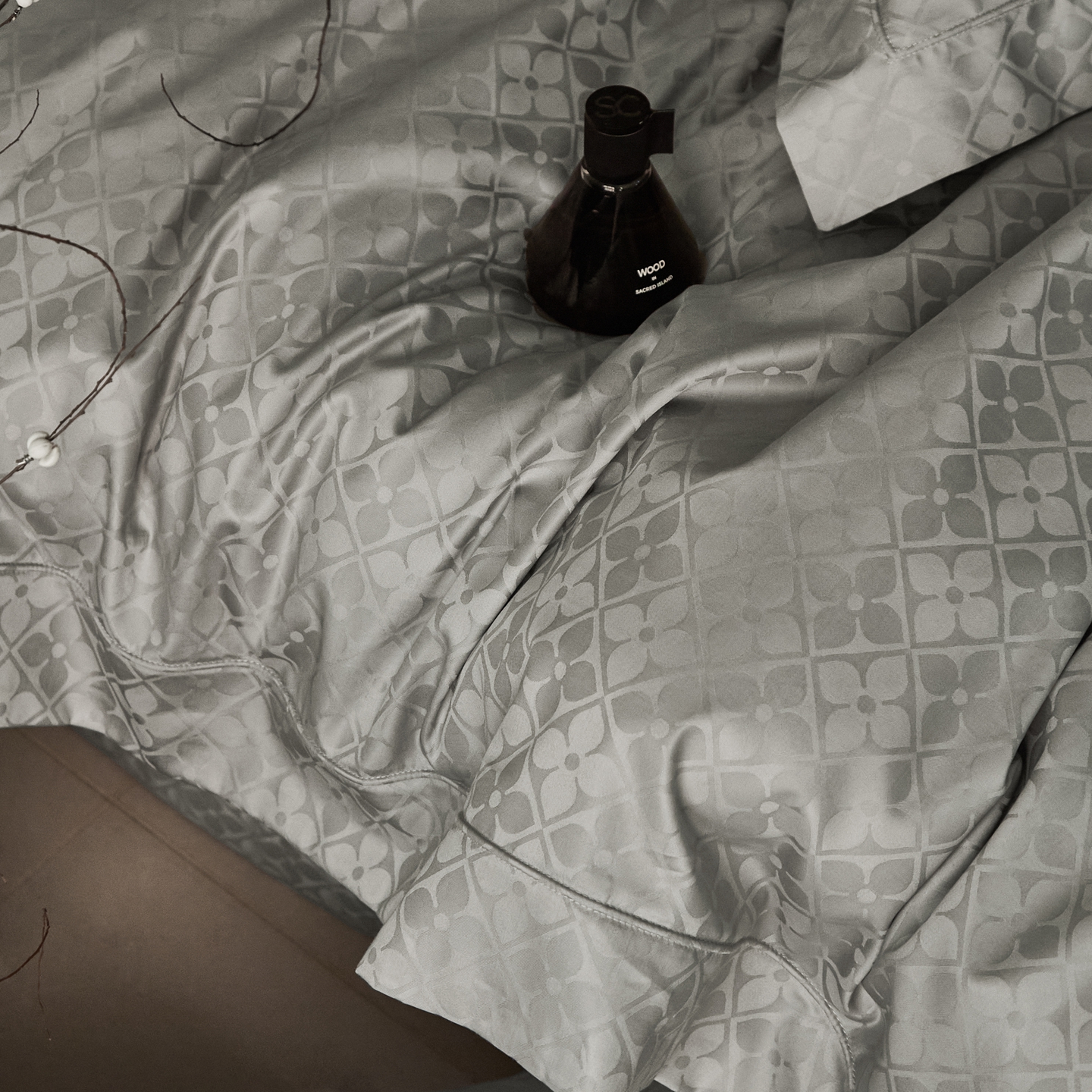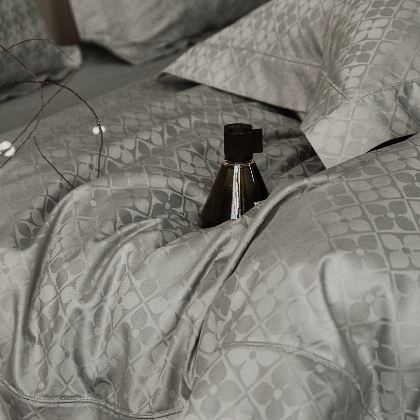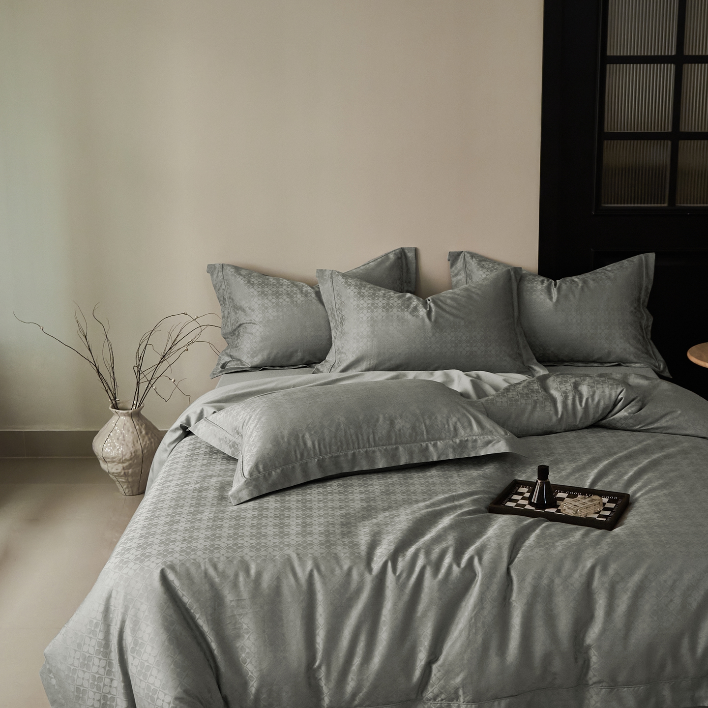 商品名称:顾家家居 2025新款亲肤舒适全棉纯棉提花四件套 洛斯汀--极地灰