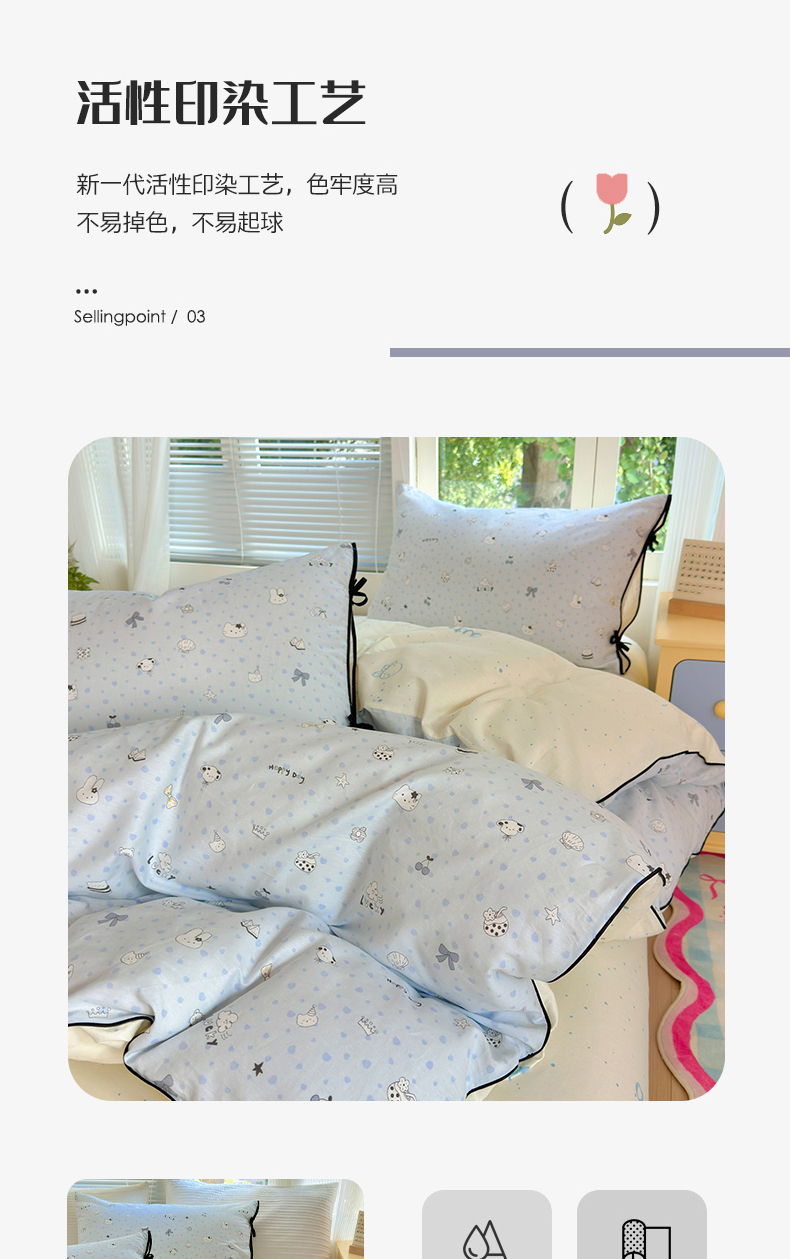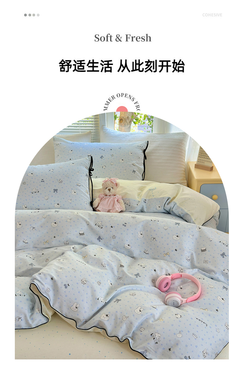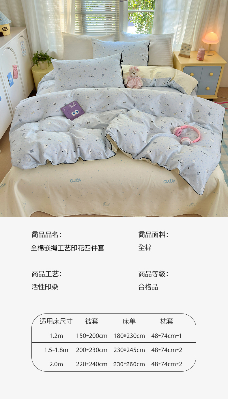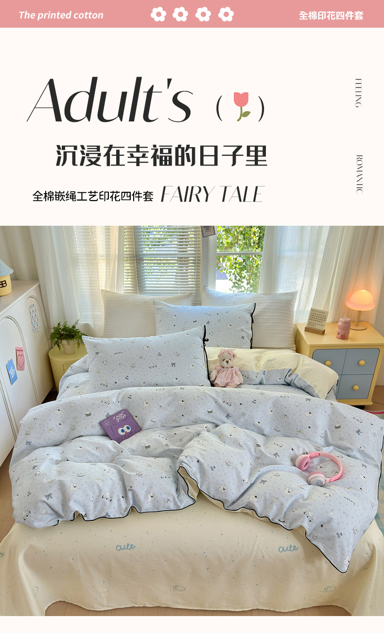 (总)女子家纺 2026新款全棉12868卡通印花四件套大耳朵兔兔系列,彩条马仔,茶歇时光,大耳朵兔兔,粉格甜崽,黑白动物集,蝴蝶结萌宠,花海童话,蓝粉汪集,蓝格甜崽,蓝格汪星,奶芙呼呼,七彩星星,青柠蓝花,手绘汪星人,甜娃娃,兔叽碎花,兔与花,线条蓝猫咪,线条木马,小微笑,小熊涂鸦,星夜星浪,星愿熊,元气恐龙格,hello粉猫