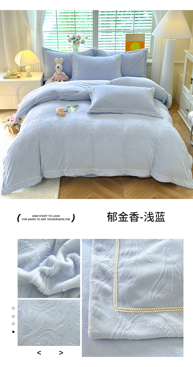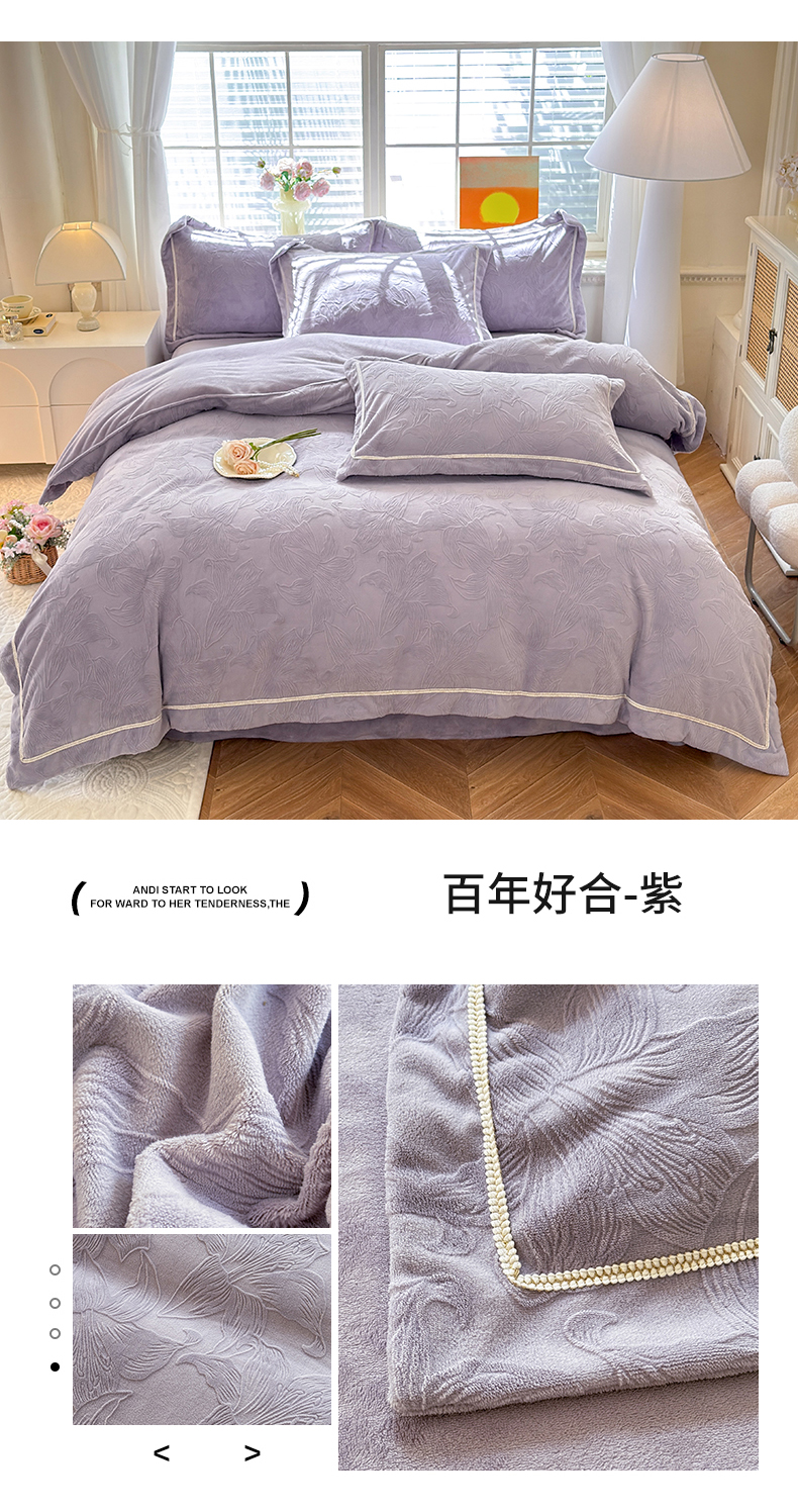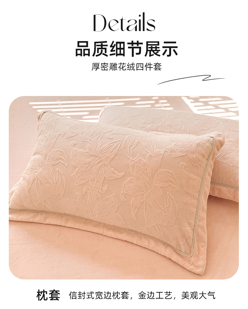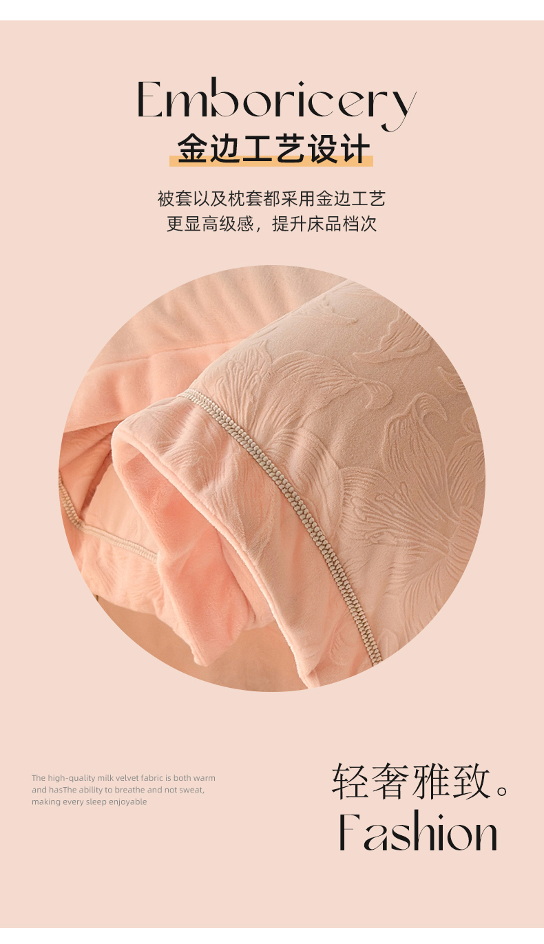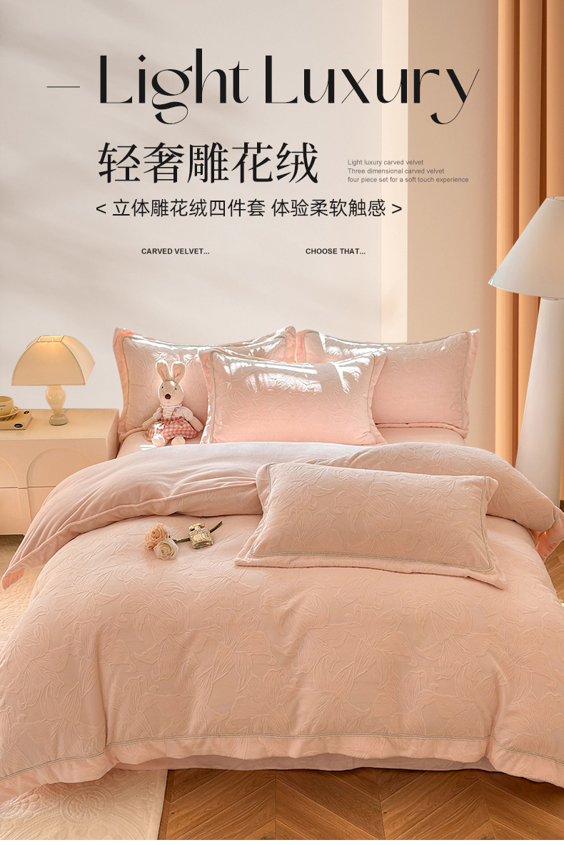 艾唯希家纺 2025新款全消光雕花绒织带款四件套牛奶绒-雕花织带系列 百年好合-粉