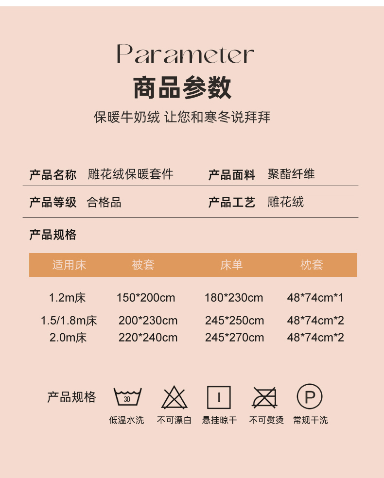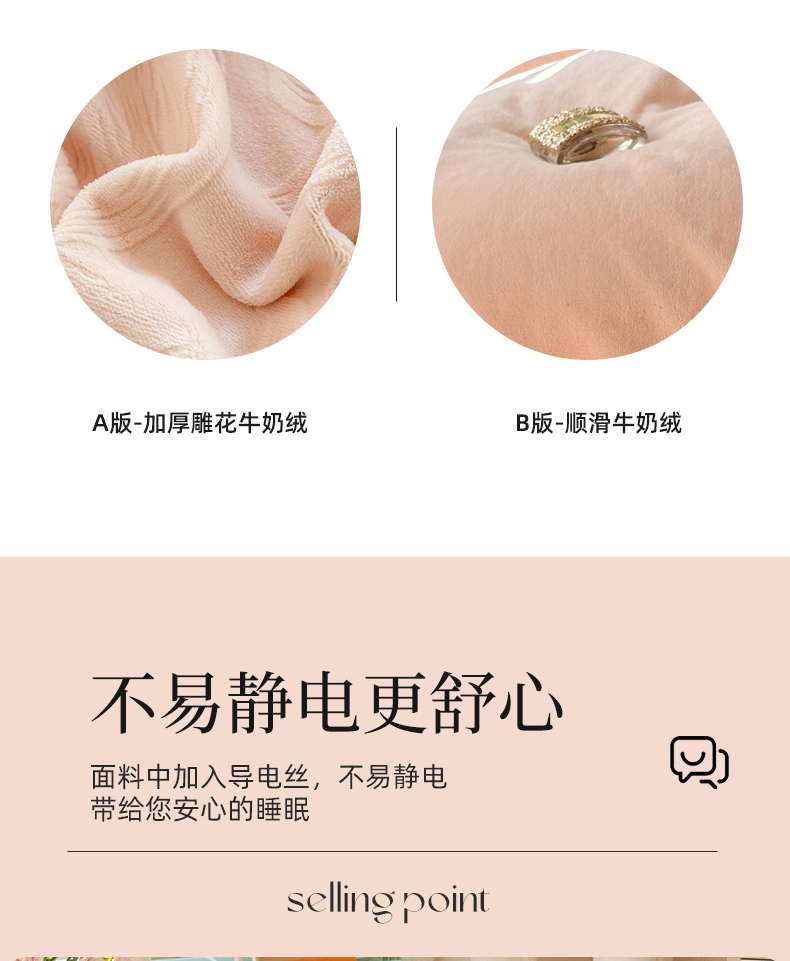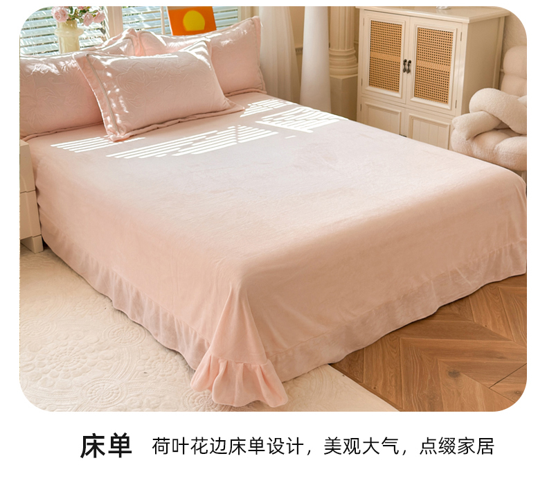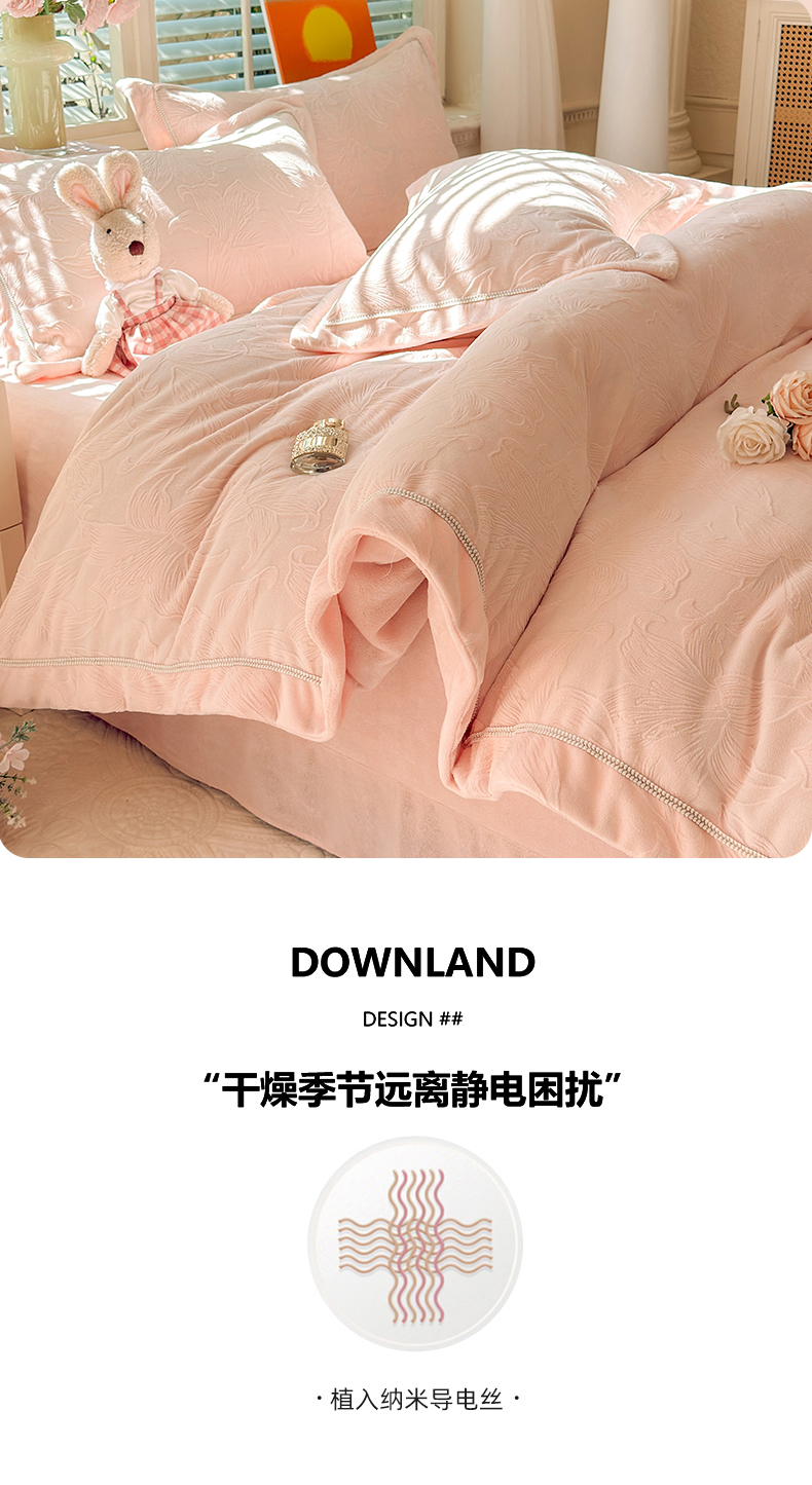 商品名称:艾唯希家纺 2025新款全消光雕花绒织带款四件套牛奶绒-雕花织带系列 百年好合-粉