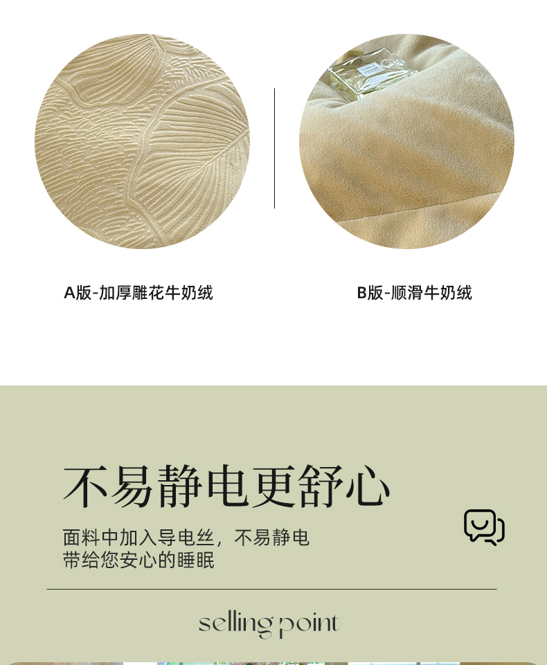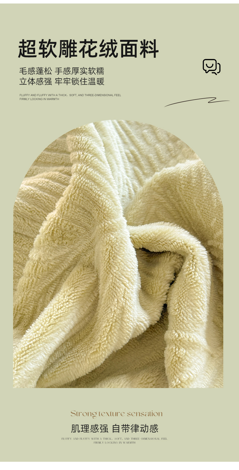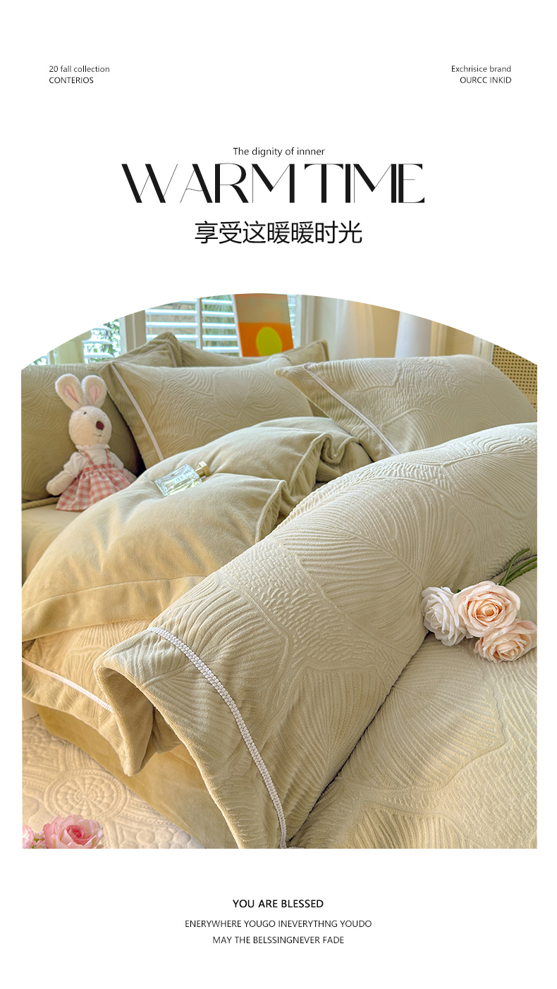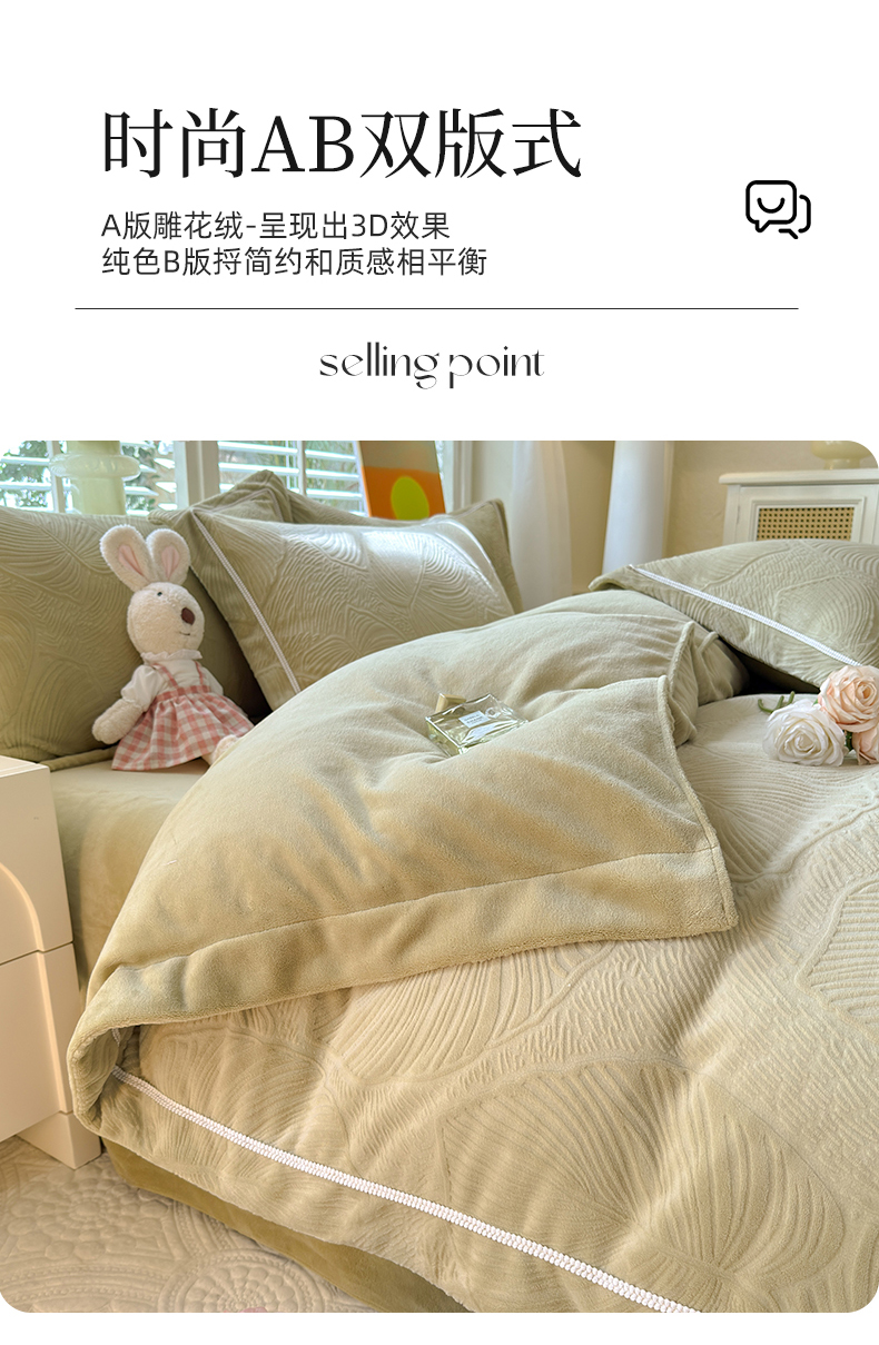 艾唯希家纺 2025新款全消光雕花绒织带款四件套牛奶绒-雕花织带系列 叶舞悠然-绿