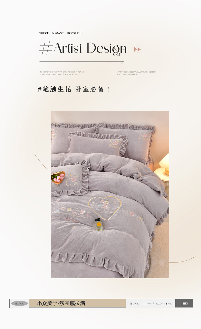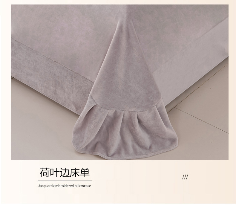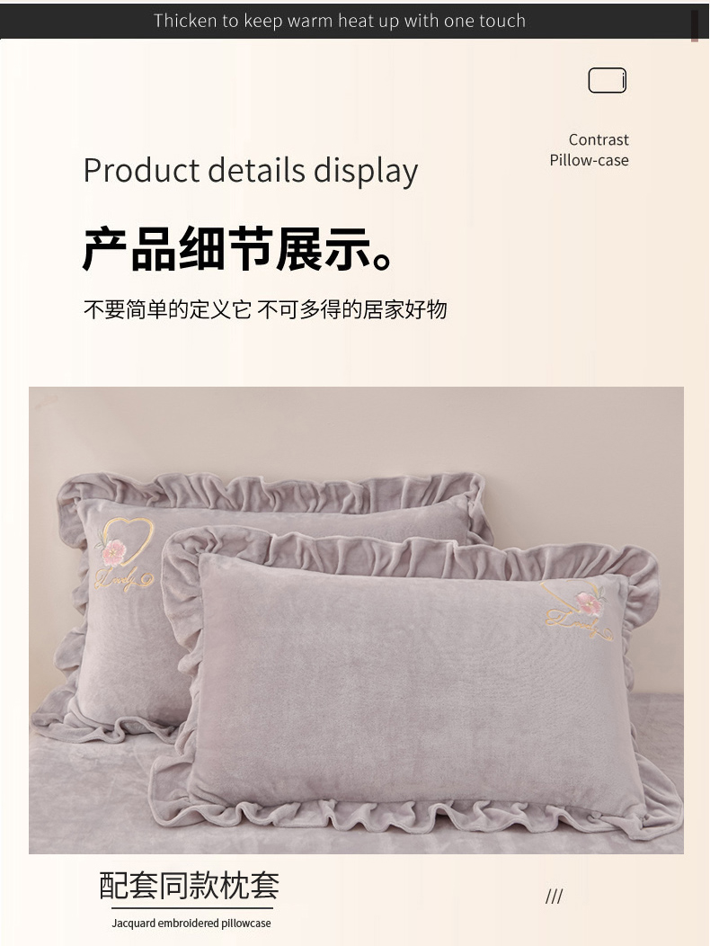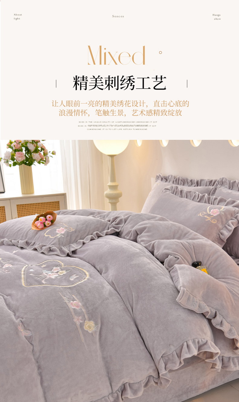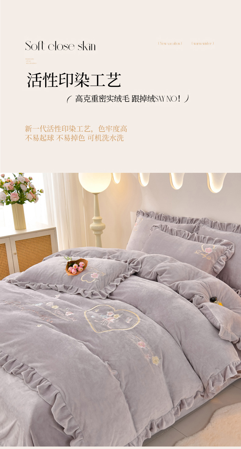 商品名称:畅畅家纺 2025新款亲肤舒适冬季刺绣花边保暖牛奶绒四件套-爱心之旅 爱心之旅-灰