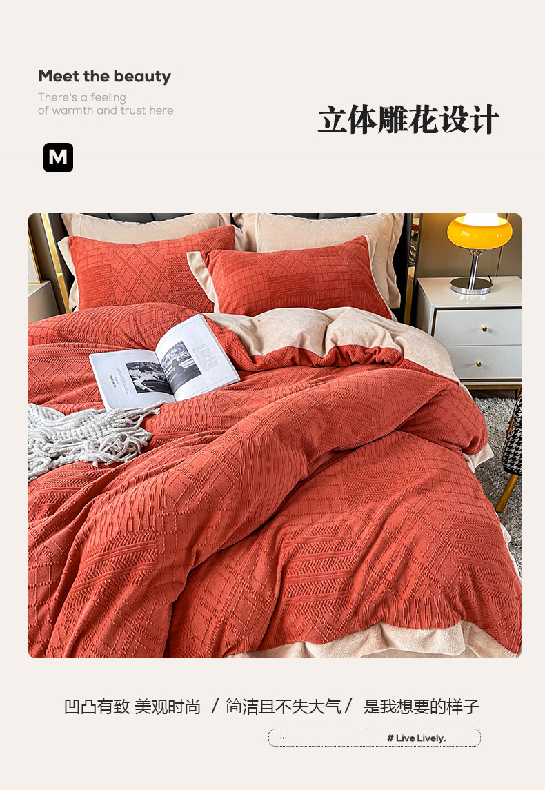 (总)2024秋冬新款全消光拼角雕花绒牛奶绒四件套,安娜-豆粉,安娜-抹绿,安娜-奶油橙,典雅-豆粉,典雅-高级灰,典雅-抹绿,典雅-奶油橙,慕丝-豆沙,慕丝-玫瑰粉,慕丝-奶油橙
