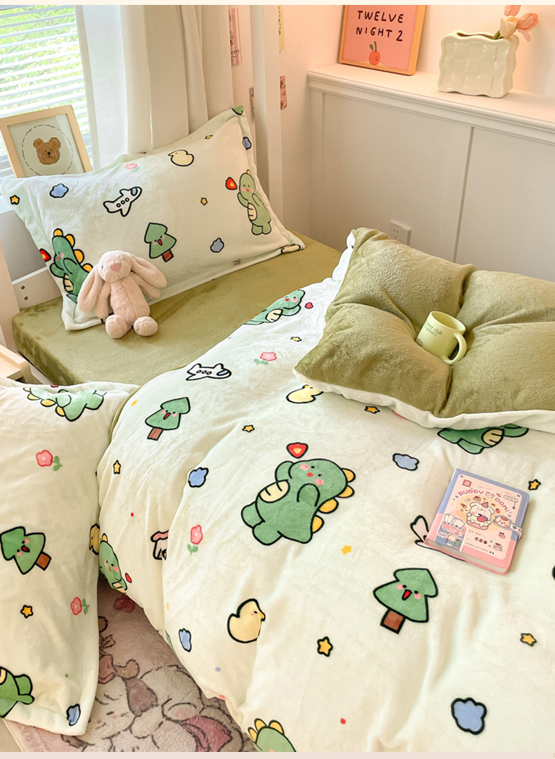 当前位置: 91家纺网 > 商品网购 > 床品套件 > 三件套 > 寻米 2025新款高克重加厚保暖牛奶绒学生宿舍单床笠单件床笠系列二 恐龙森林