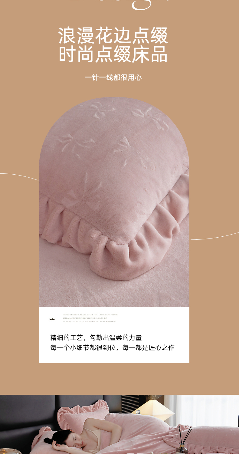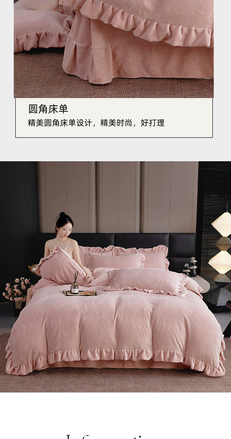 (总)找底底家纺 2025新款花边9-10斤牛奶绒床盖款四件套,花妖,梨花落,小樱桃,紫蔻