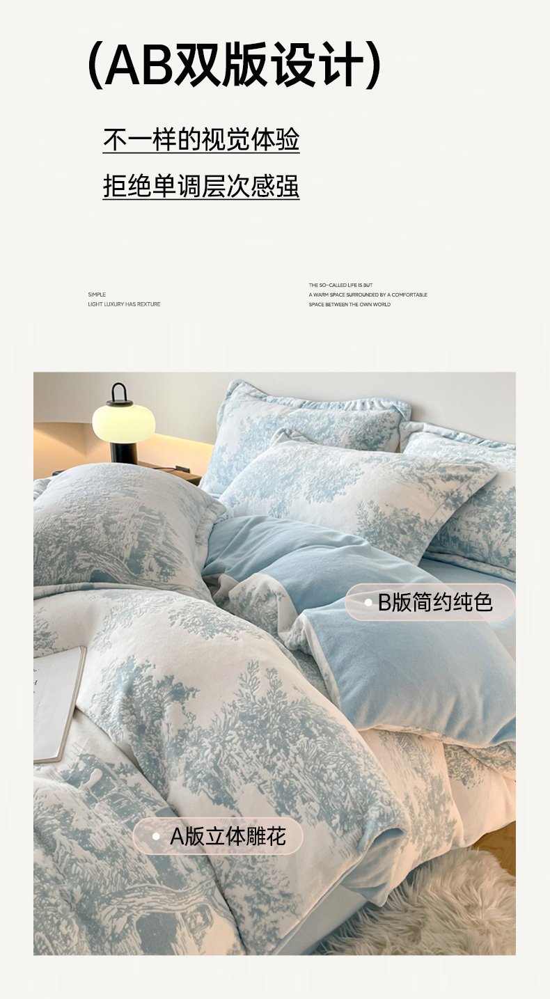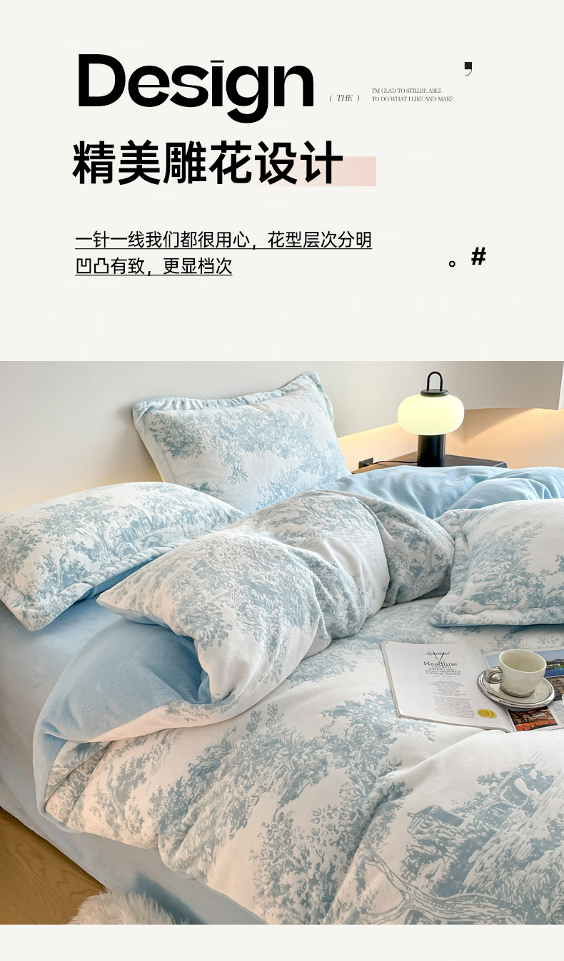 商品名称:梵克保罗 2025新款保暖舒适雕花绒四件套 心中之城