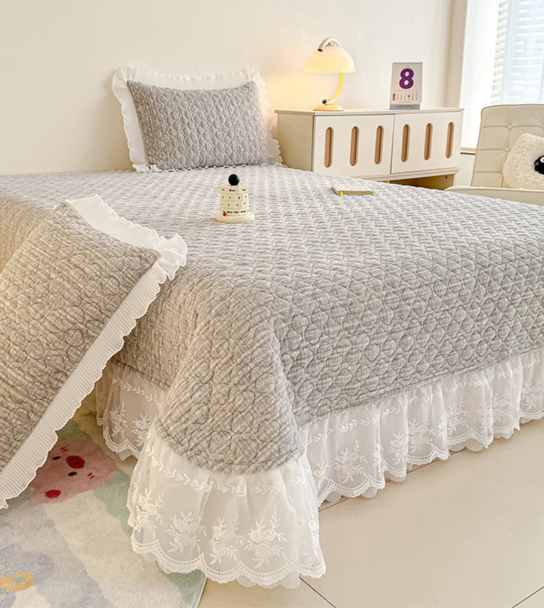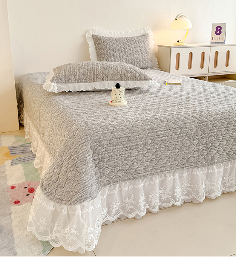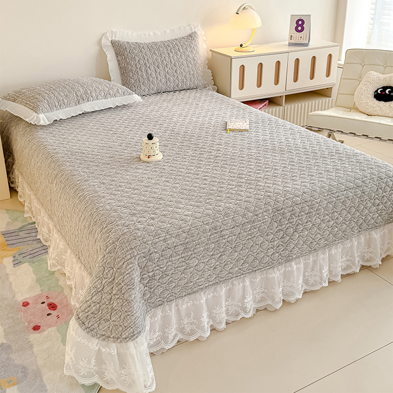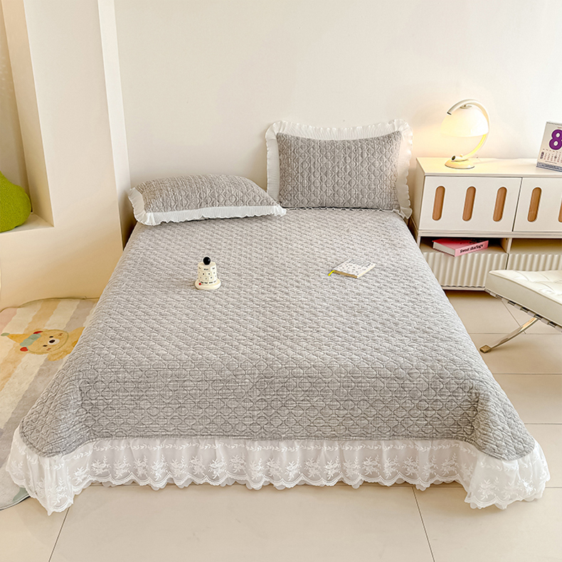 冬然家纺 2025新款高克重牛奶绒蕾丝花边床盖系列 肌理纹-灰