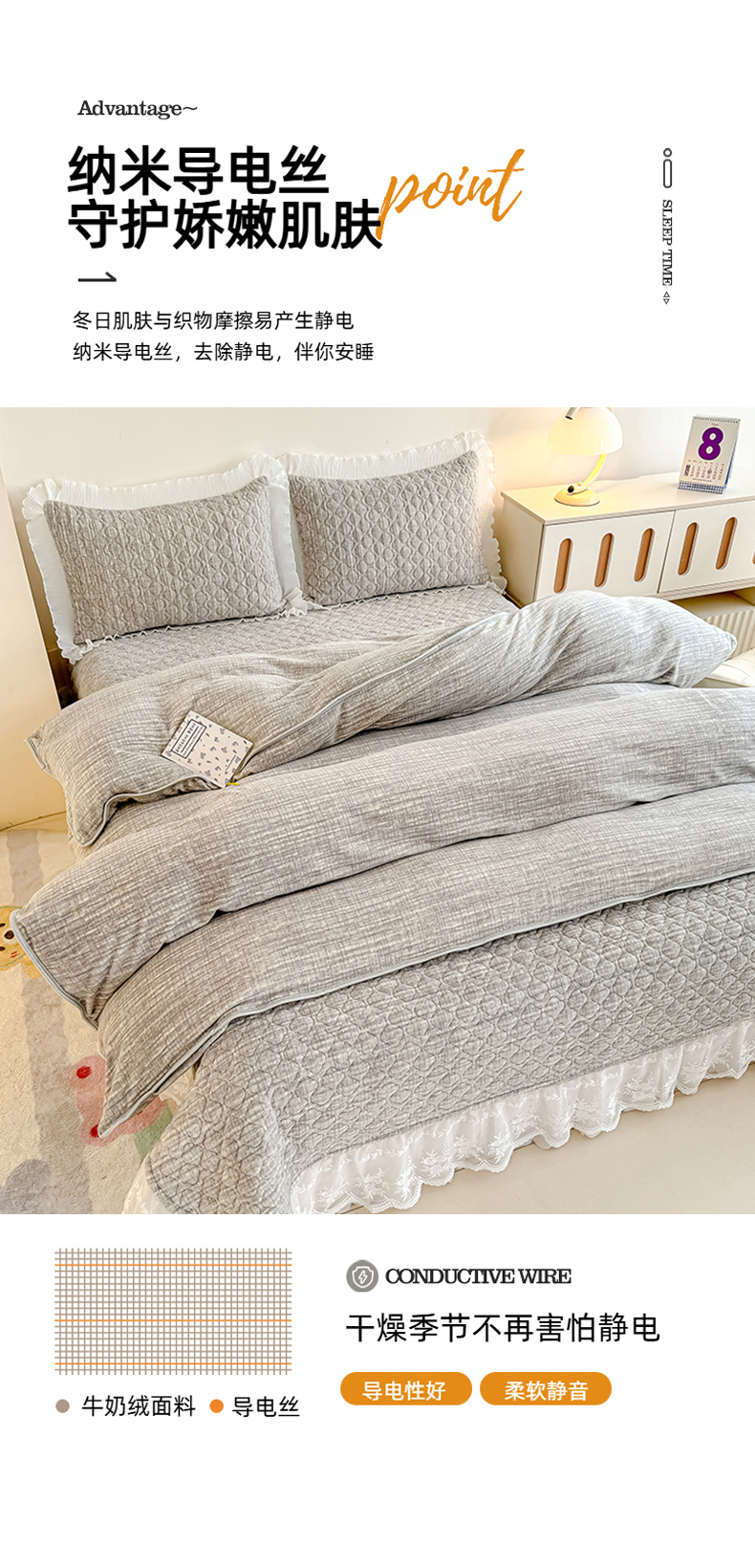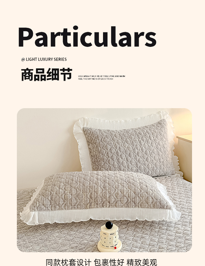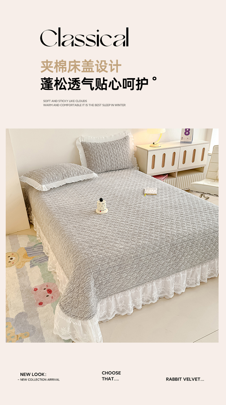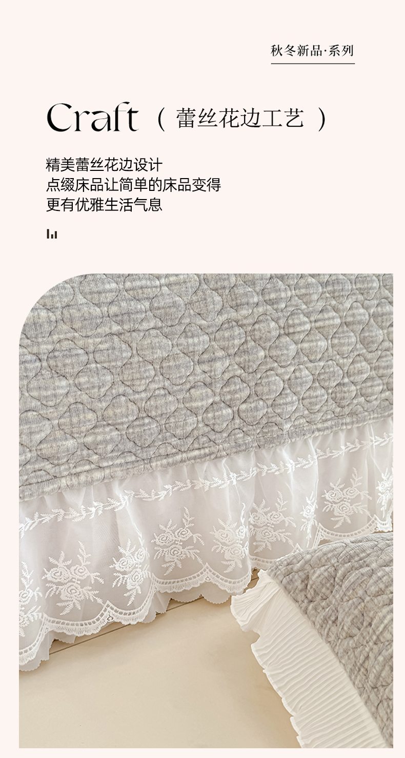 商品名称:冬然家纺 2025新款高克重牛奶绒蕾丝花边床盖系列 肌理纹-灰