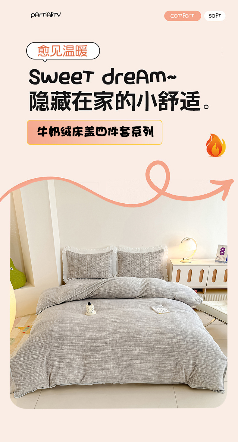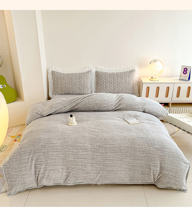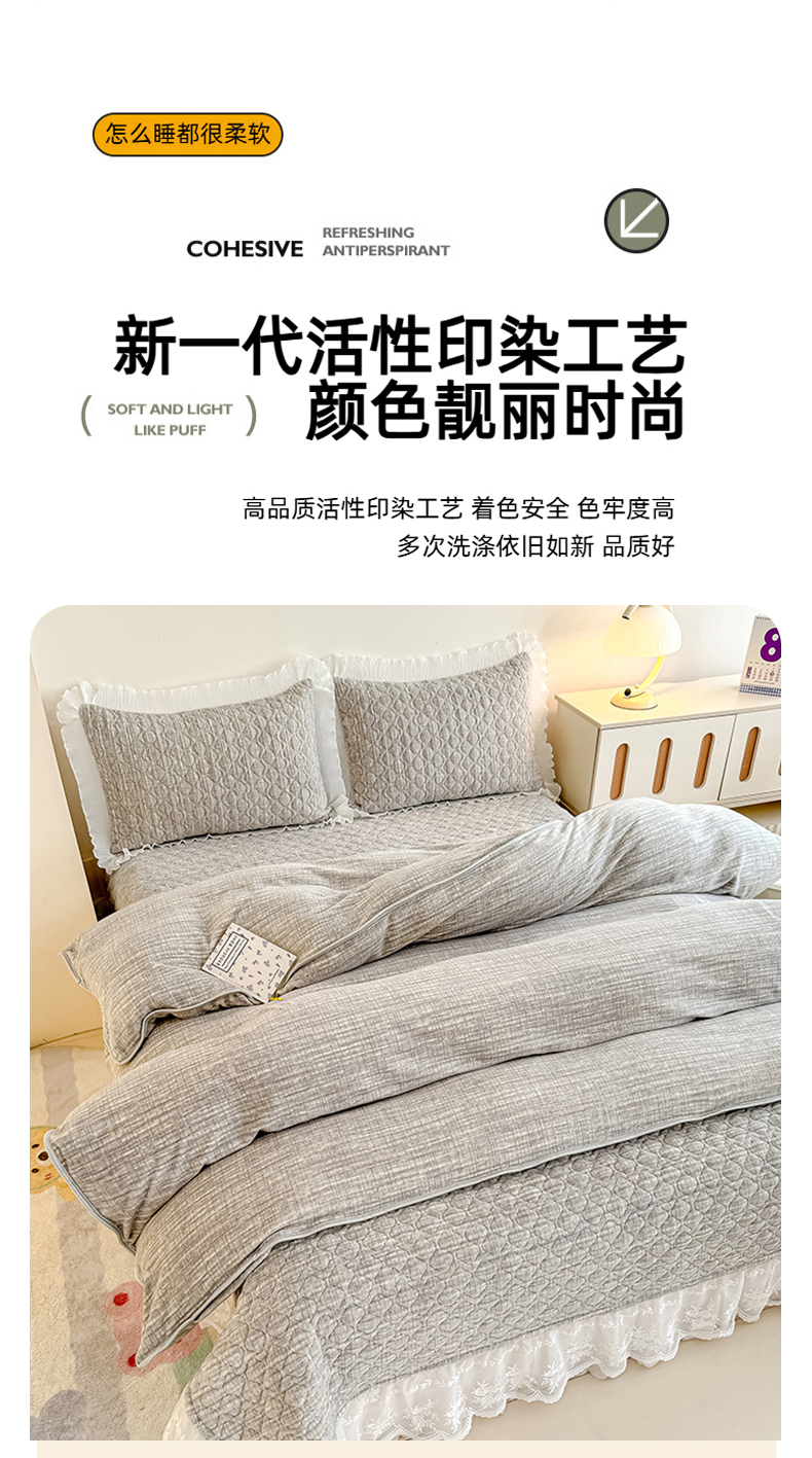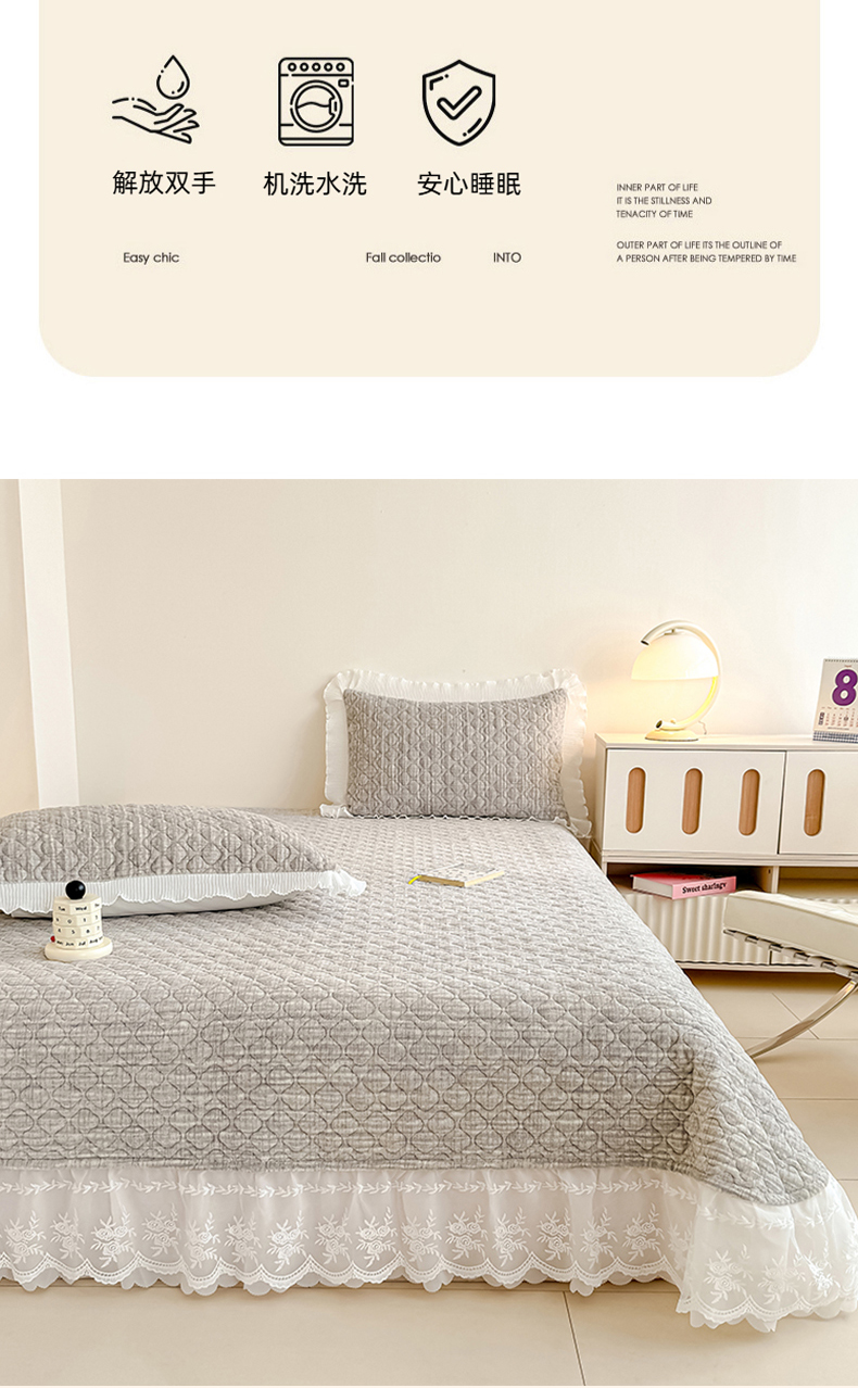 商品名称:冬然家纺 2025新款高克重牛奶绒蕾丝花边床盖系列 肌理纹-灰