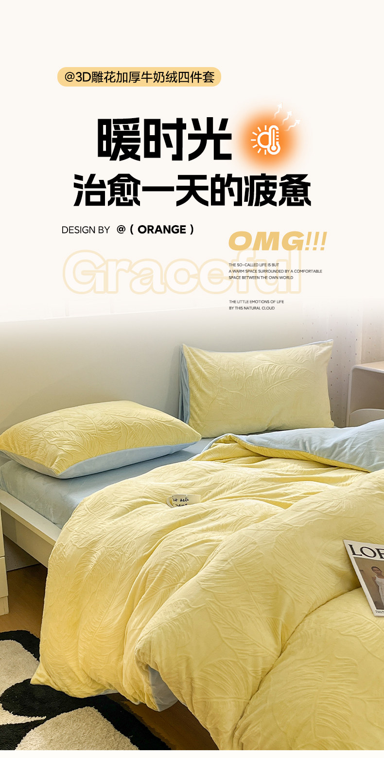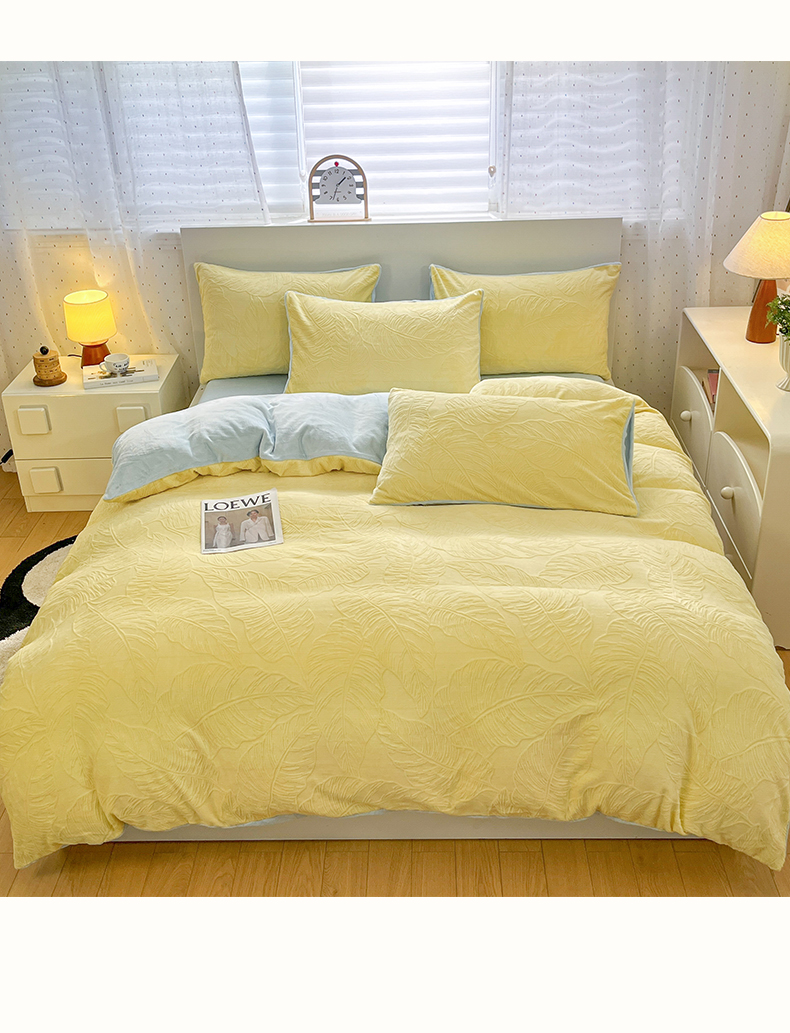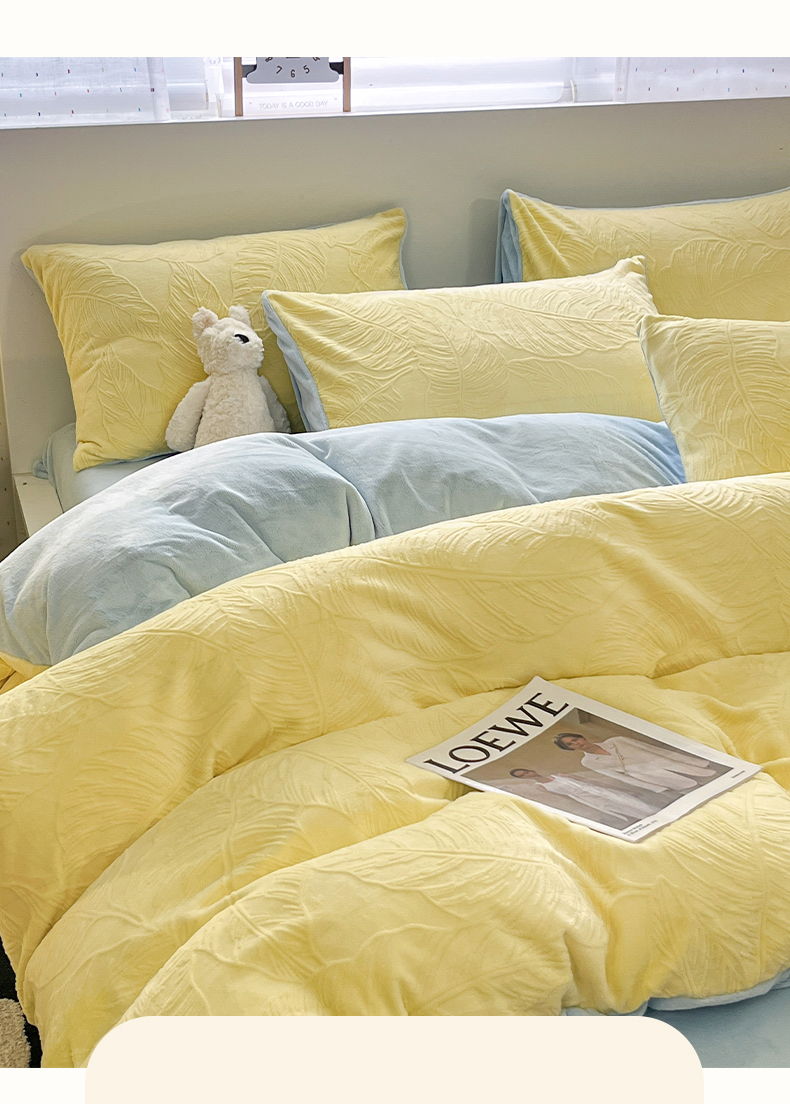 商品名称:如一 2025新款3D雕花牛奶绒四件套第三批 芭蕉叶-黄