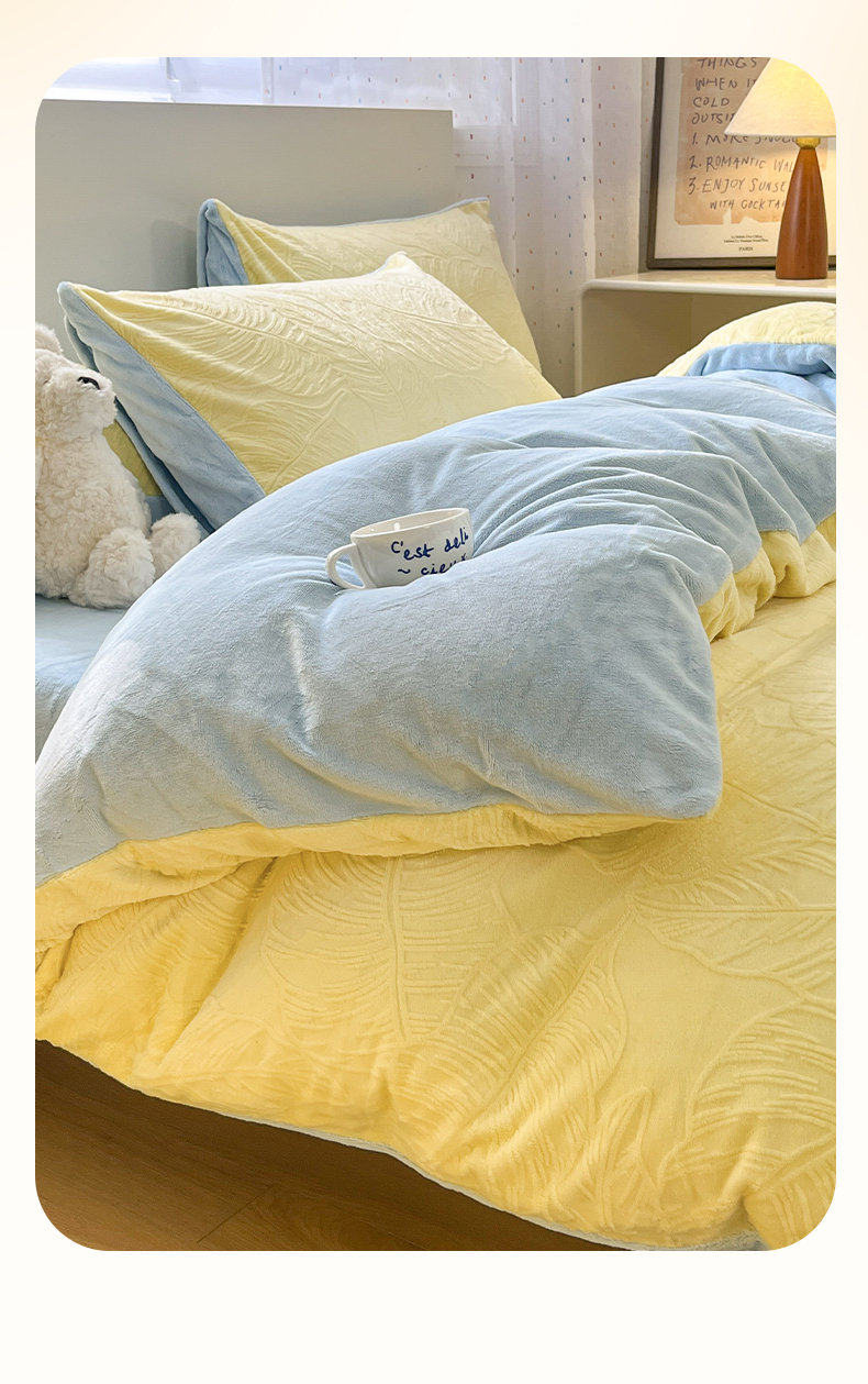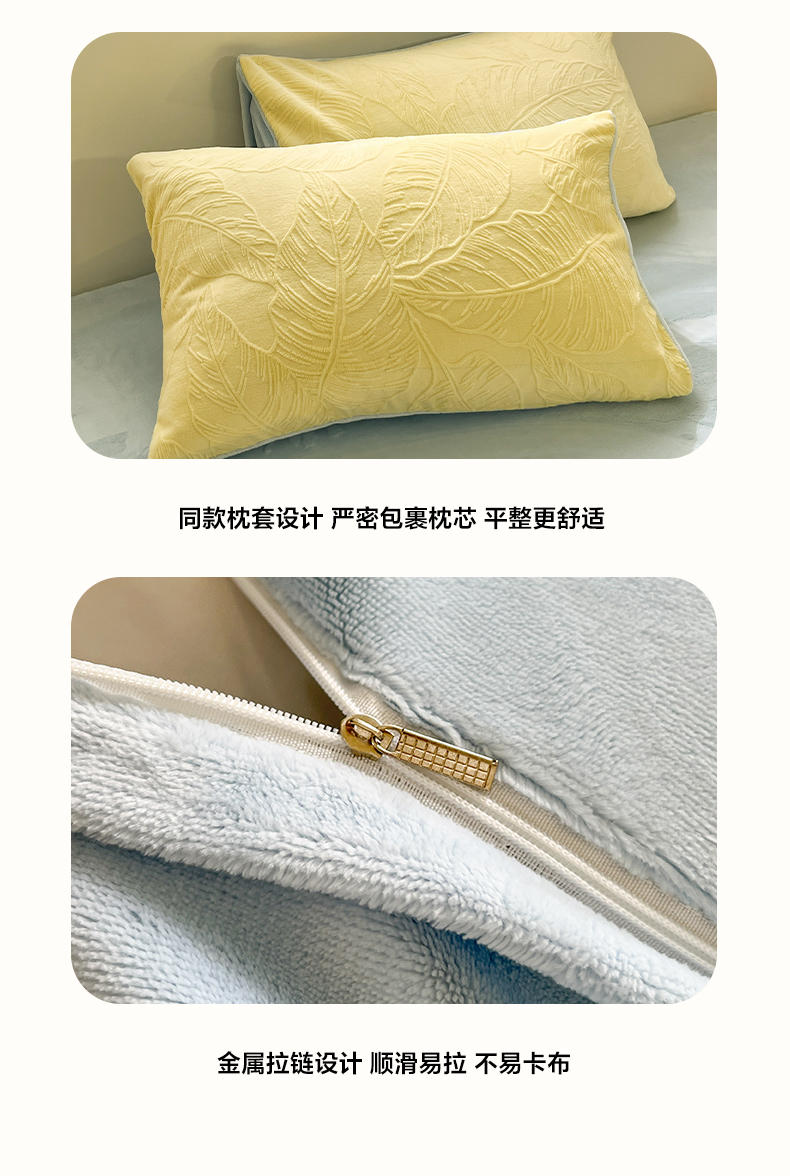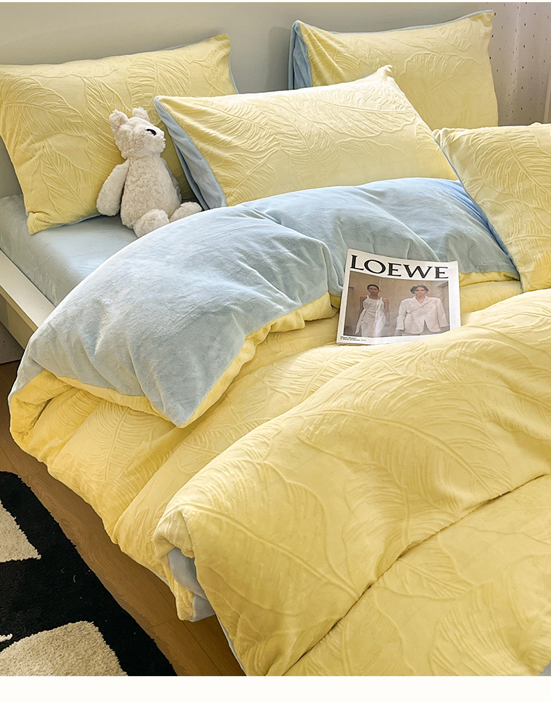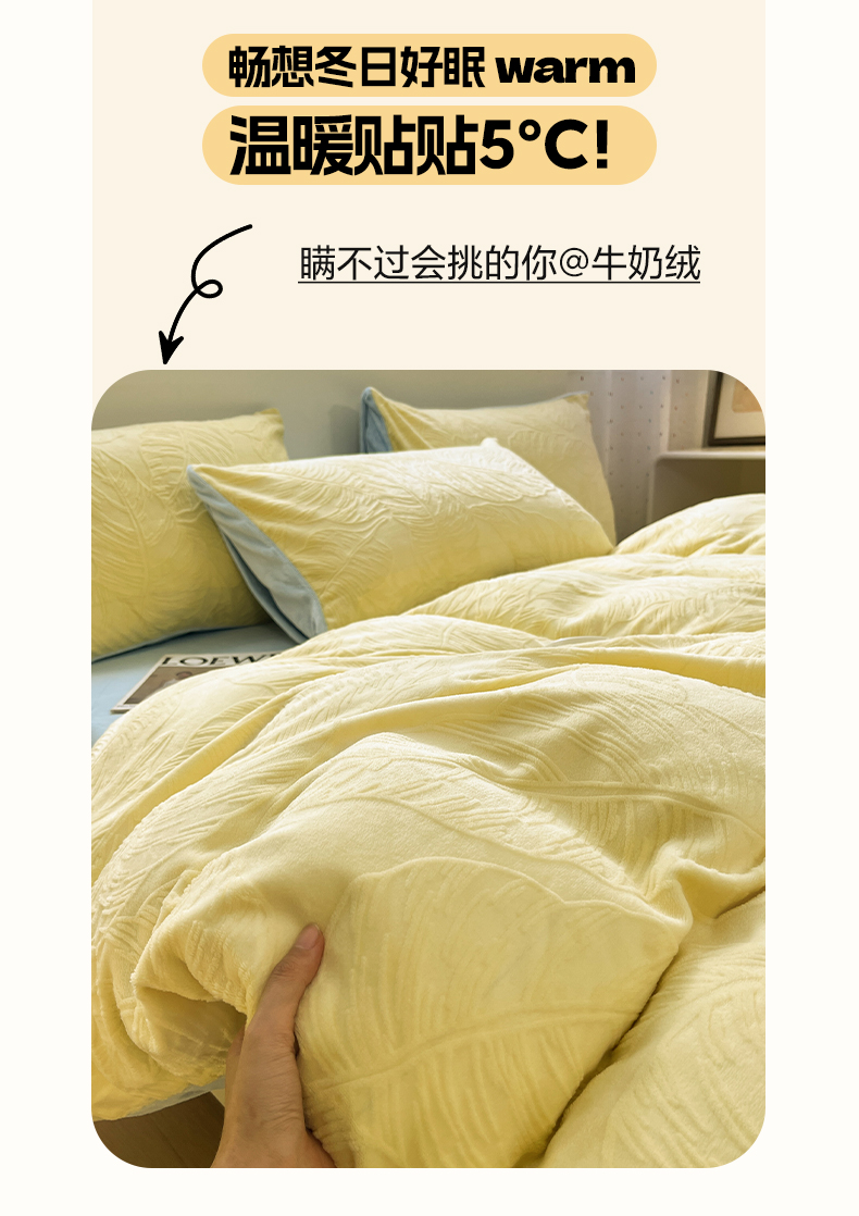 如一 2025新款3D雕花牛奶绒四件套第三批 芭蕉叶-黄