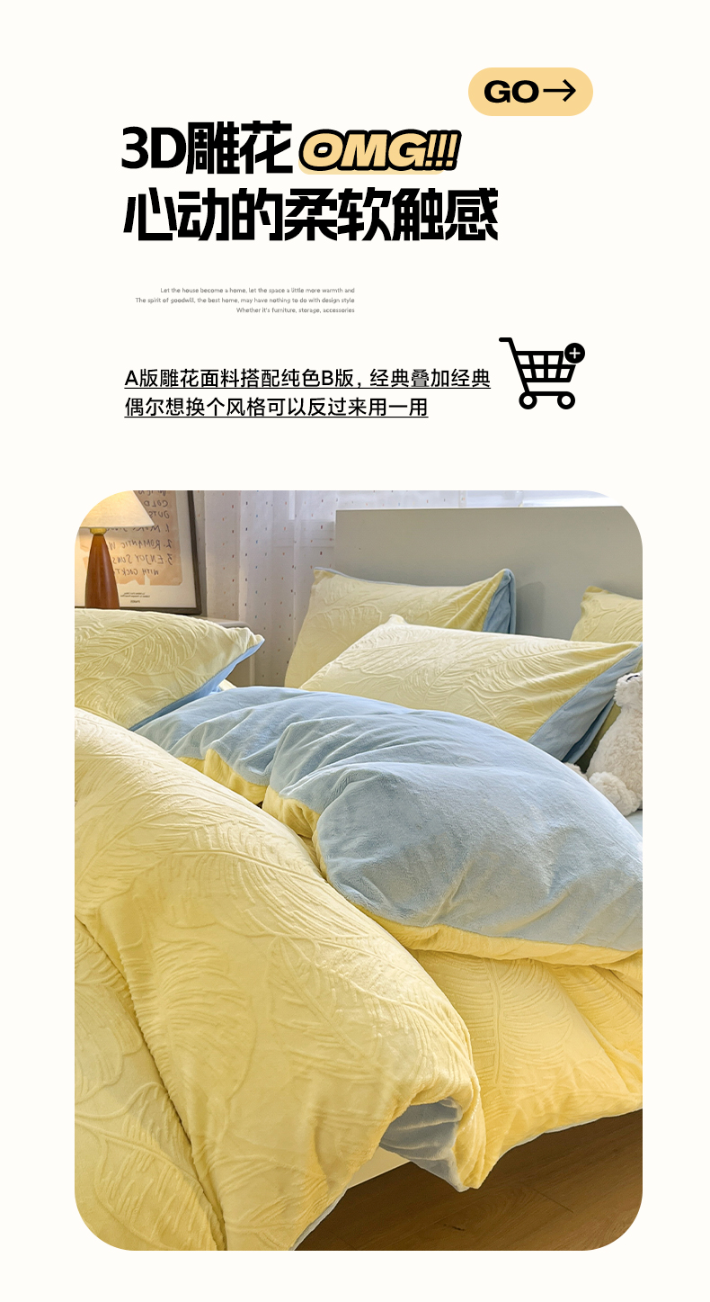 (总)如一 2025年3D立体雕花牛奶绒四件套,芭蕉叶-白咖,花漾-粉,编织纹-天蓝,繁花-粉,编织纹-白咖,缤纷-粉,编织纹-白橘,繁花-天蓝,花漾-黄,华夫格白,华夫格黄,肌理纹-杏,千鸟格粉,千鸟格灰,编织纹-粉,编织纹-灰,芭蕉叶蓝,编织纹-蓝灰