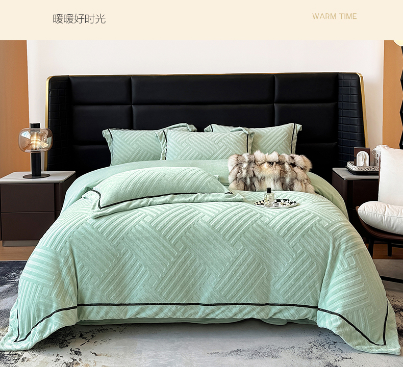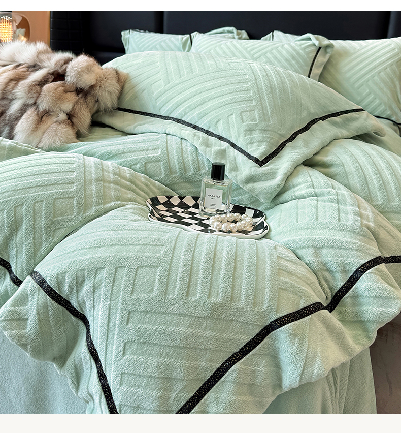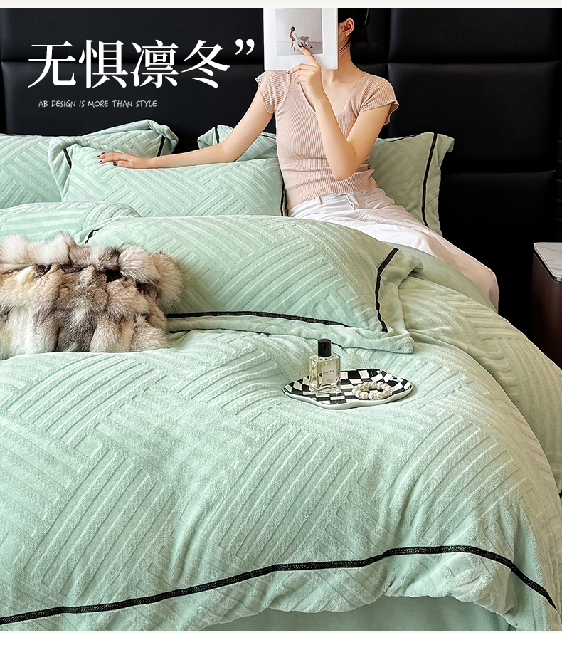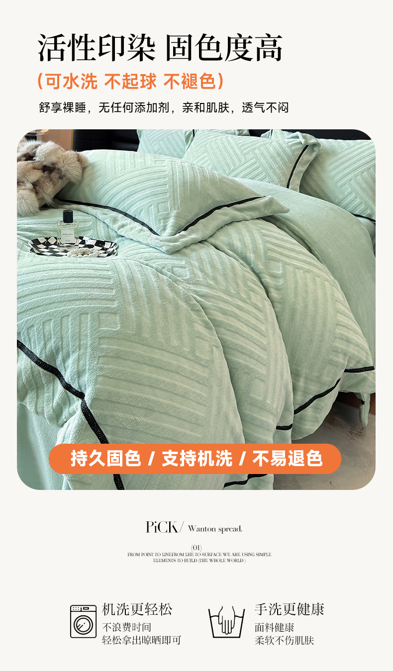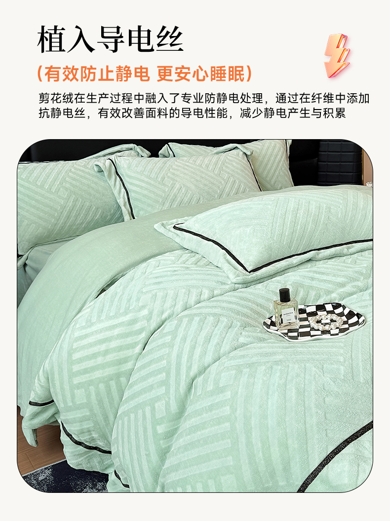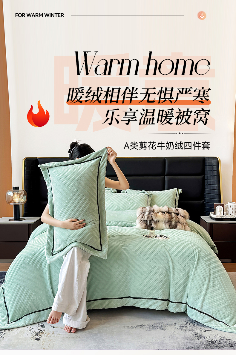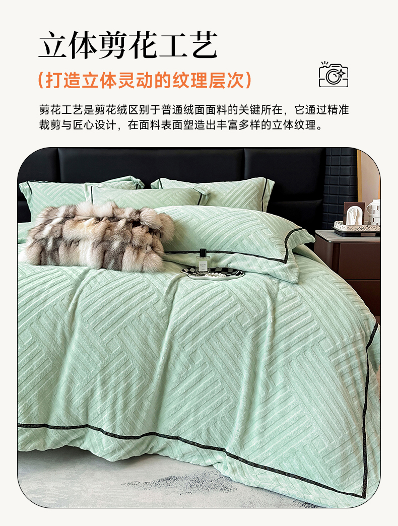 商品名称:家居1号家纺 2025新款230克全消光牛奶绒剪花四件套-暖意 暖意-果绿