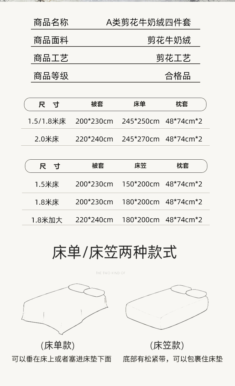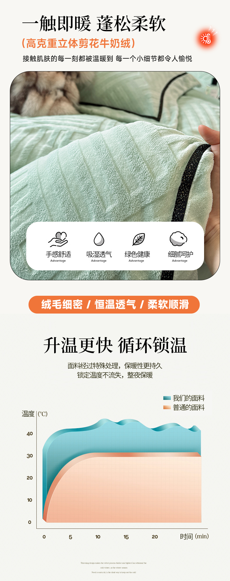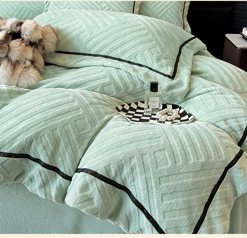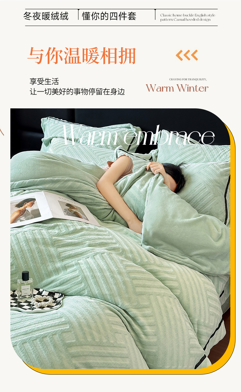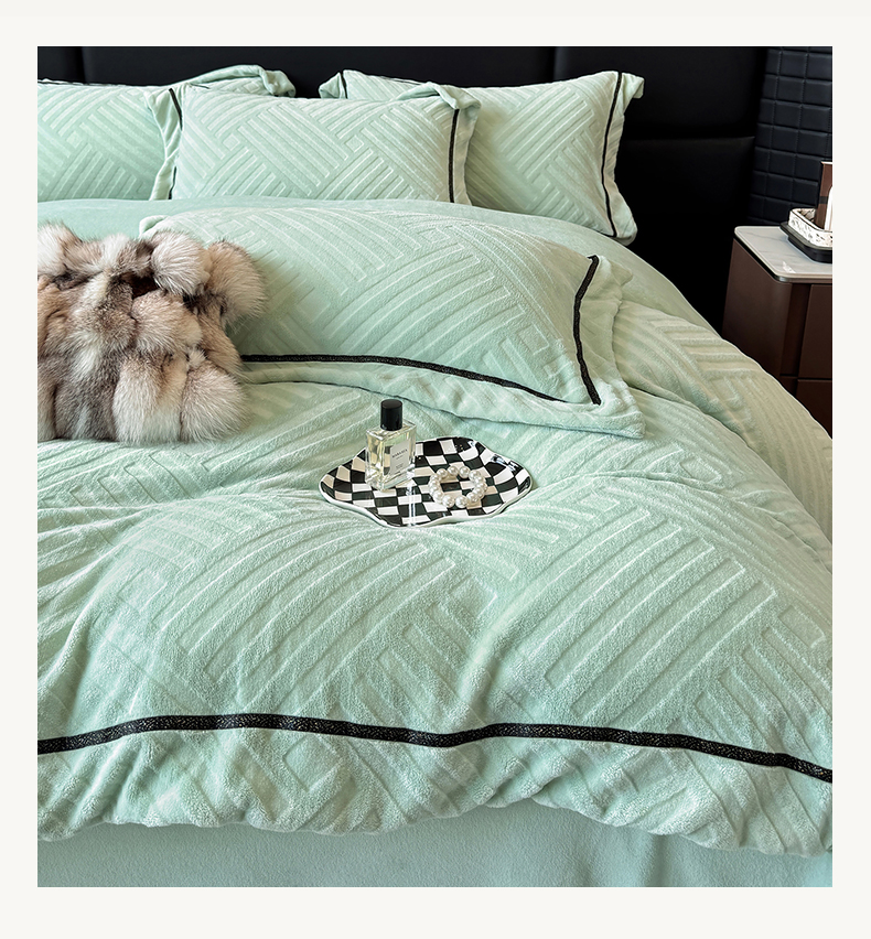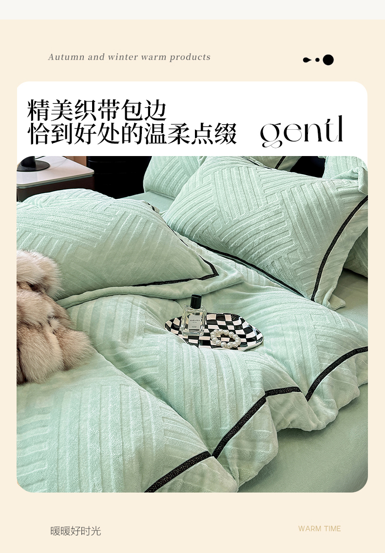 商品名称:家居1号家纺 2025新款230克全消光牛奶绒剪花四件套-暖意 暖意-果绿