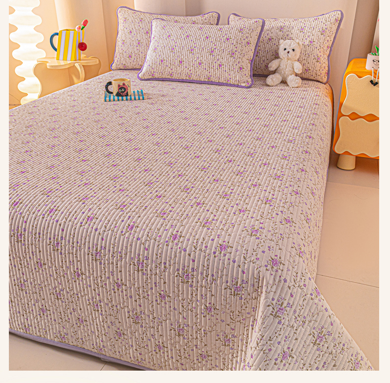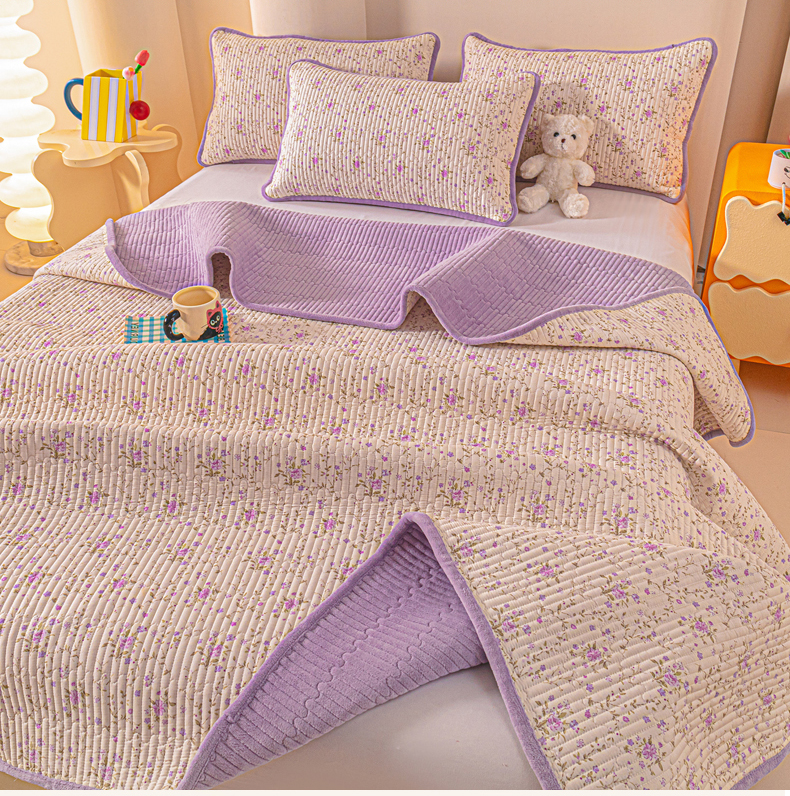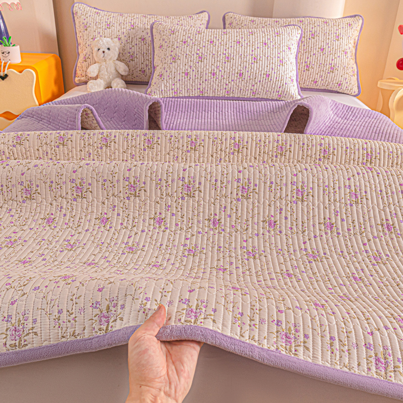 恒尚居 2025新款全棉牛奶绒床盖四季可用纯棉夹棉床单床褥垫三件套-秋冬款系列一 熏衣紫【A纯棉-B牛奶绒】