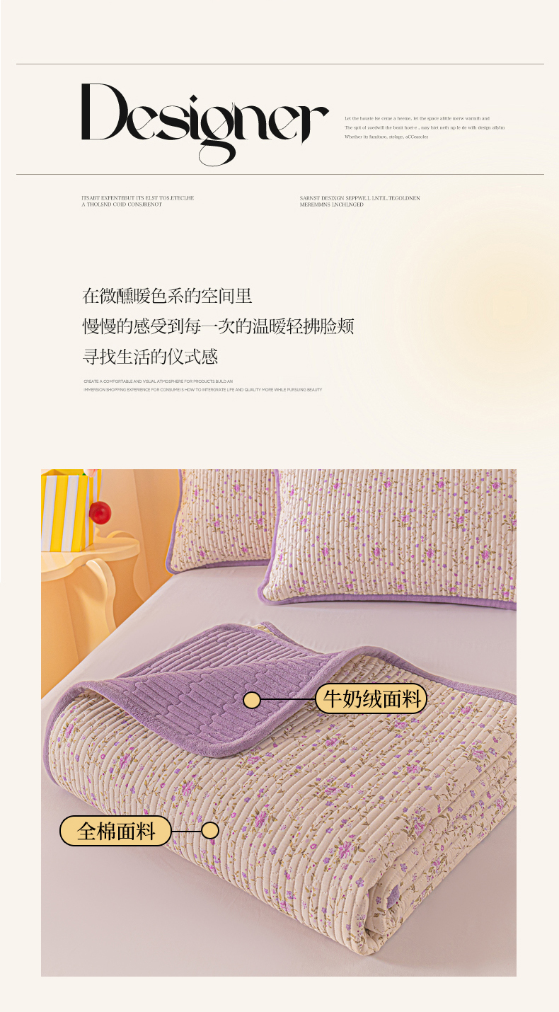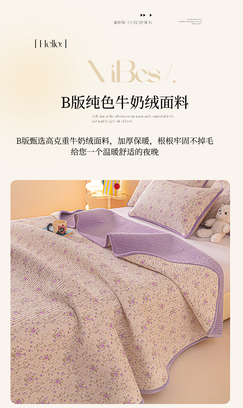 当前位置: 91家纺网 > 商品网购 > 床上用品 > 床盖 > 恒尚居 2025新款全棉牛奶绒床盖四季可用纯棉夹棉床单床褥垫三件套-秋冬款系列一 熏衣紫【A纯棉-B牛奶绒】