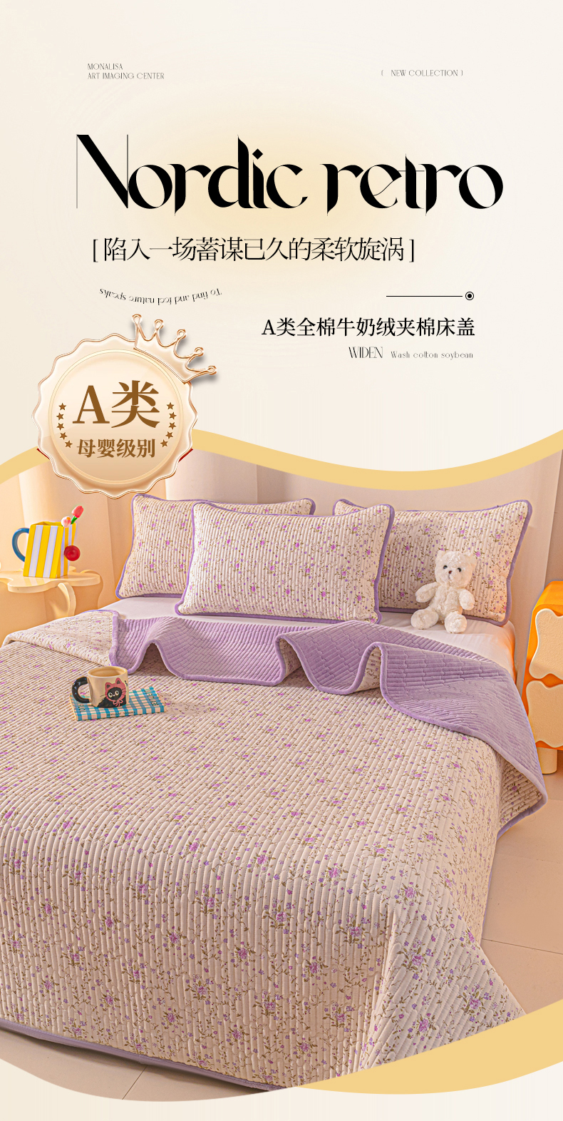 • 91家纺网 家纺一手货源 找家纺 恒尚居 2025新款全棉牛奶绒床盖四季可用纯棉夹棉床单床褥垫三件套-秋冬款系列一 熏衣紫【A纯棉-B牛奶绒】