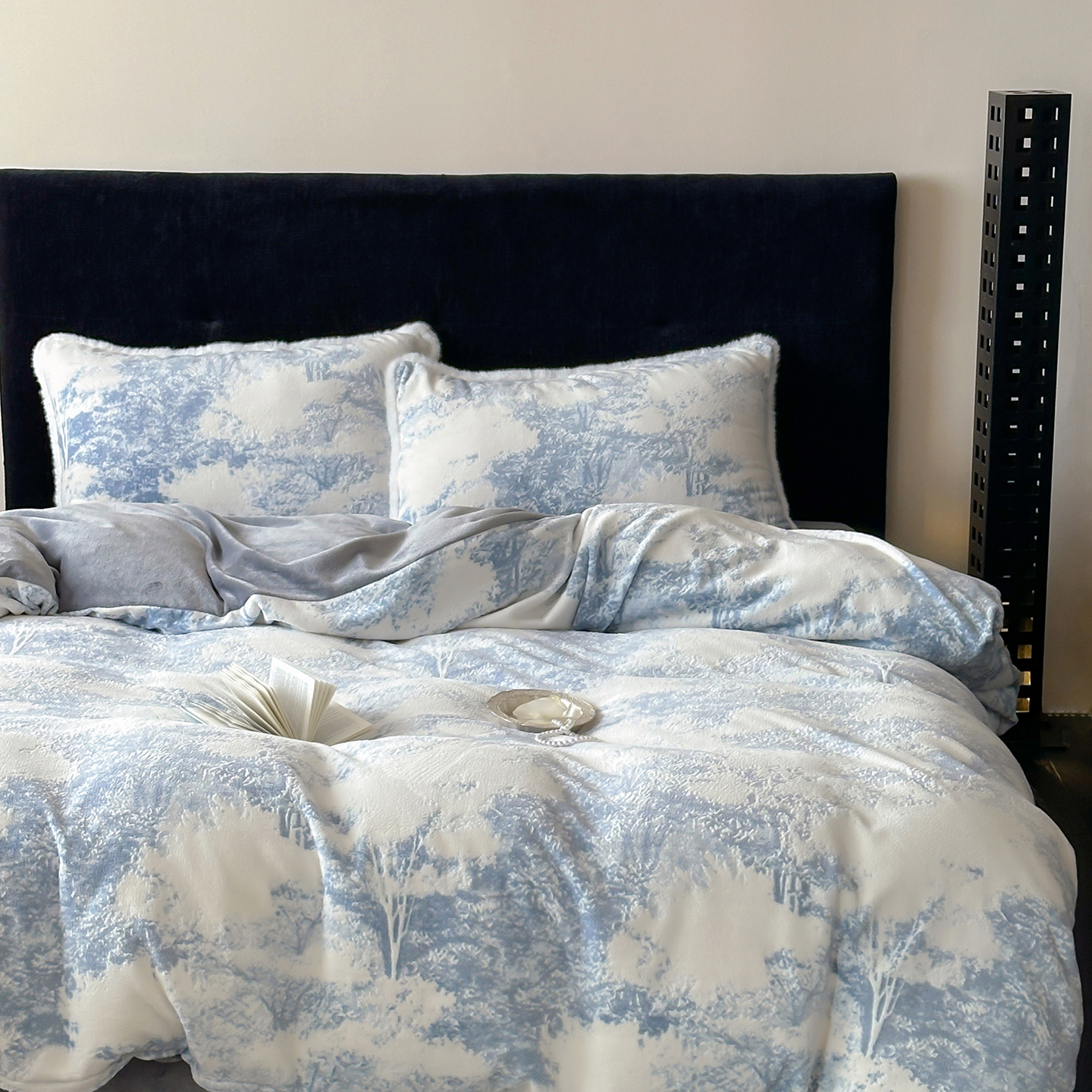 梦享生活家居 2025新款轻奢牛奶绒四件套系列 梦幻森林-灰