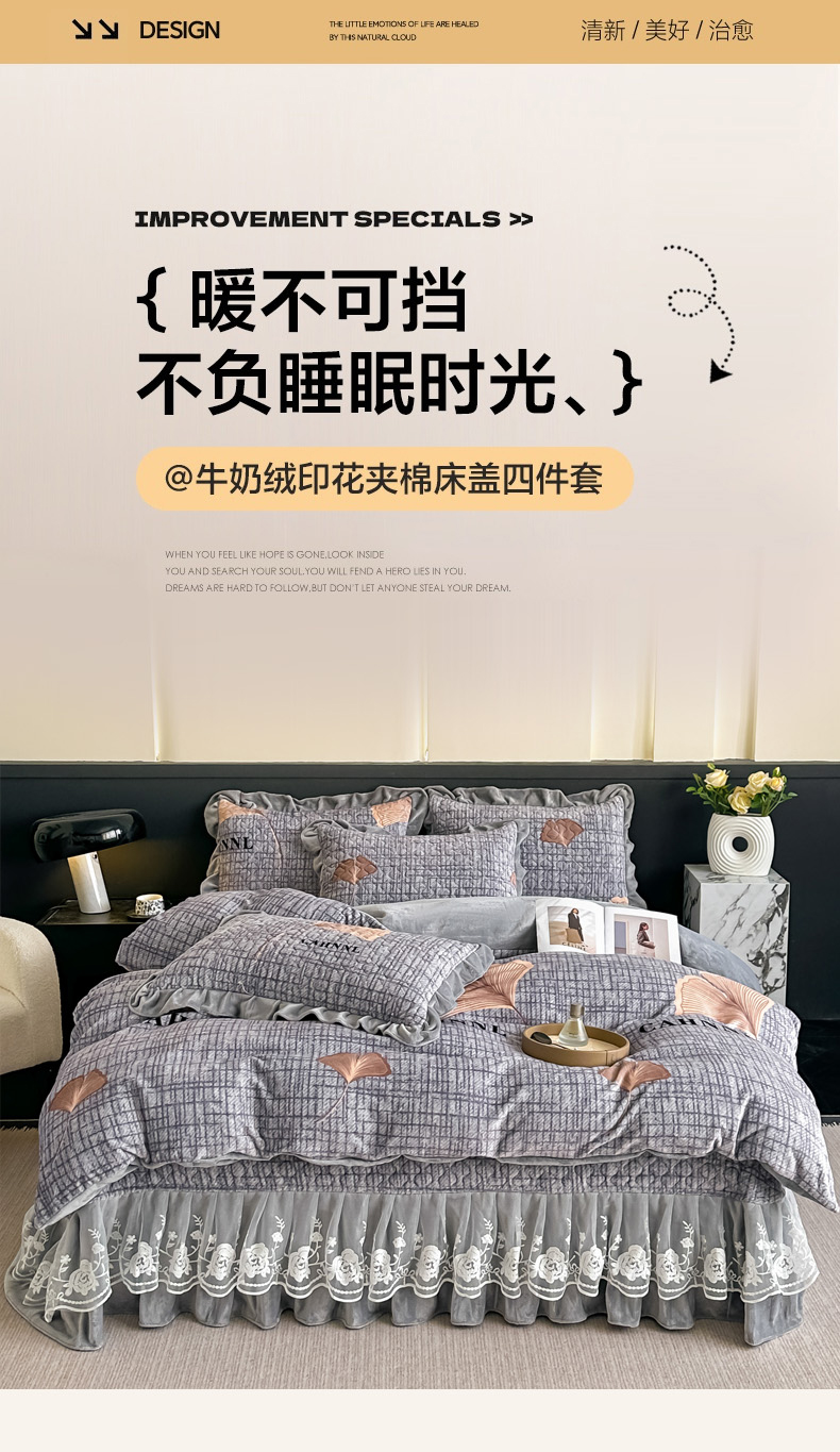 当前位置: 91家纺网 > 商品网购 > 床品套件 > 四件套 > 牛奶绒四件套 > 首选家纺 2025新款直播热款双层蕾丝花边牛奶绒印花床盖四件套床盖单件三件套 梦想起航