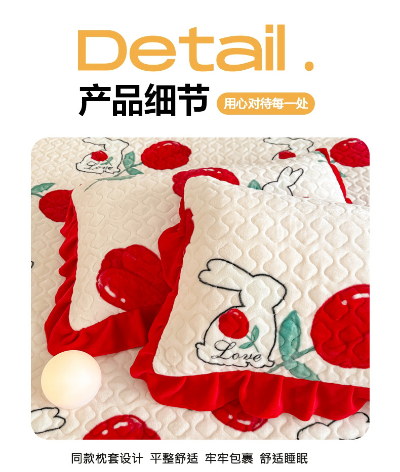 当前位置: 91家纺网 > 商品网购 > 床品套件 > 四件套 > 牛奶绒四件套 > 首选家纺 2025新款直播热款双层蕾丝花边牛奶绒印花床盖四件套床盖单件三件套 郁兔红