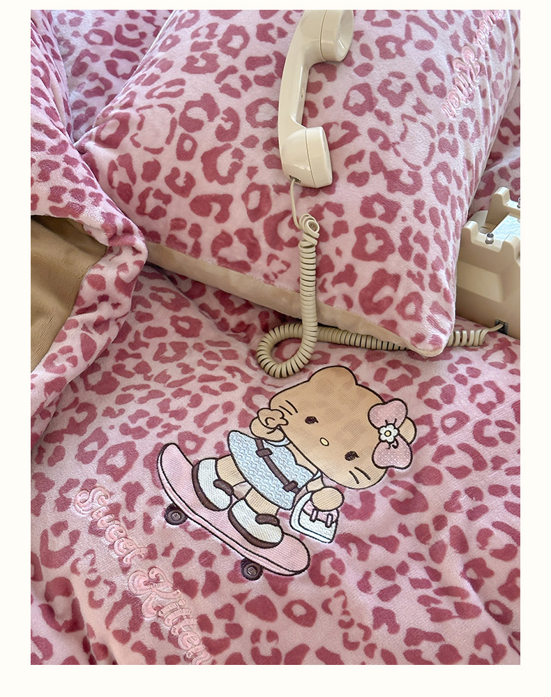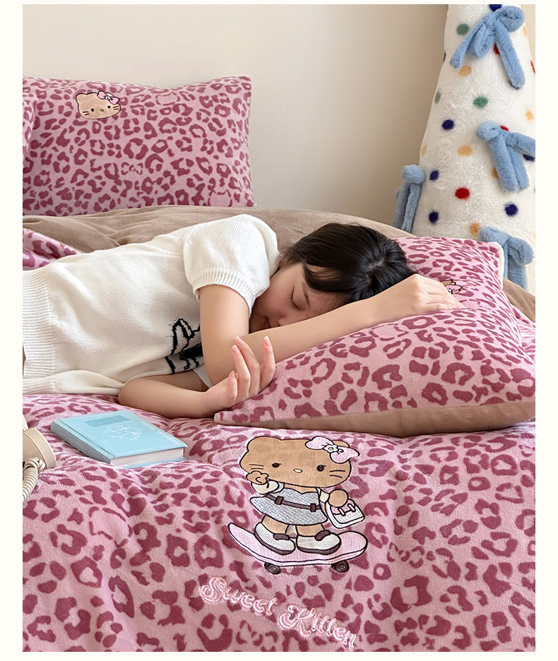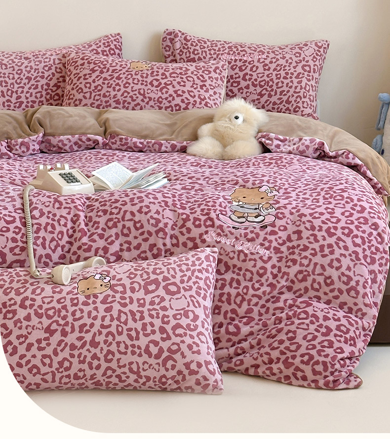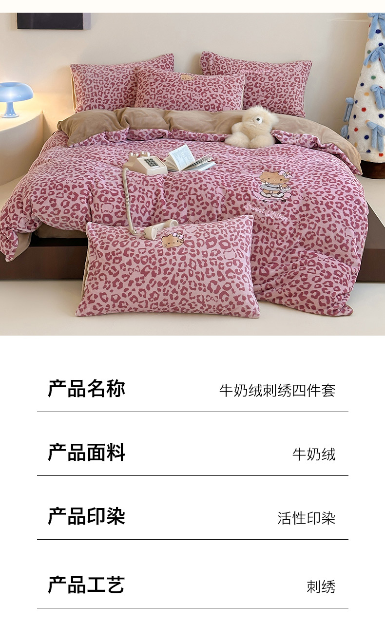 当前位置: 91家纺网 > 商品网购 > 床品套件 > 四件套 > 牛奶绒四件套 > 沐慕 2025新款牛奶绒刺绣绣花四件套 豹纹滑板喵-粉
