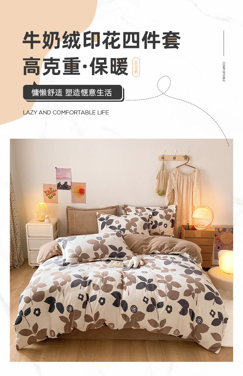 当前位置: 91家纺网 > 商品网购 > 床品套件 > 四件套 > 牛奶绒四件套 > 金盛纺 2025新款高克重牛奶绒印花系列四件套(可定制) 落叶