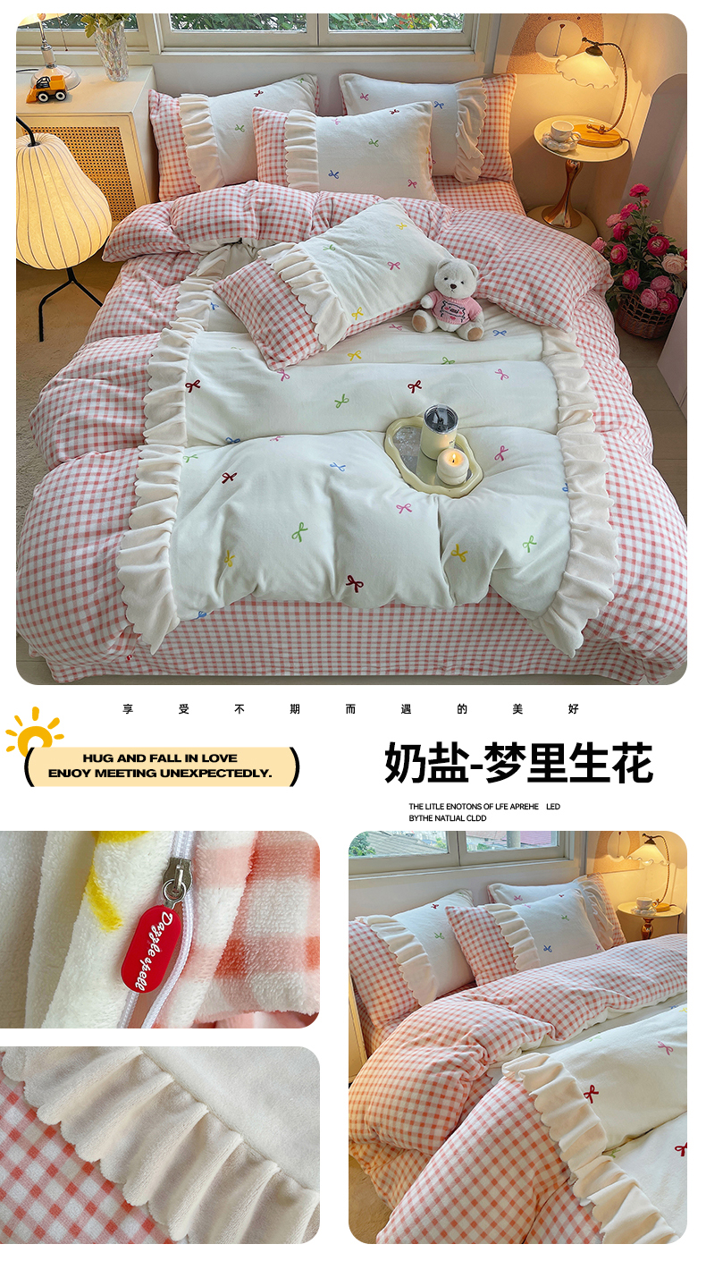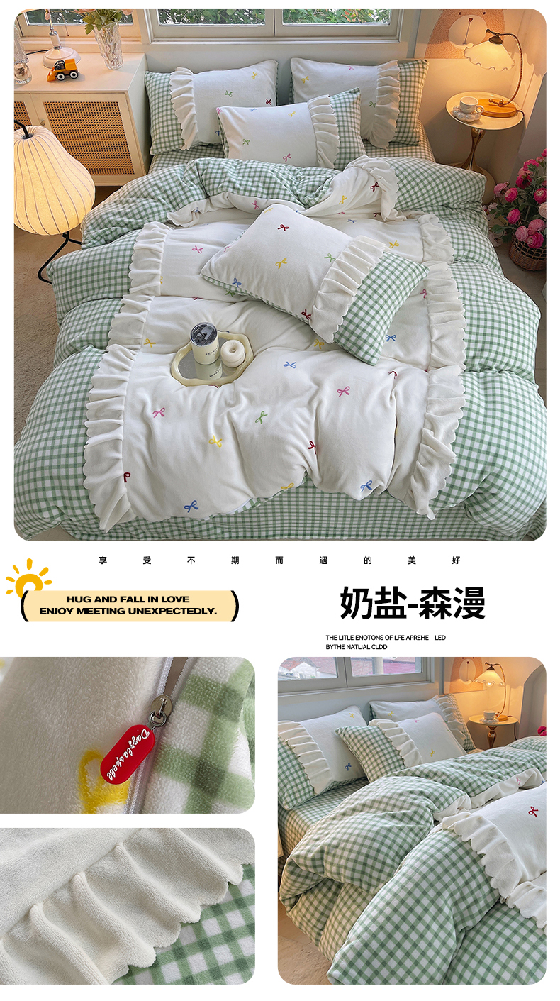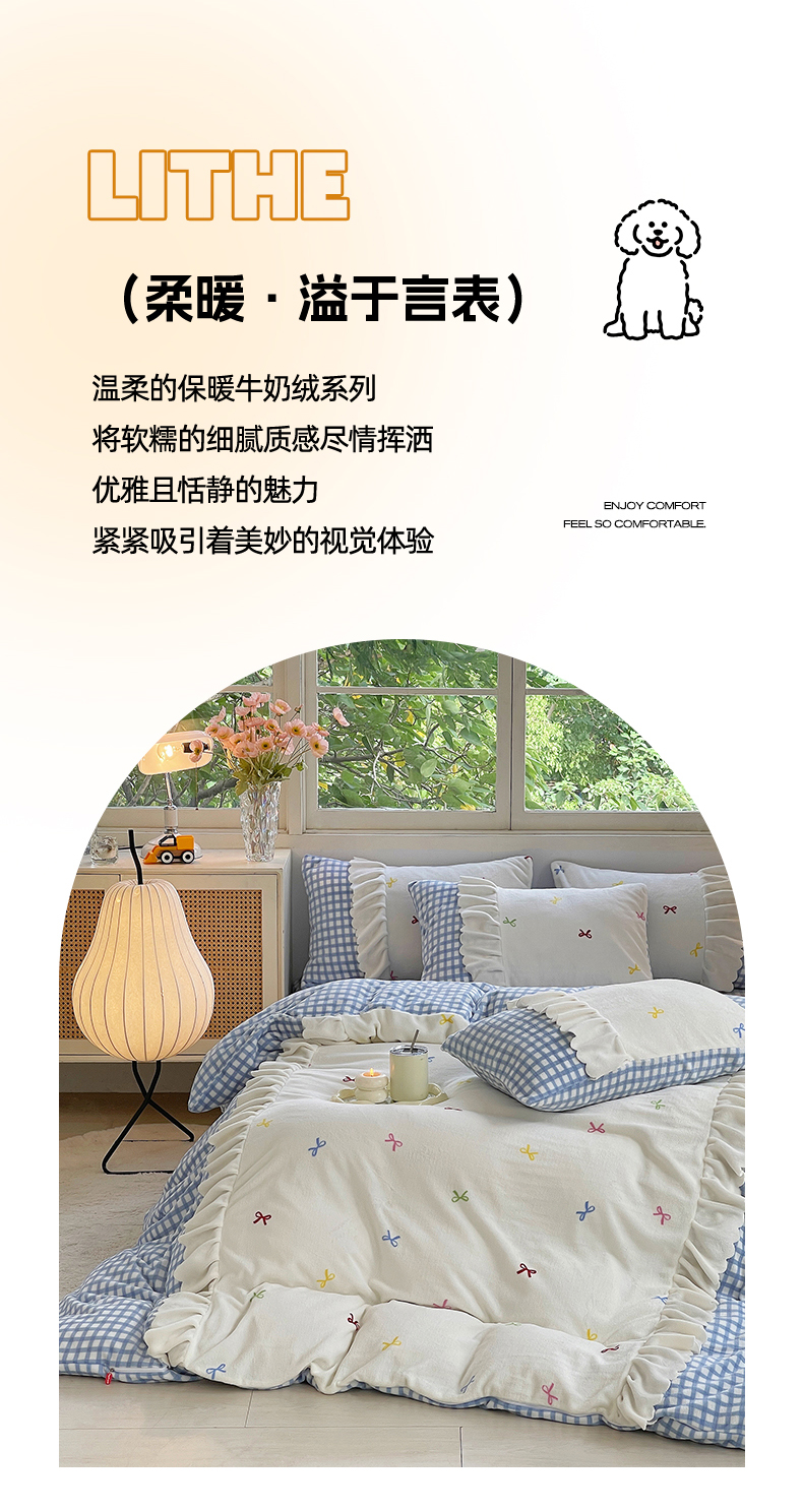 当前位置: 91家纺网 > 商品网购 > 床品套件 > 四件套 > 牛奶绒四件套 > 炫拼家纺 2025新款亲肤舒适韩版高克重牛奶绒花边四件套-奶盐 奶盐-海的心跳