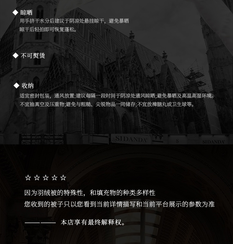 200*230cm春秋被 填充800克95白鹅绒 | ¥1480.00 |