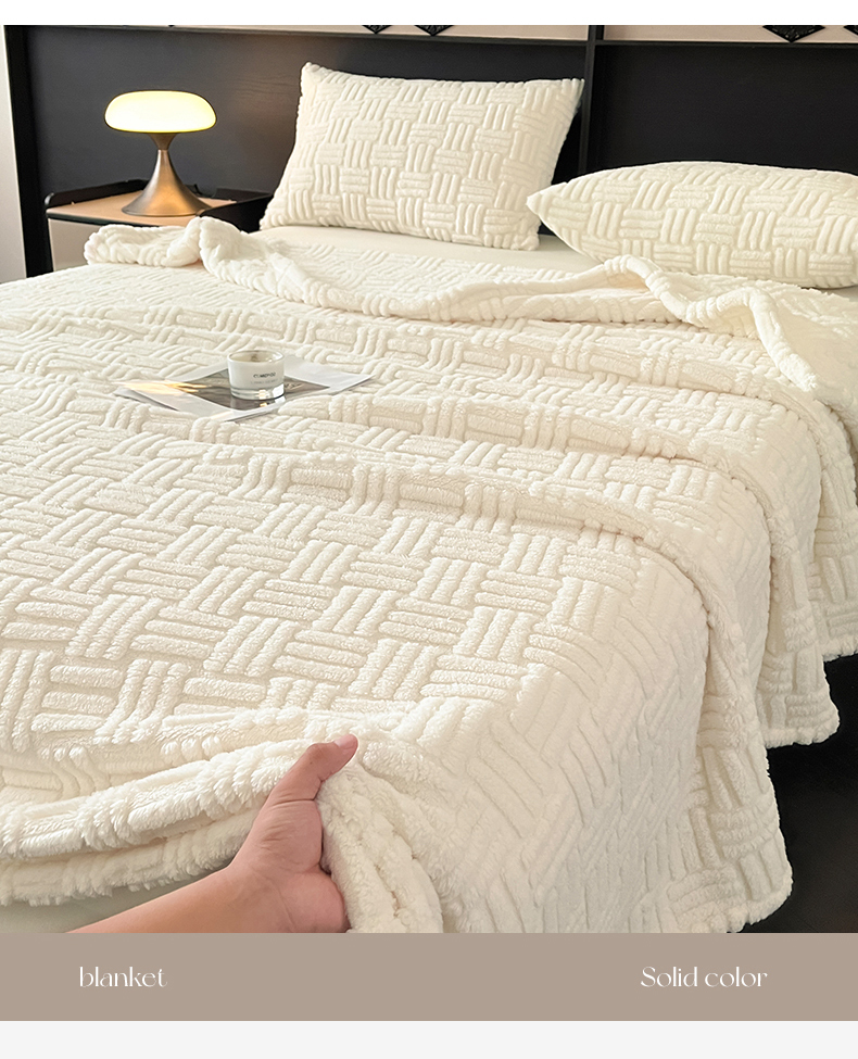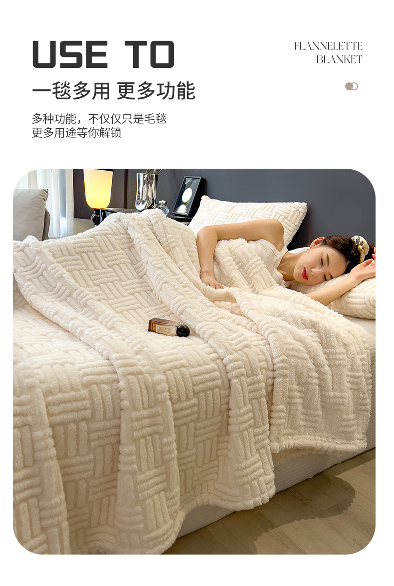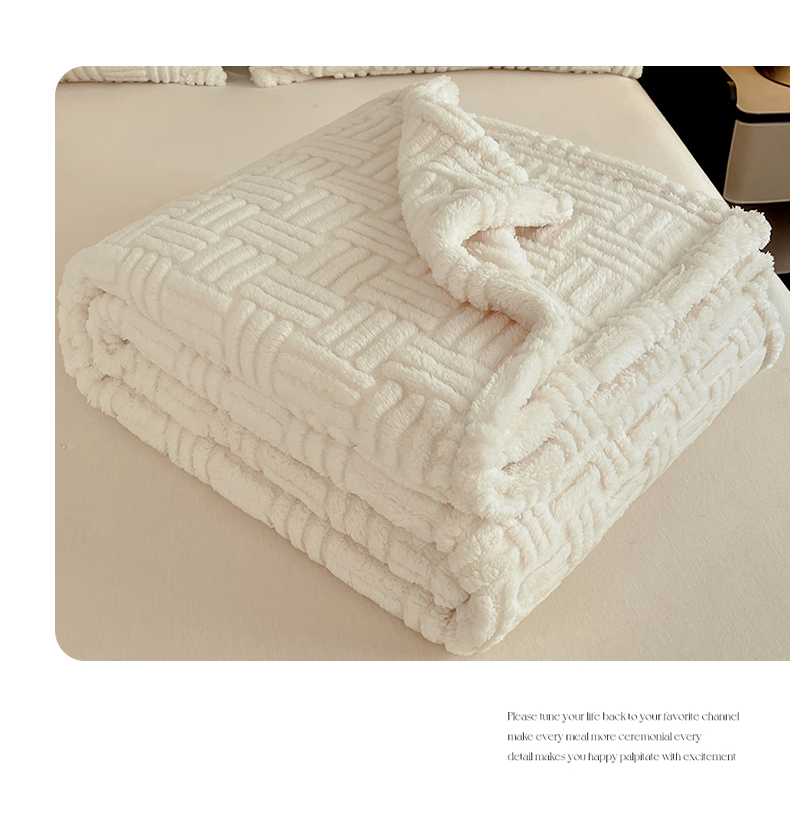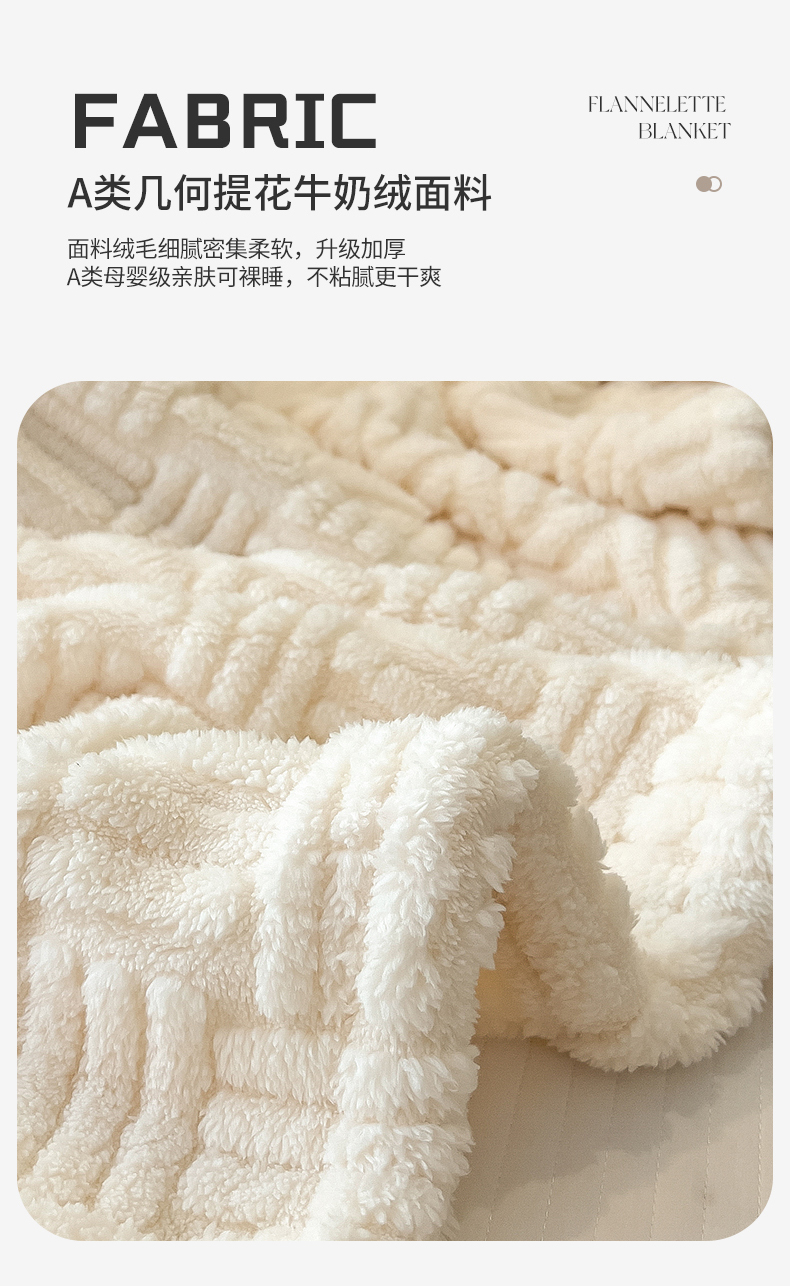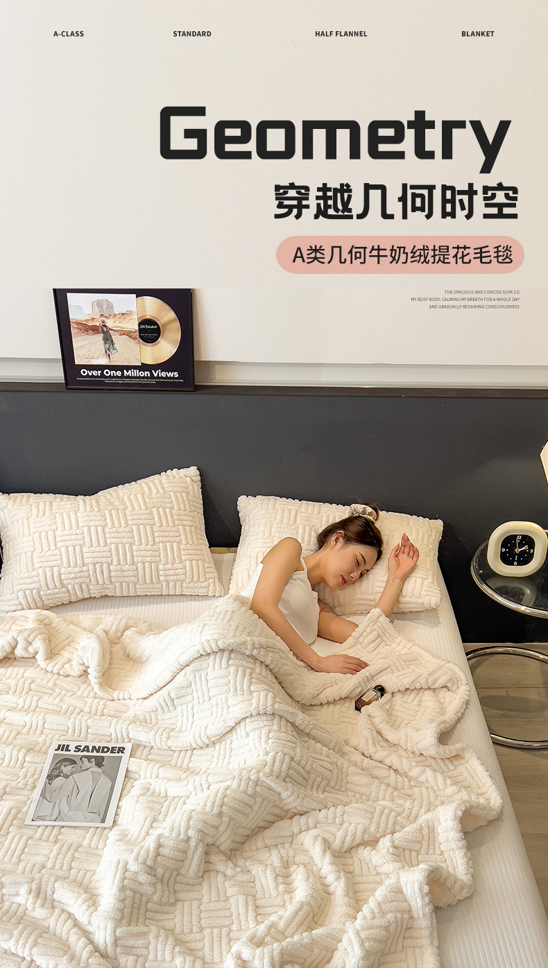 商品名称:世纪绒品 2025新款A类几何牛奶绒提花毛毯 几何-月光白