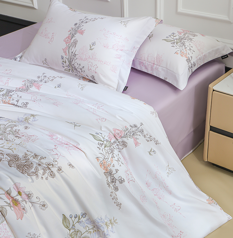 (总)洺兰家居 2026年新疆长绒棉100支天丝棉高端工艺款床单床笠四件套床上用品,淡若清香,陌上花开,羽墨