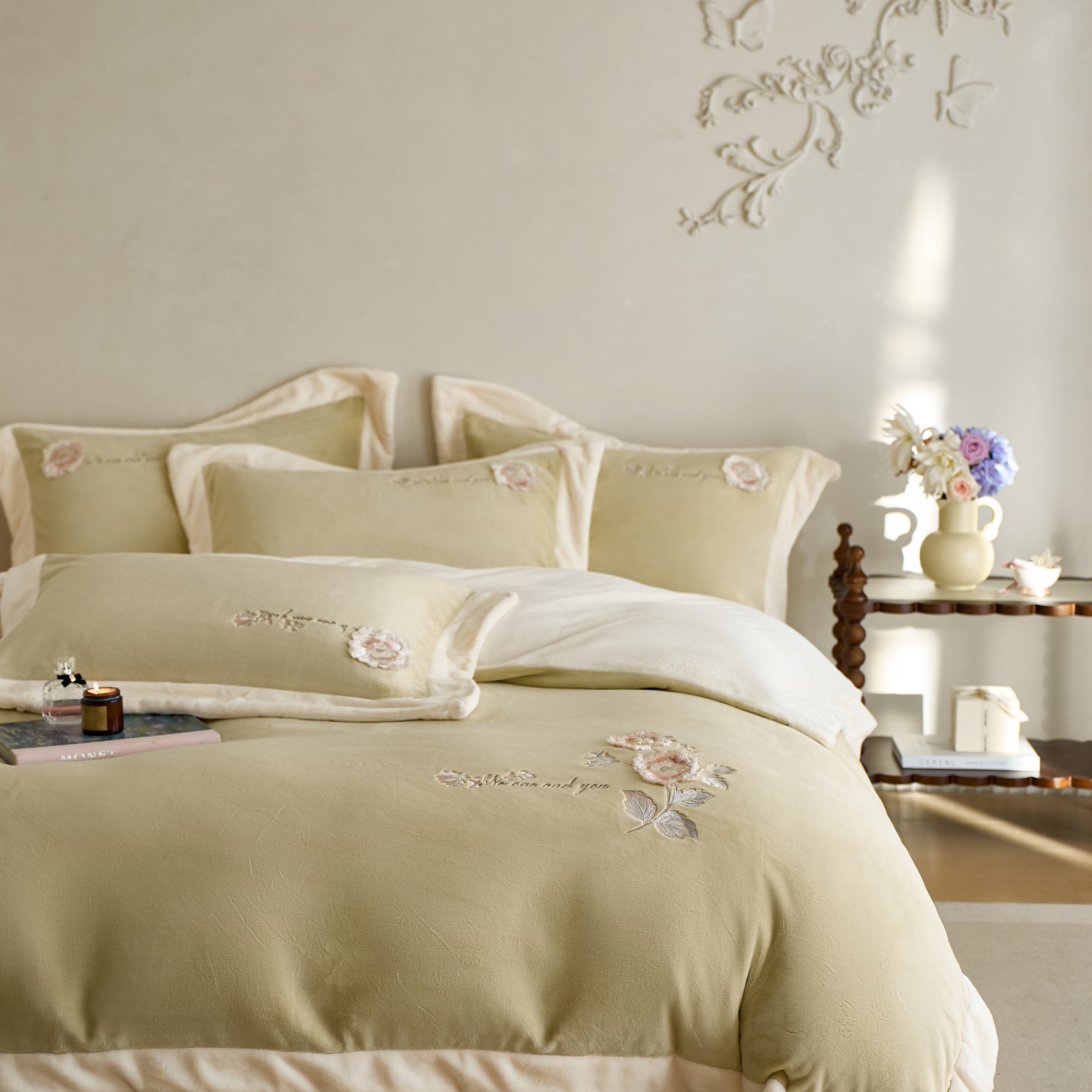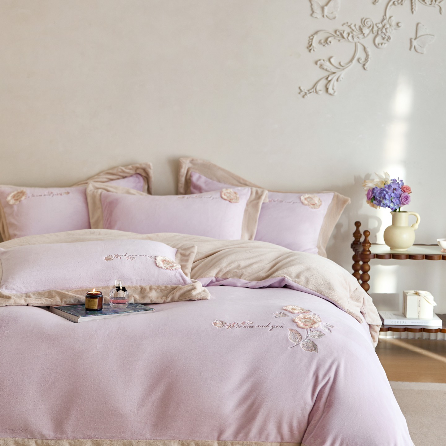 (总)瑞雪家居 2025新款270g全消光牛奶绒四件套-蔓蒂丝系列,贝壳粉,梦想粉,浅绿,浅紫,新米色
