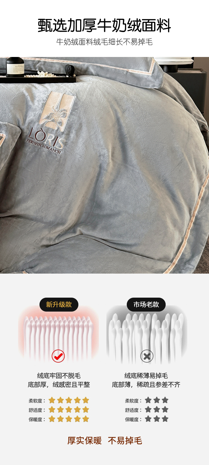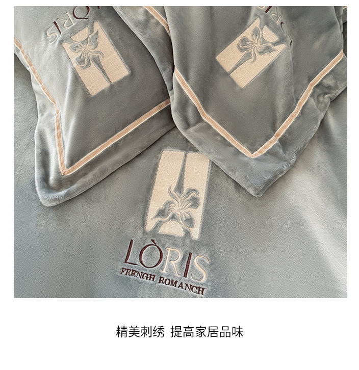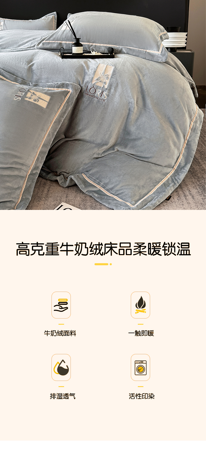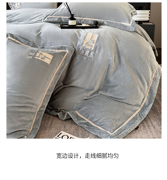 商品名称:宅家居 2025新款秋冬轻奢小香风刺绣全消光A类高克重牛奶绒四件套-艾菲尔 艾菲尔-深灰