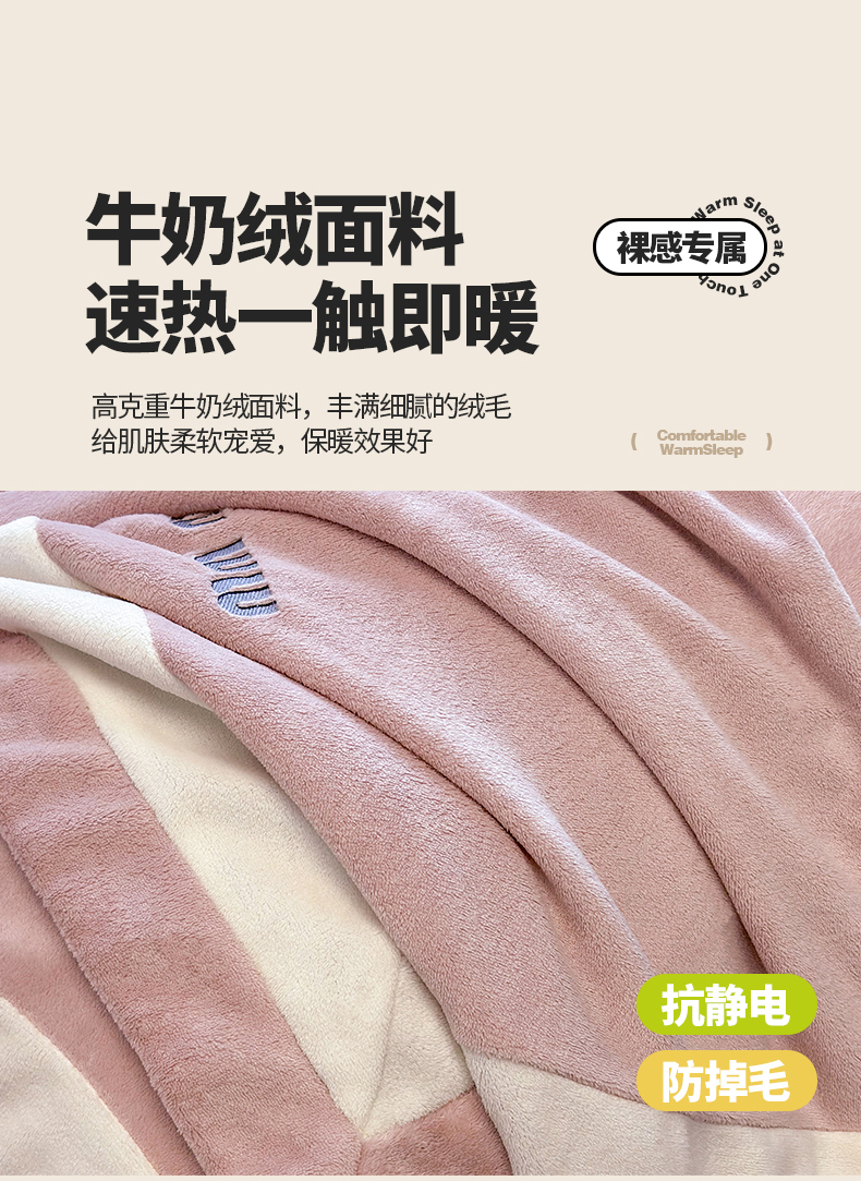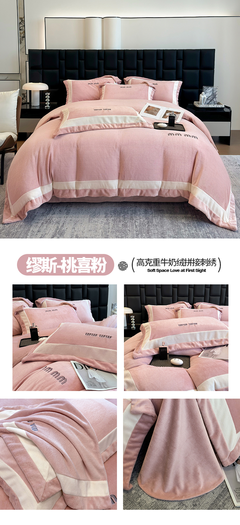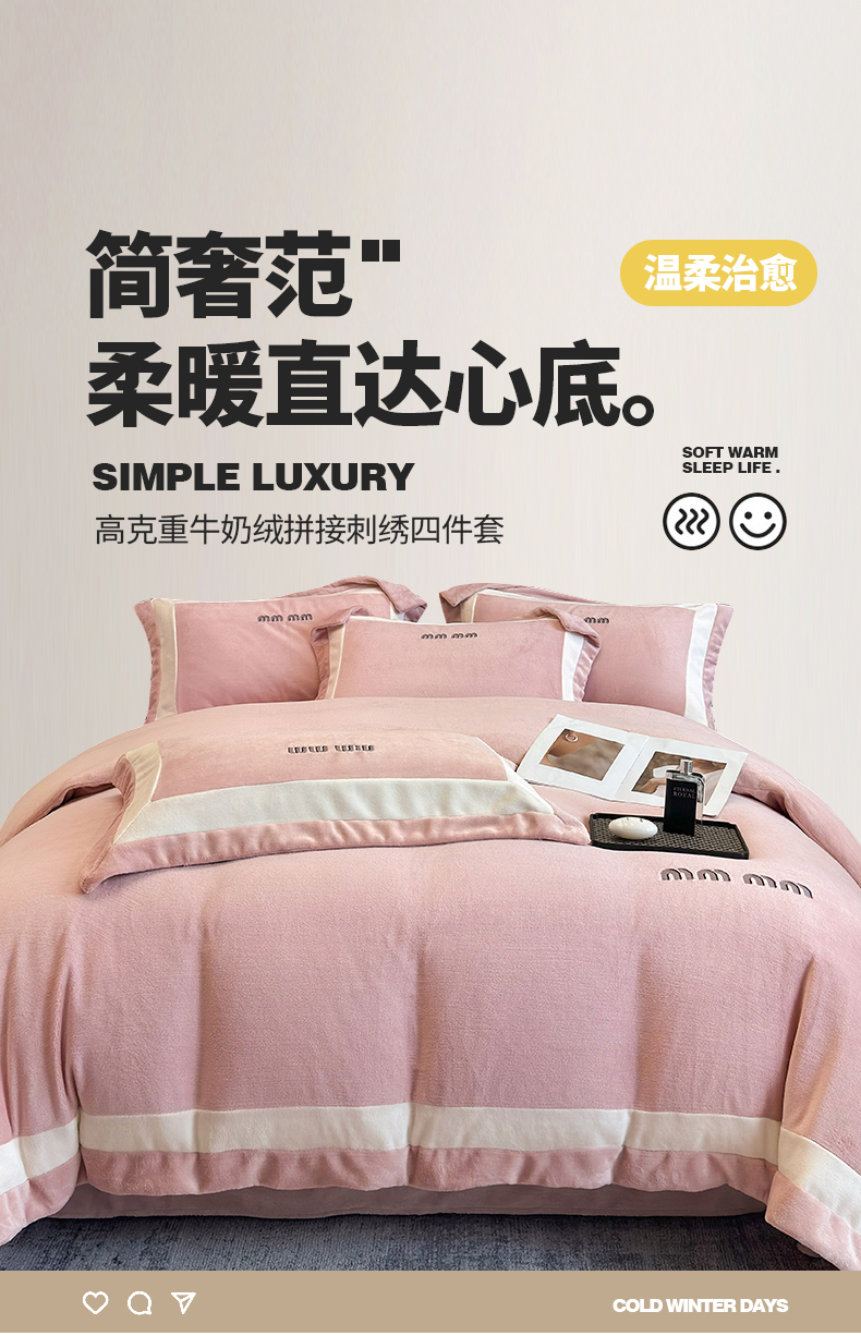 (总)懒猫家纺 2025新款亲肤舒适牛奶绒四件套-可可小姐系列,可可小姐-瓷白,可可小姐-水粉
