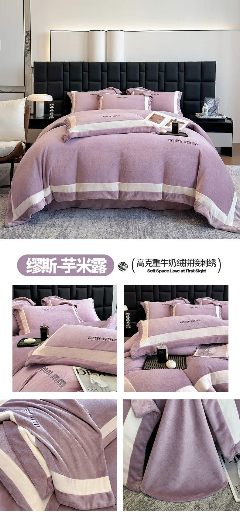 商品名称:懒猫家纺 2025新款轻奢拼接牛奶绒四件套-缪斯 缪斯-芋米露