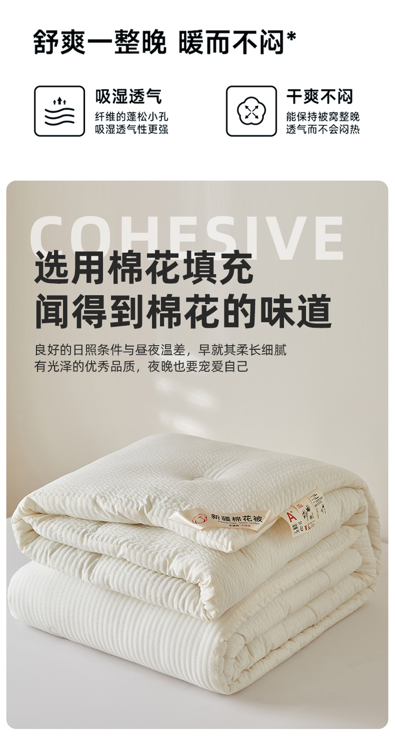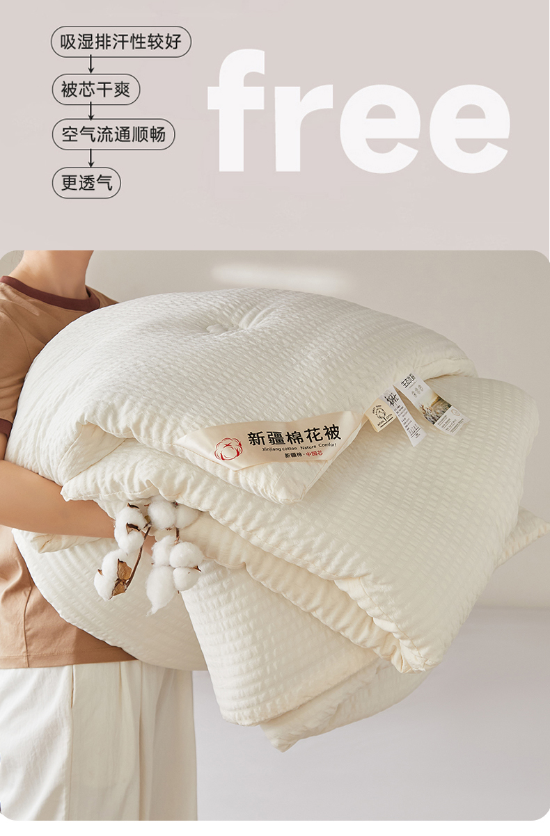 (总)大彩家居 2025新款A类亲肤泡泡纱棉花被被子被芯,白色,咖色