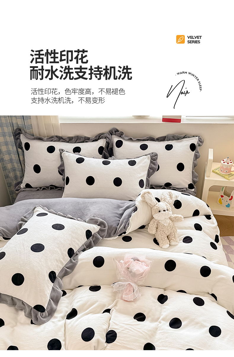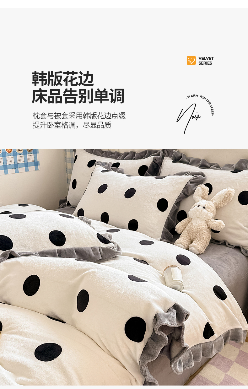 当前位置: 91家纺网 > 商品网购 > 床品套件 > 四件套 > 牛奶绒四件套 > 懒猫家纺 2025新款韩版牛奶绒四件套 小波点