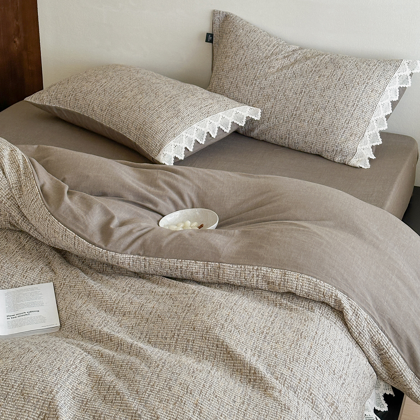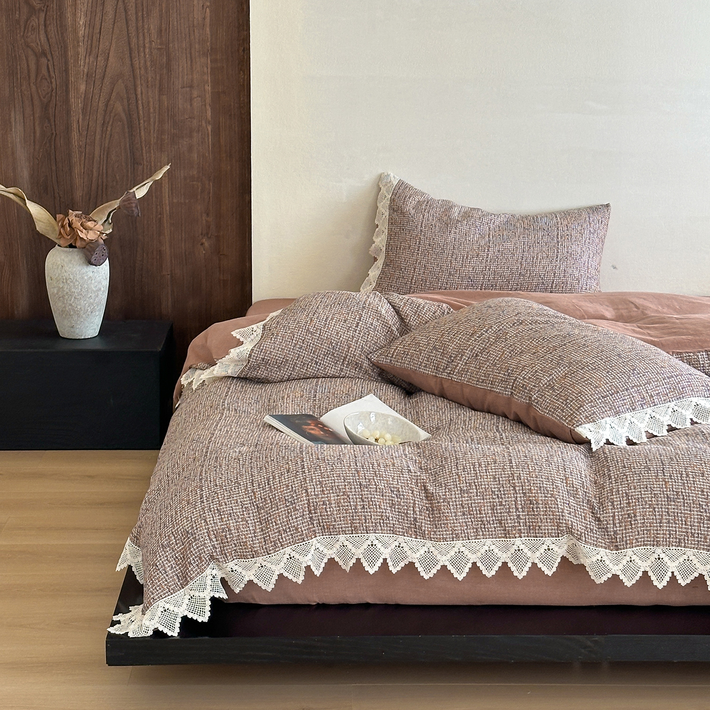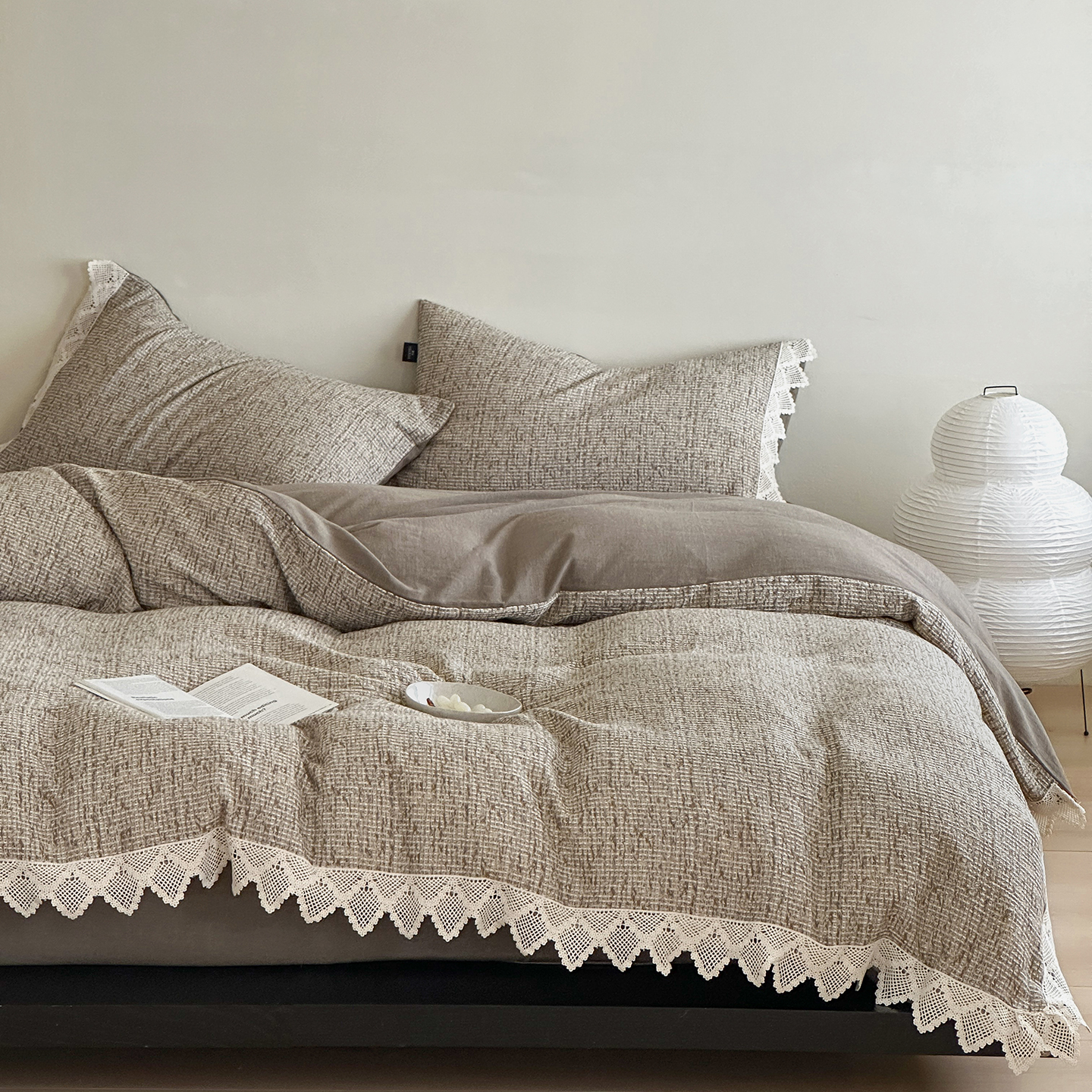 月夏 2025新款全棉色织华夫格四件套 咖色
