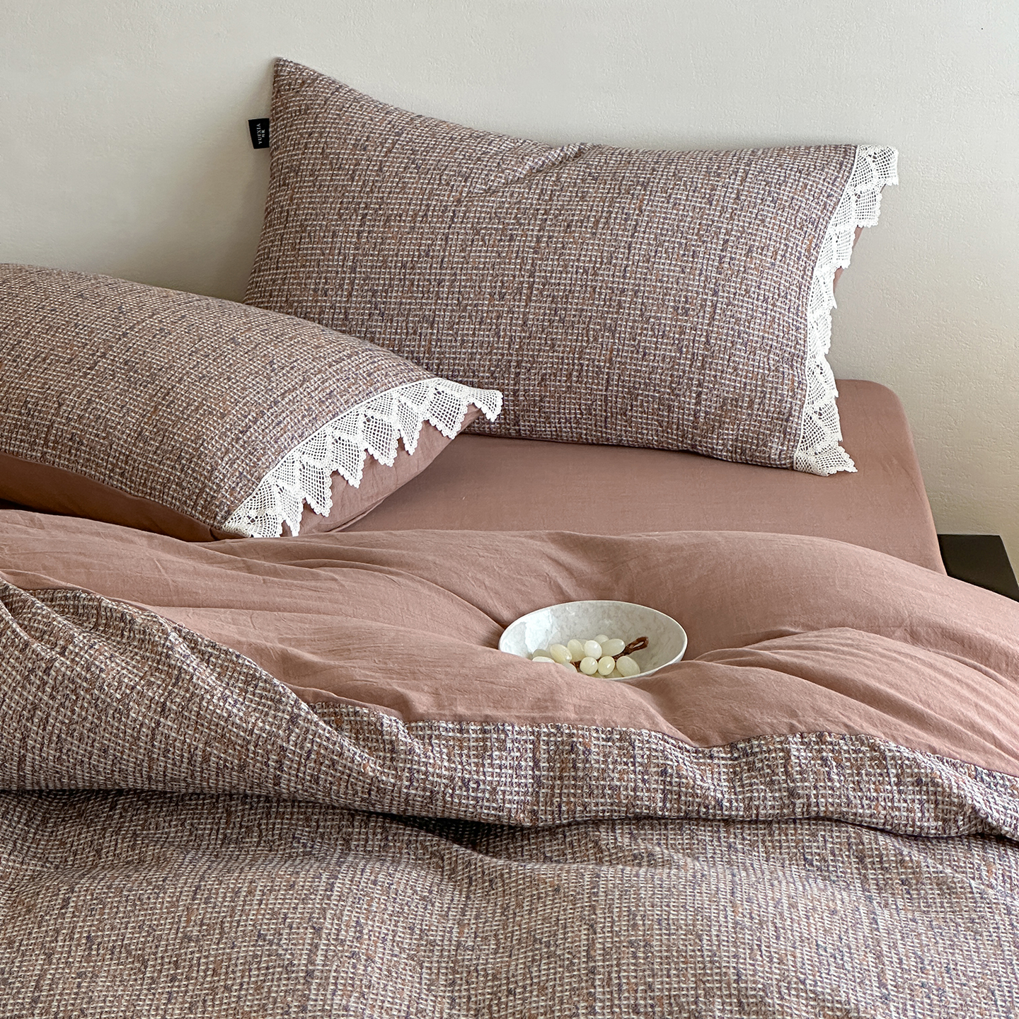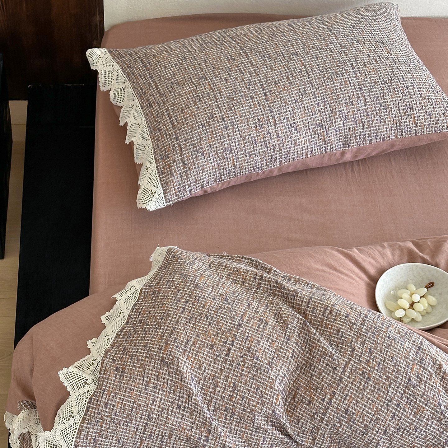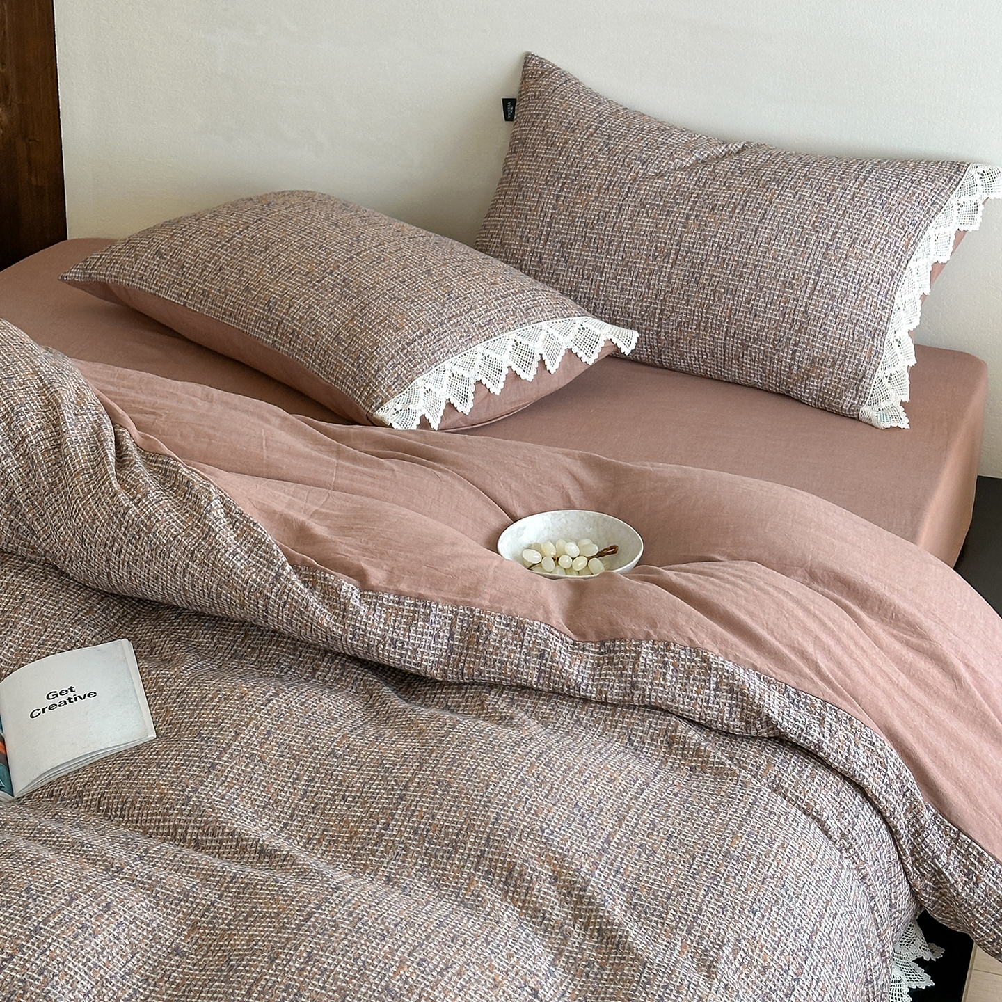月夏 2025新款全棉色织华夫格四件套 咖色