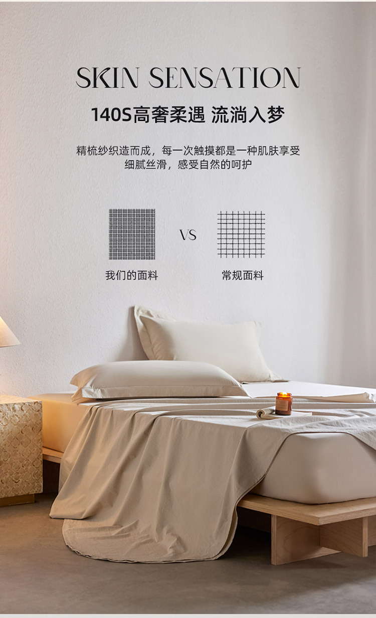 商品名称:良品汇馆 2025【140S全棉砂洗床单】纯棉A类床单140支长绒棉超细腻床单 烟凝