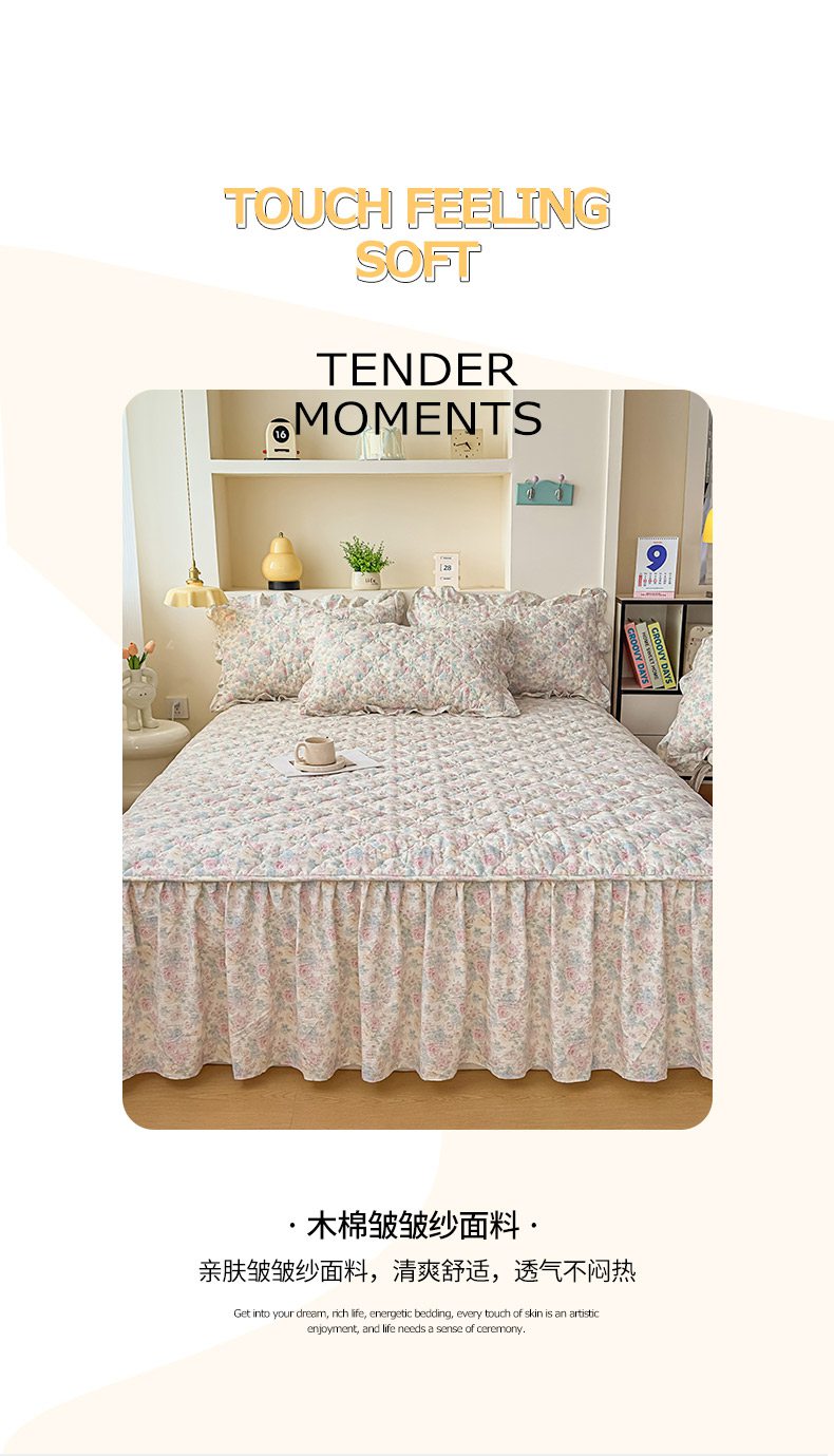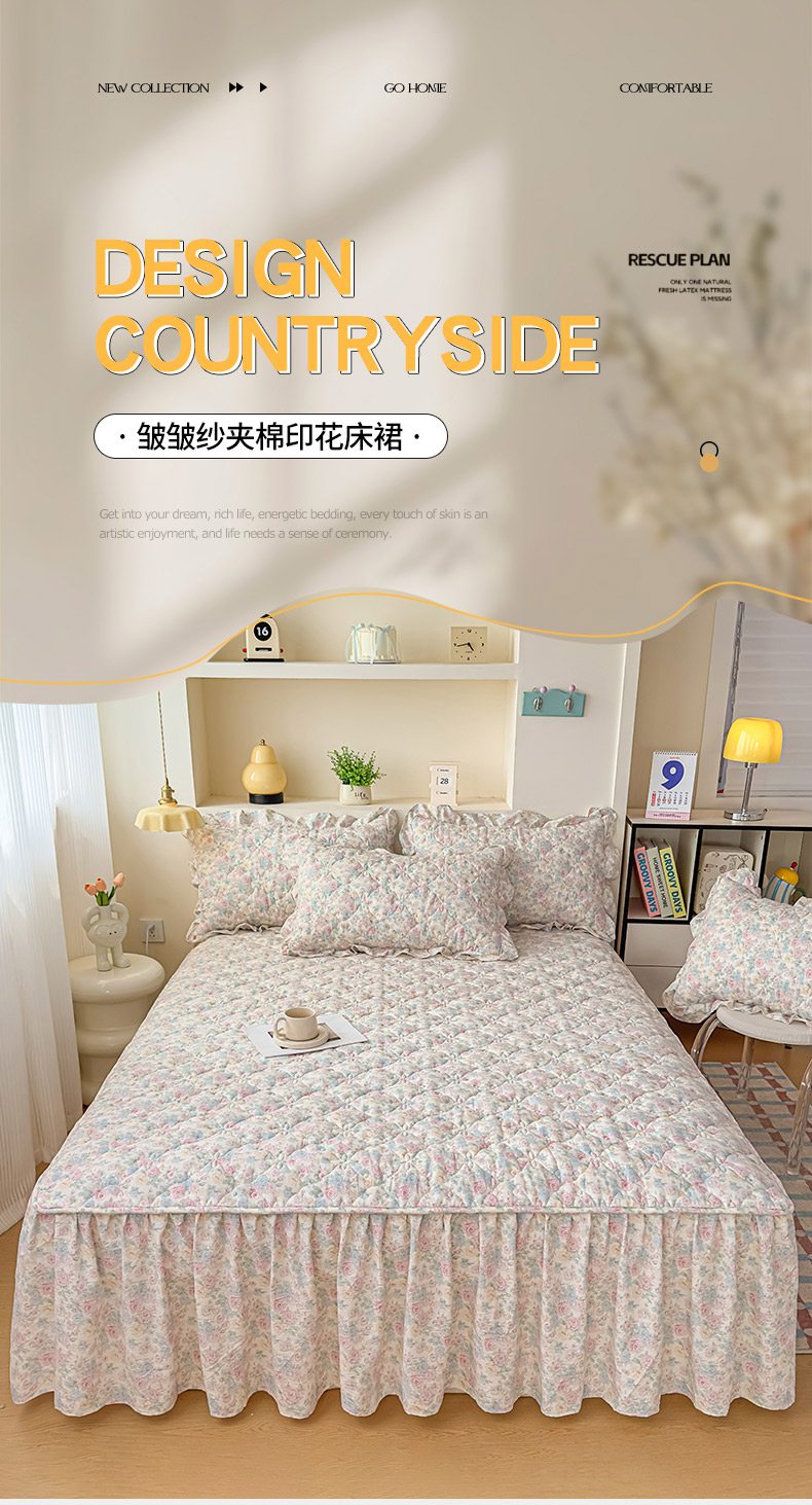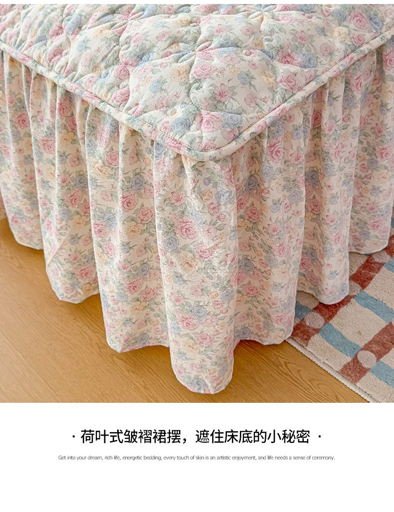 鼎丰家纺 2025新款水洗皱皱纱夹棉床裙 童话花岛