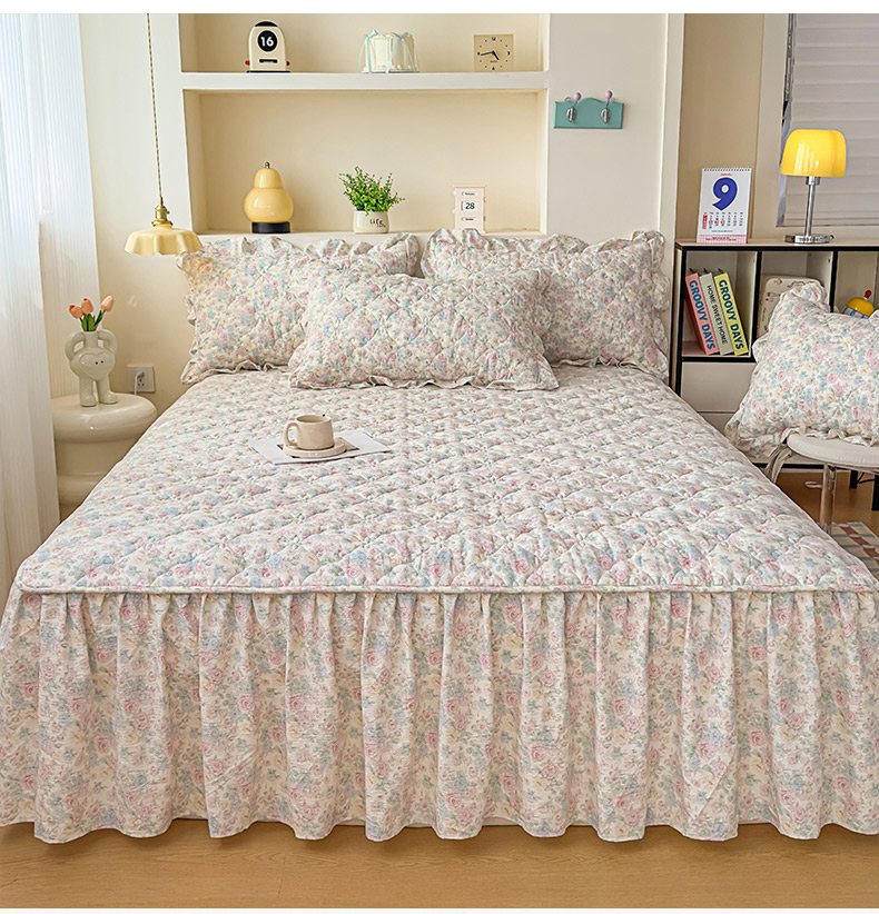 • 91家纺网 家纺一手货源 找家纺 (总)鼎丰家纺 2025新款皱皱纱夹棉床裙三件套-花影系列,花影-豆沙,花影-浅蓝,花影-浅米,花影-浅玉,花影-清新绿,花影-樱花粉