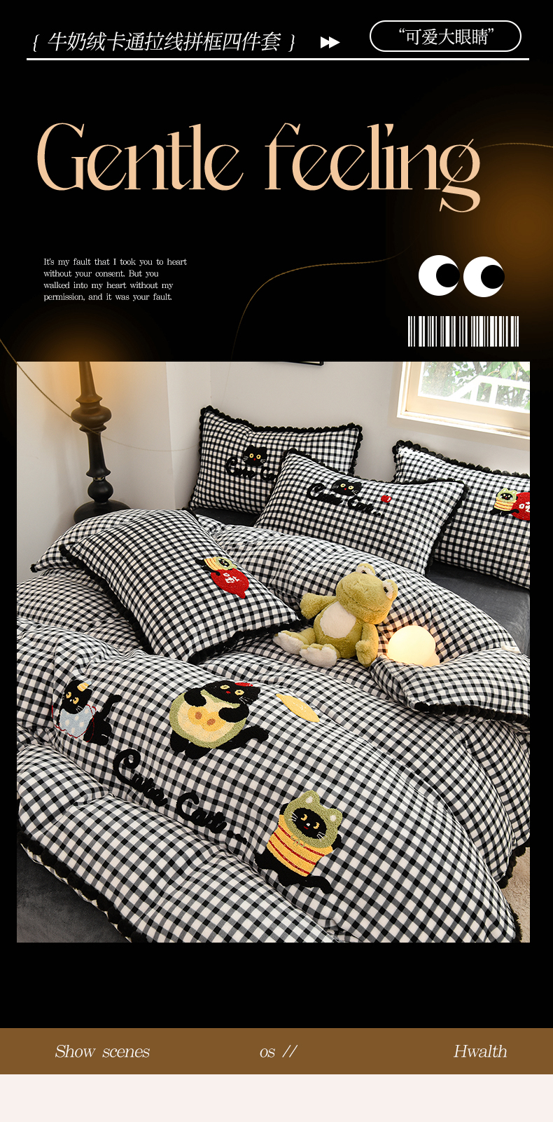(总)炫拼家纺 2025新款高克重牛奶绒格子卡通毛巾绣加厚四件套-糖宝系列,糖宝-半勺清风,糖宝-喵了个咪,糖宝-甜豆女孩,糖宝-汪星日记,糖宝-星球萌宠,糖宝-元气小猪
