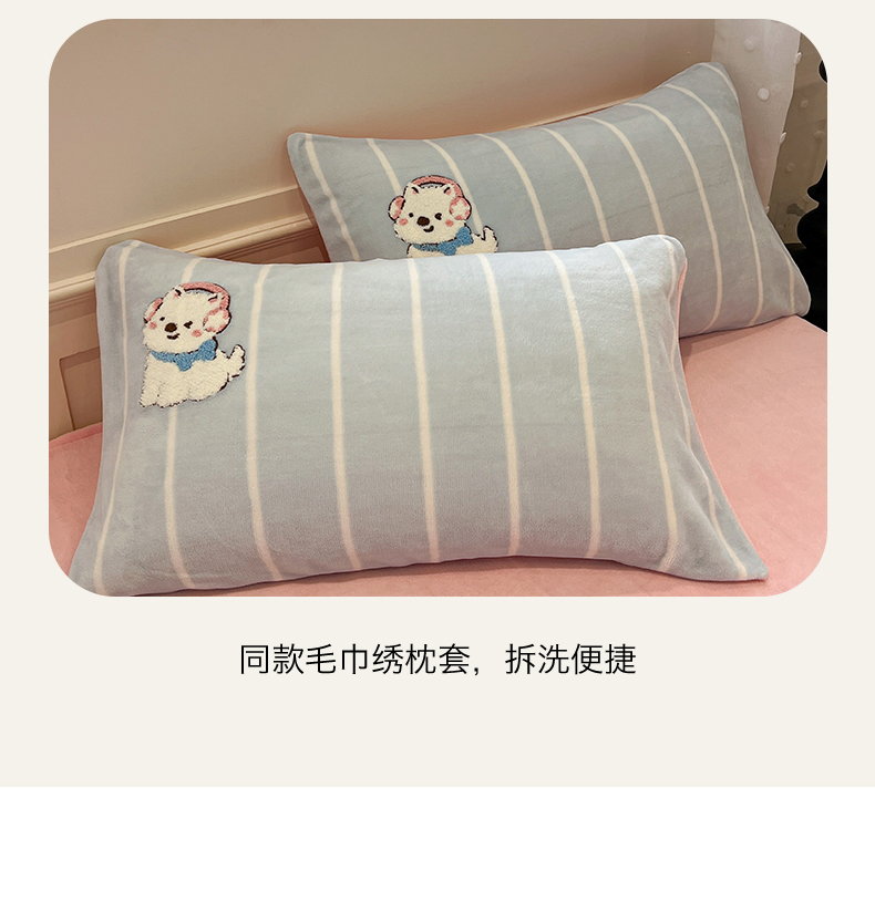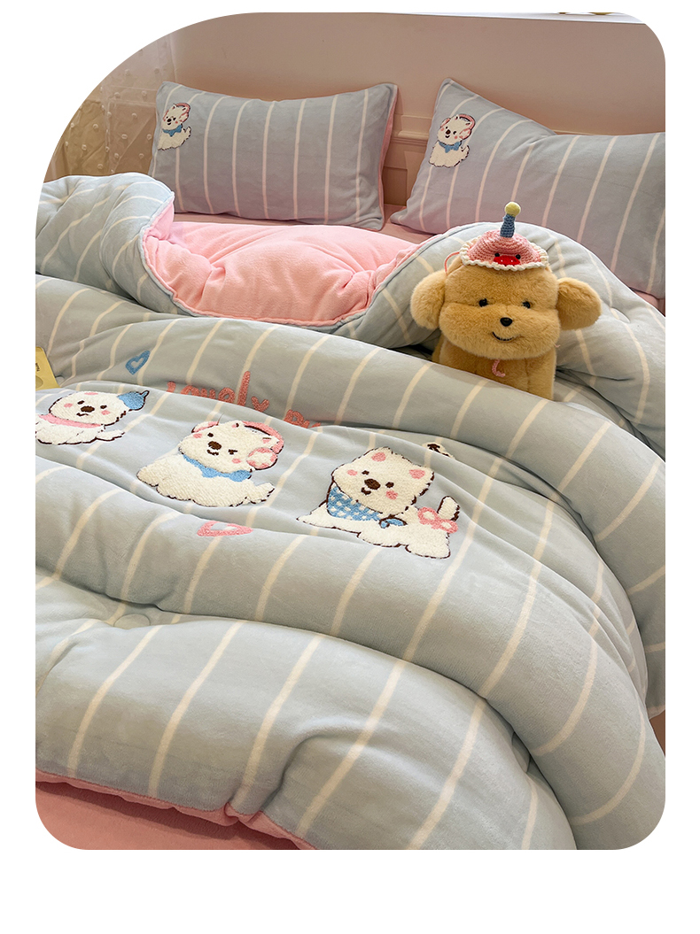 商品名称:优迈 2025新品牛奶绒毛巾绣冬被 被子被芯 冬被-萌汪乐园