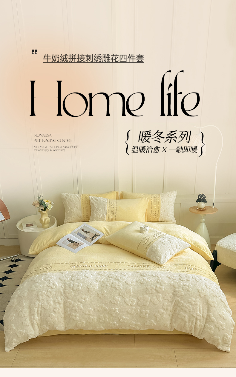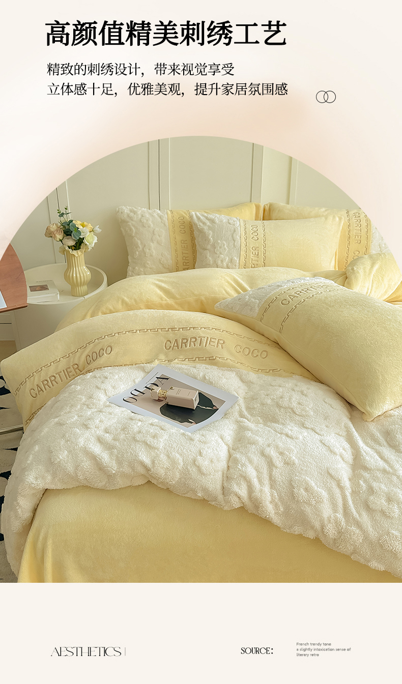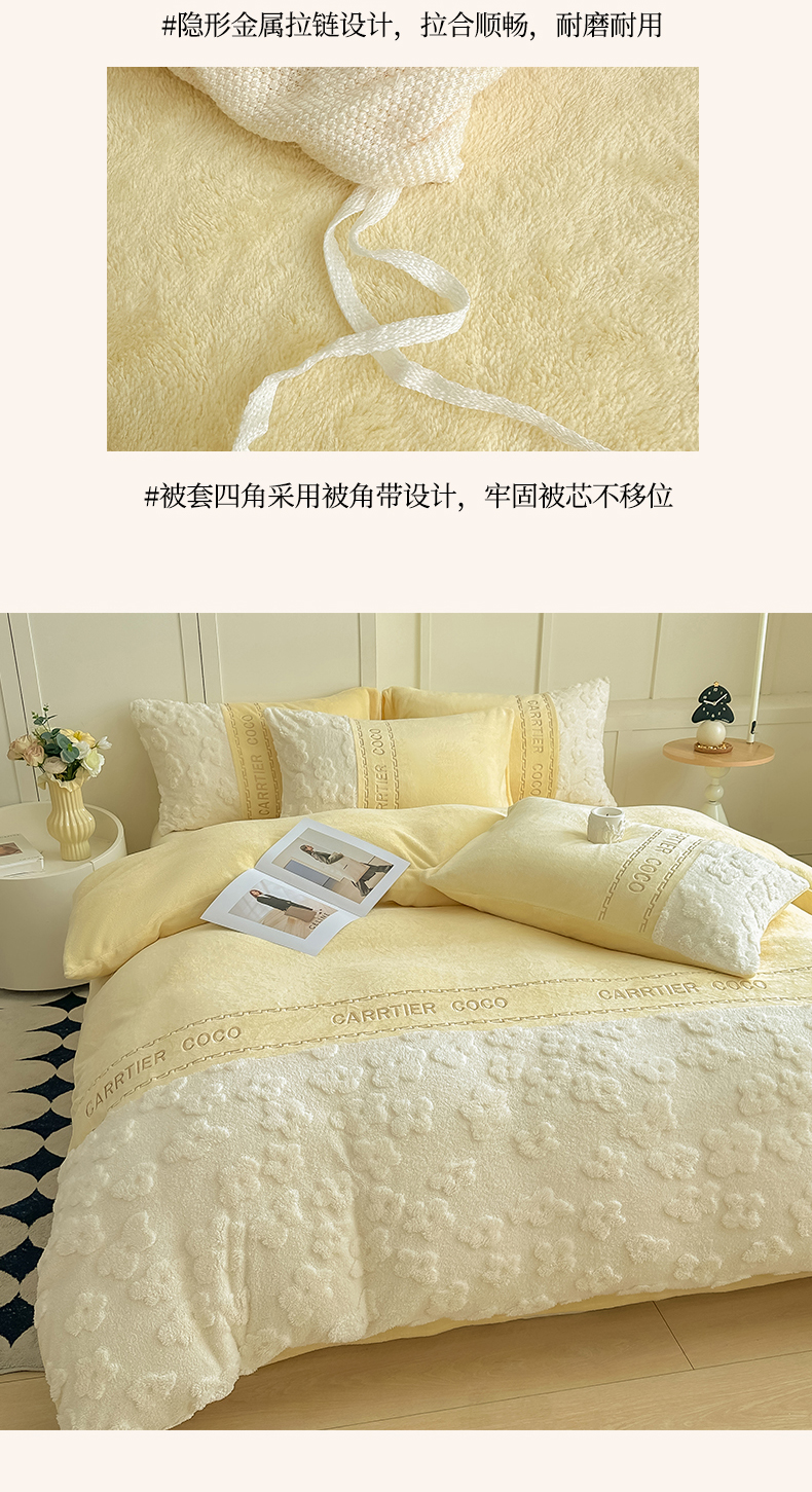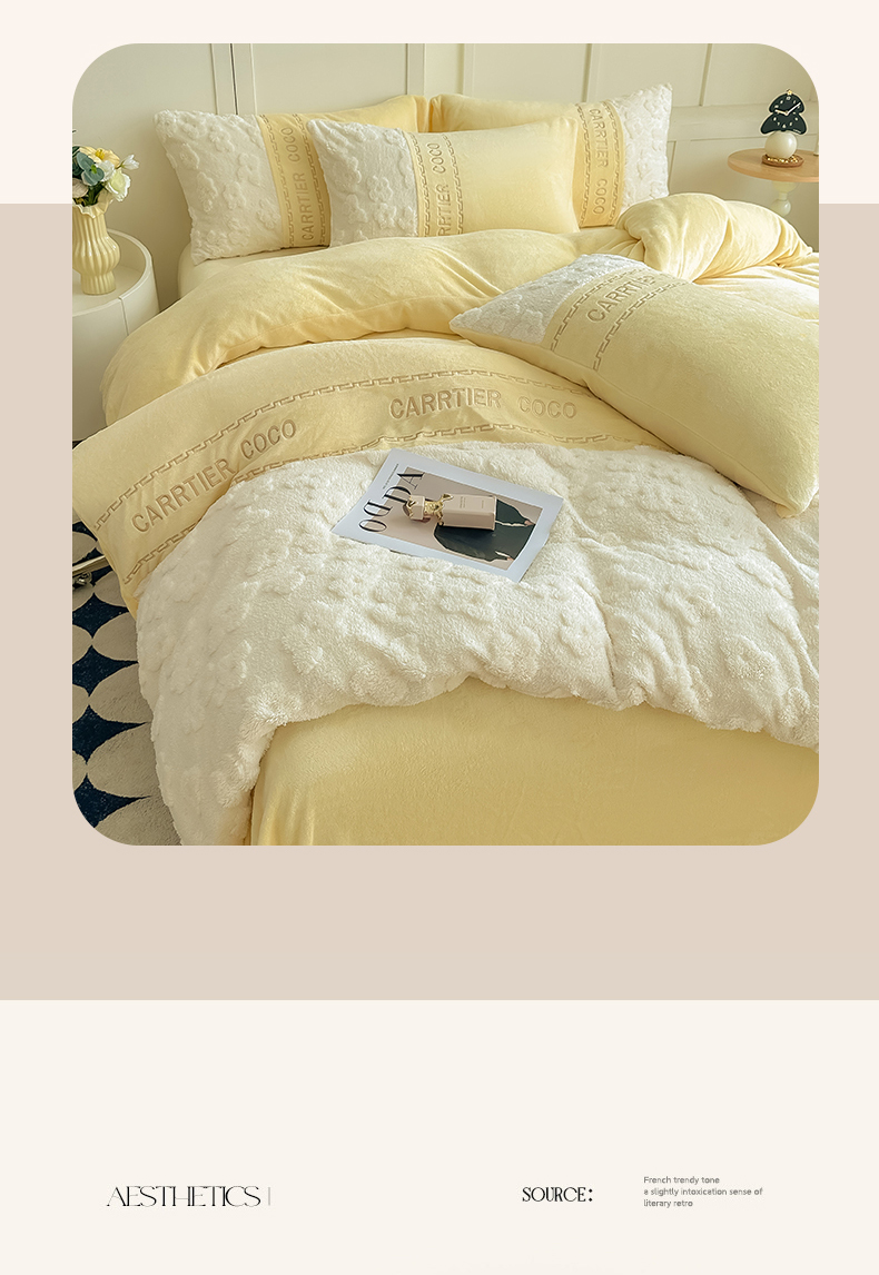 当前位置: 91家纺网 > 商品网购 > 床品套件 > 四件套 > 牛奶绒四件套 > 灰鲸 2025新款牛奶绒拼接刺绣四件套-安娜 安娜-奶黄