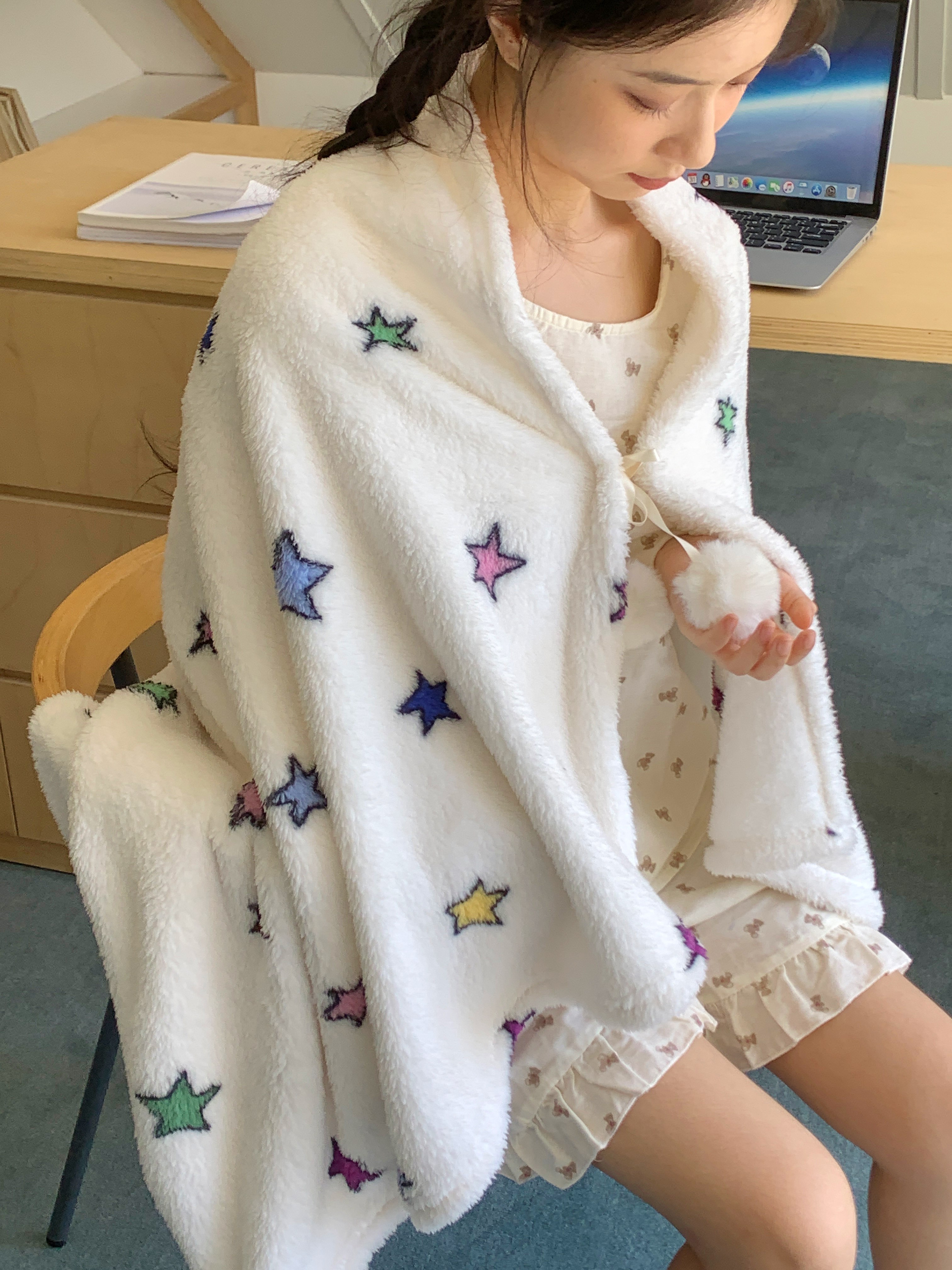 商品名称:桃喜 2025新款摇粒绒披肩毯毛毯毯子 海盐星星