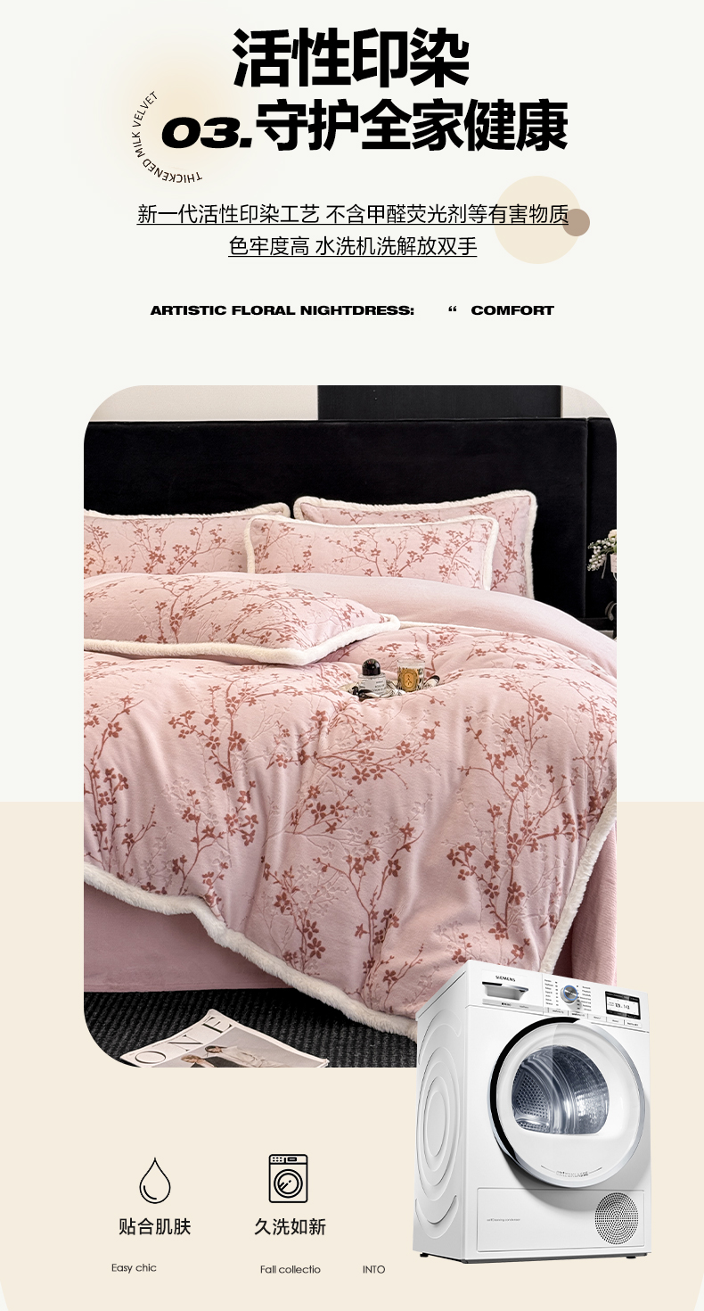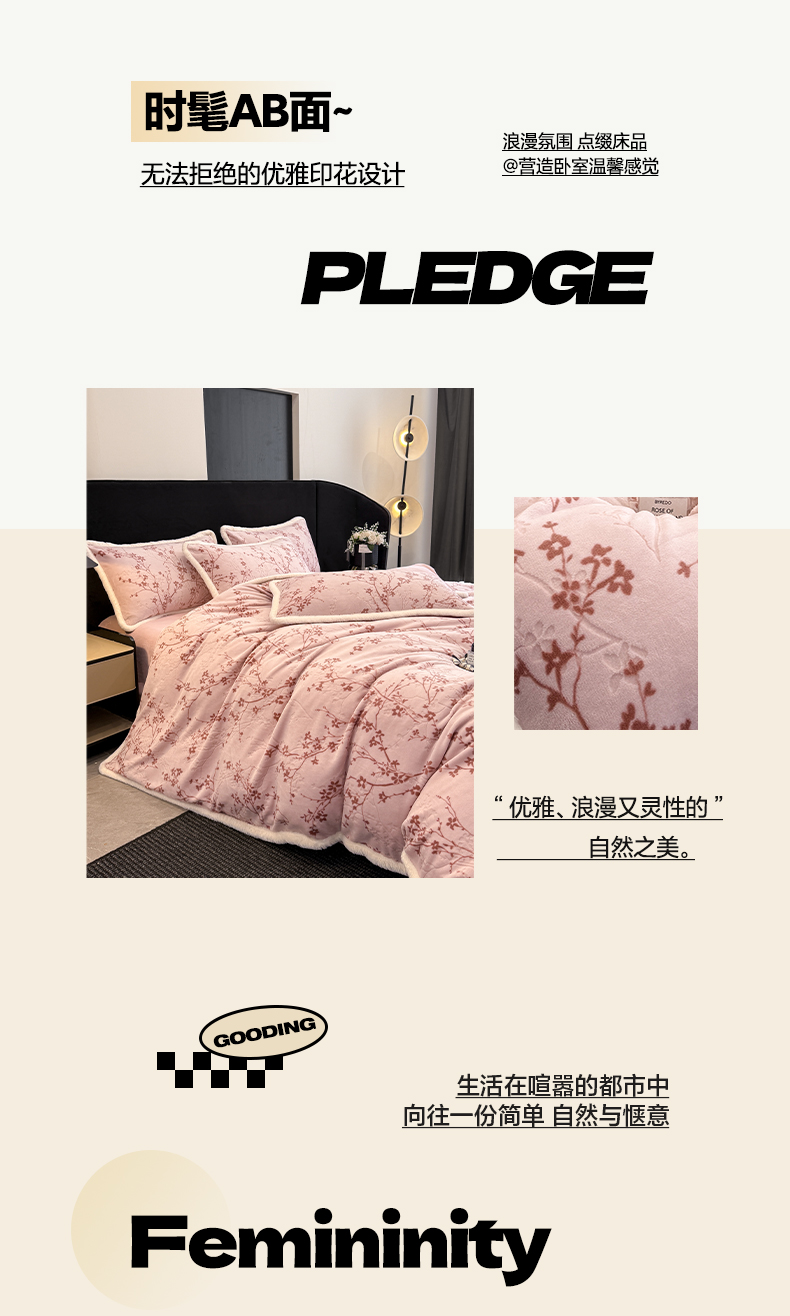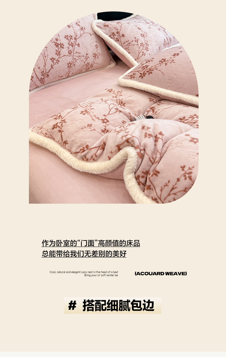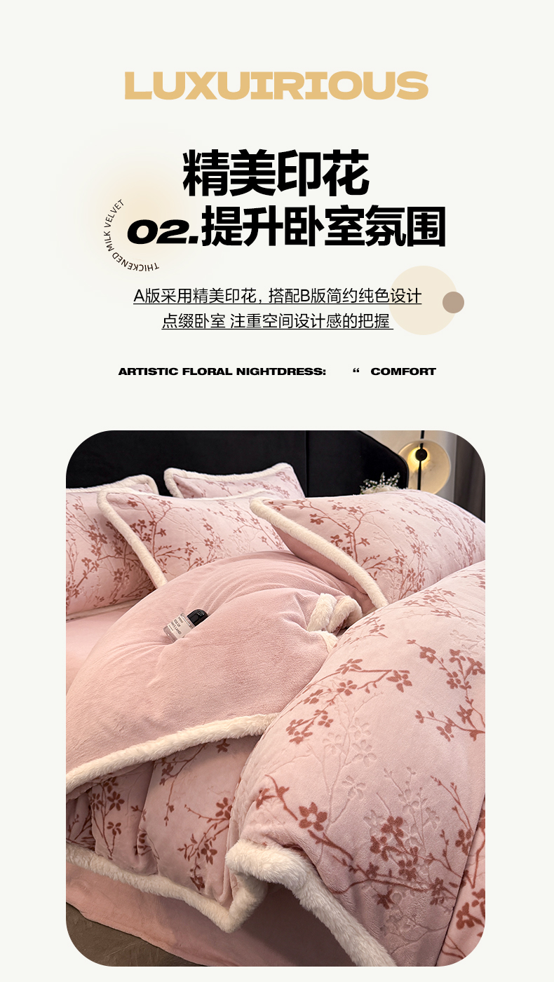 商品名称:如一 2025新款立体雕花牛奶绒兔毛包边四件套 山茶-粉